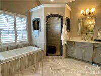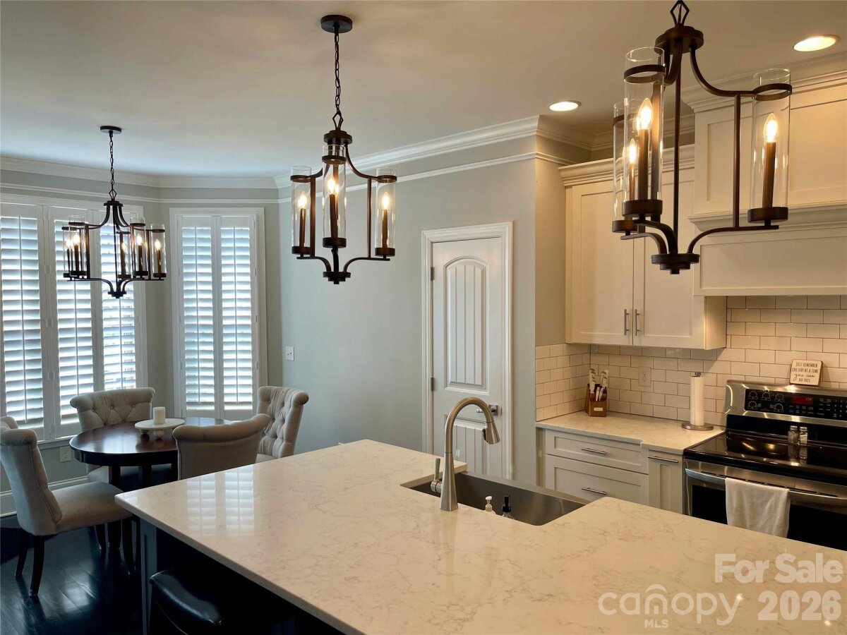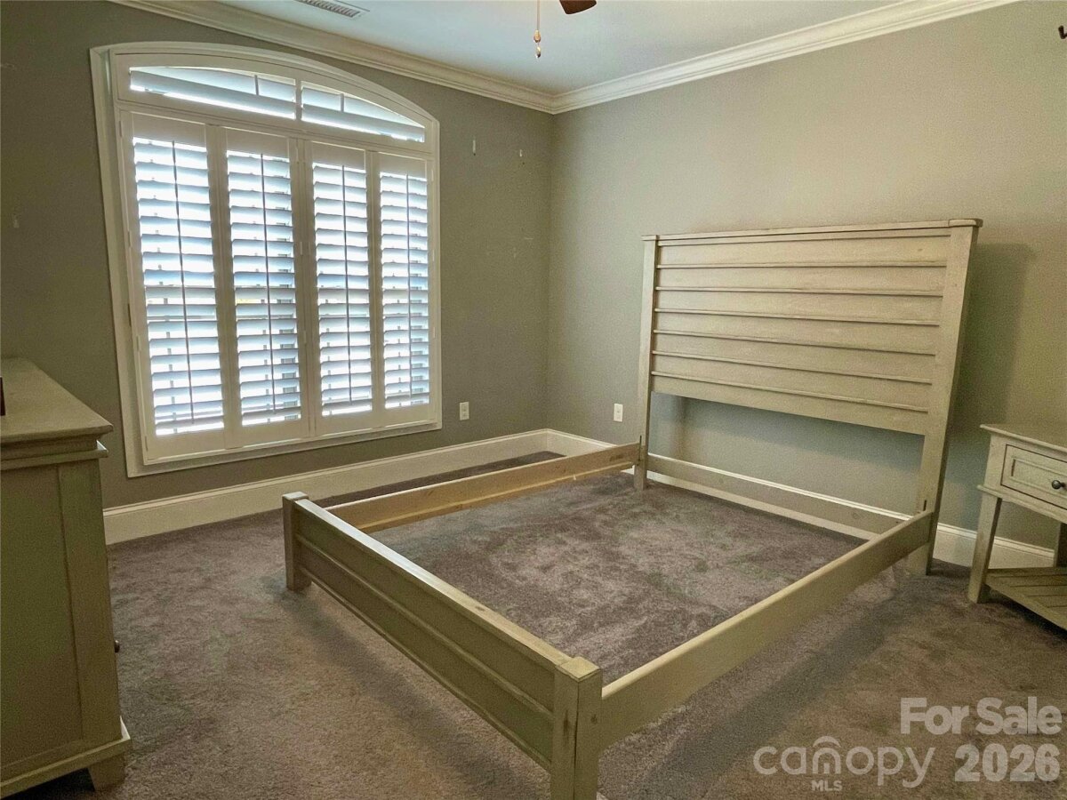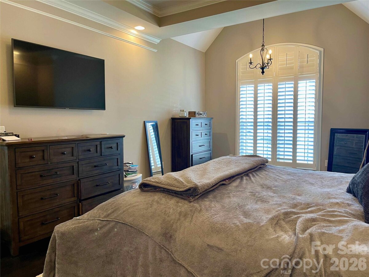 Desirable Mountain View location tucked away on a quiet cul-de-sac in the back of Abernethy Park! This beautifully designed four bedroom home offers an ideal floor plan with both the primary suite and a guest bedroom conveniently located on the main level. A full, guests bathroom is also located on this main level.The primary suite is a true retreat featuring a lovely sitting area, elegant double tray ceiling, dual closets, and a spacious ensuite bath complete with jetted tub, walk-in tiled shower, and dual vanities. The main level also includes a large laundry room with cabinetry, storage and utility sink, adding everyday convenience. Upstairs you'll find a versatile layout with a bedroom, large bonus room with closet, and an additional oversized bedroom that could serve as a second primary suite. This bedroom offers a large walk-in closet plus additional finished walk-in storage space with endless possibilities. The Jack-and-Jill style bath connects this bedroom and hallway for easy access. The main living area is bright and open, highlighted by a great room with vaulted ceilings and gas log fireplace, flowing seamlessly into the kitchen with quartz countertops and soft-close cabinetry. The formal dining room showcases beautiful coffered ceilings. Large windows with custom plantation shutters bring in beautiful natural light throughout this home. Step outside to a spacious 232 ft² back deck overlooking open fields owned by the Abernethy Park Owners Association, providing peaceful views and added privacy. Additional features include a level lot, tankless natural gas water heater, and thoughtfully designed spaces throughout. This home offers the perfect combination of comfort, functionality, and location in one of Mountain View’s most desirable communities.