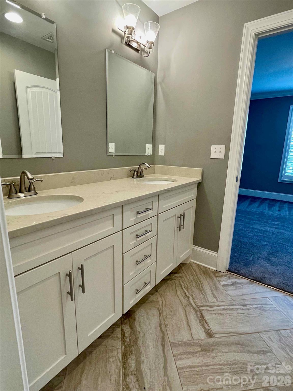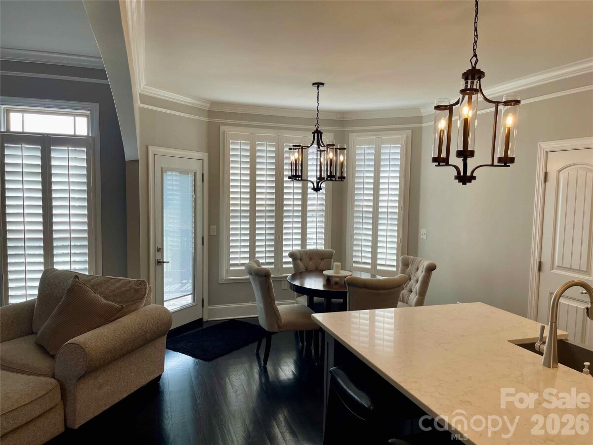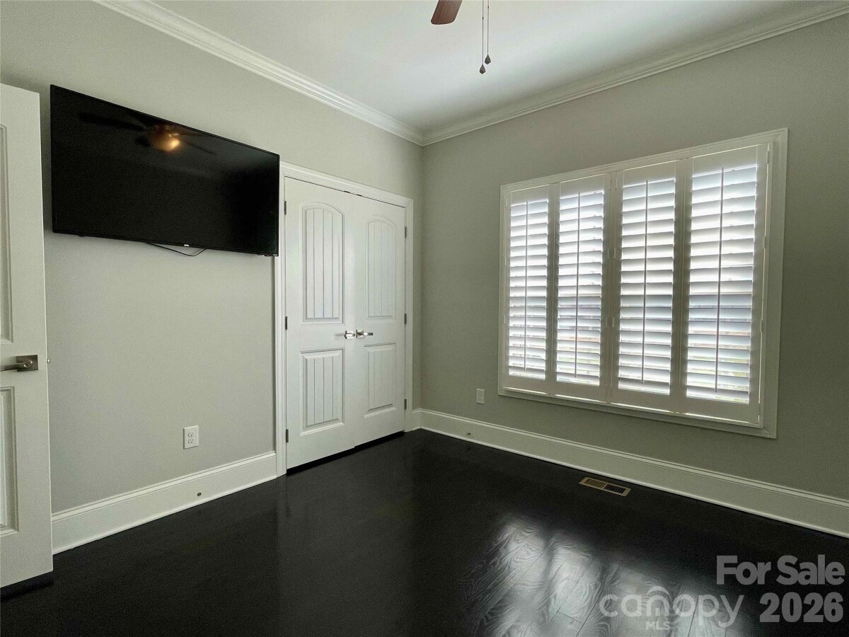 Desirable Mountain View location tucked away on a quiet cul-de-sac in the back of Abernethy Park! This beautifully designed four bedroom home offers an ideal floor plan with both the primary suite and a guest bedroom conveniently located on the main level. A full, guests bathroom is also located on this main level.The primary suite is a true retreat featuring a lovely sitting area, elegant double tray ceiling, dual closets, and a spacious ensuite bath complete with jetted tub, walk-in tiled shower, and dual vanities. The main level also includes a large laundry room with cabinetry, storage and utility sink, adding everyday convenience. Upstairs you'll find a versatile layout with a bedroom, large bonus room with closet, and an additional oversized bedroom that could serve as a second primary suite. This bedroom offers a large walk-in closet plus additional finished walk-in storage space with endless possibilities. The Jack-and-Jill style bath connects this bedroom and hallway for easy access. The main living area is bright and open, highlighted by a great room with vaulted ceilings and gas log fireplace, flowing seamlessly into the kitchen with quartz countertops and soft-close cabinetry. The formal dining room showcases beautiful coffered ceilings. Large windows with custom plantation shutters bring in beautiful natural light throughout this home. Step outside to a spacious 232 ft² back deck overlooking open fields owned by the Abernethy Park Owners Association, providing peaceful views and added privacy. Additional features include a level lot, tankless natural gas water heater, and thoughtfully designed spaces throughout. This home offers the perfect combination of comfort, functionality, and location in one of Mountain View’s most desirable communities.