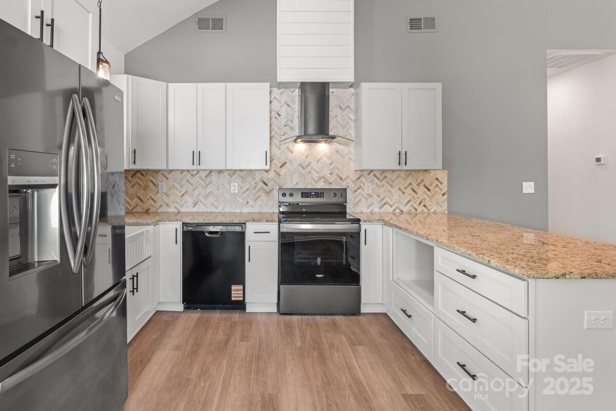 Step into this stunning brand-new ranch home, thoughtfully designed w/ an open floor plan blending style & functionality! It is located on a cute lot with no HOA near the heart of Cherryville w/ shops, dining, coffee, parks & rec areas - so much to do! The extended height cathedral ceiling sets the tone for the living areas with lots of light and flexibility in designing the space to make it your own. LVP floors seamlessly lead you into the gorgeous kitchen with peninsula and bar seating, granite ctrs, soft close cabinetry, farmhouse sink, chevron tile backsplash and hood vent, while the dining area invites you through the sliding glass doors to the patio. At the end of the day, relax in the amazing primary suite with tray ceiling, accent wall, 2 closets (1 walk-in) and LVP floors. No detail has been overlooked in the unbelievable primary bath showcasing an oversized tile & glass surround shower with rainfall, tile floors and dual vanity w/ granite counters. There is also a dedicated laundry room, 2 add'l bedrooms ample in size, plus hall bath w/ tile surround shower, granite counter & tile floors, home has no carpet - all tile & LVP flooring, no stairs, connected to city water & sewer. RARE FIND with so many upgrades and custom features at this price! You'll appreciate the quality construction and elevated finishes - not an average cookie cutter home! 10-year Structural warranty included. *USDA ELIGIBLE with no down payment. You may also qualify for up to $20,000 in down payment & closing cost assistance! Call preferred lender for details!