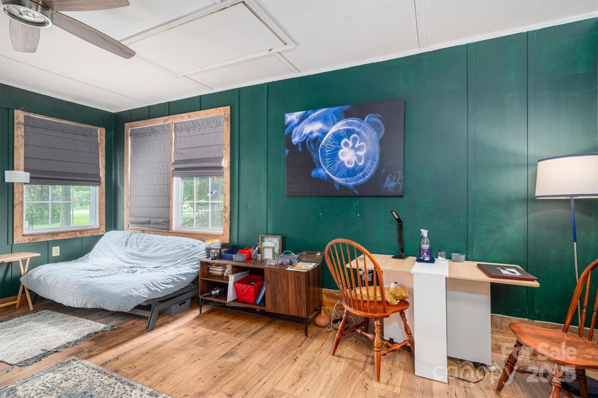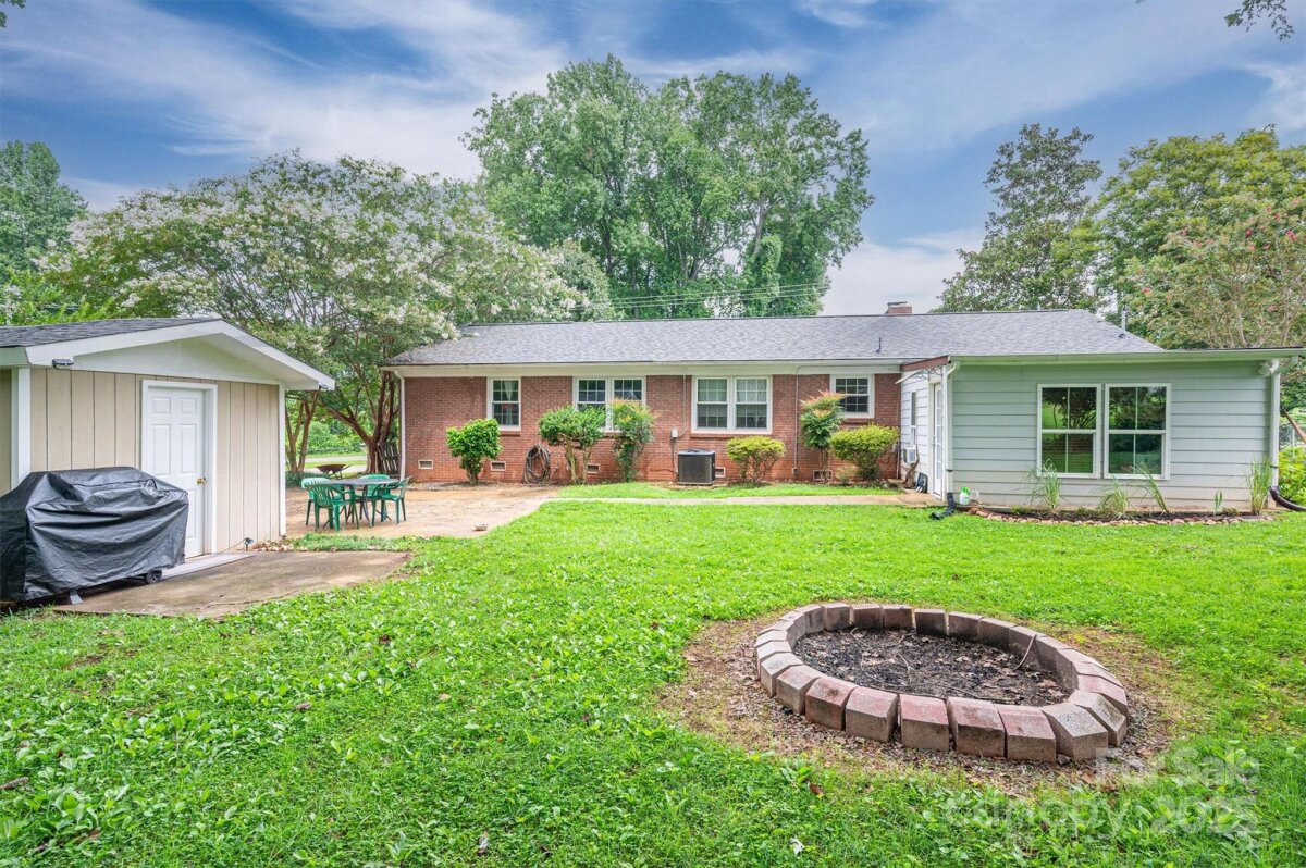 HUGE yard in quiet area of Gastonia! Looking for your own oasis without breaking the bank? Look no further than this ranch sitting on approximately 1 acre with a fully fenced backyard and outside enjoyment in mind. This home is being marketed as 3 bedroom 3 bath and is a perfect option for multigenerational living. The carport has been converted into a studio apartment with an ensuite full bath (this bedroom or flex space is in addition to the 3 bedrooms). The carport was converted prior to this seller's possession and it is unknown if the septic system was upgraded at that time (which is why it is listed at 3 bedrooms not 4). One bedroom is currently being used as an office and contrary to the time period the primary bedroom has an ensuite bathroom complete with a walk-in shower! REAL hardwoods throughout the house A large laundry room/sunroom has been added for additional space and provides a view of the peaceful backyard. Out back you will find 2 WIRED storage buildings that remain as well as tree cover to shade your outdoor activities and plenty of room for entertaining. As if that isn't enough, the well-maintained home has an encapsulated crawlspace and the roof was replaced in 2022! What are you waiting for? Come snag your piece of this sought after area of Gastonia before its gone too!