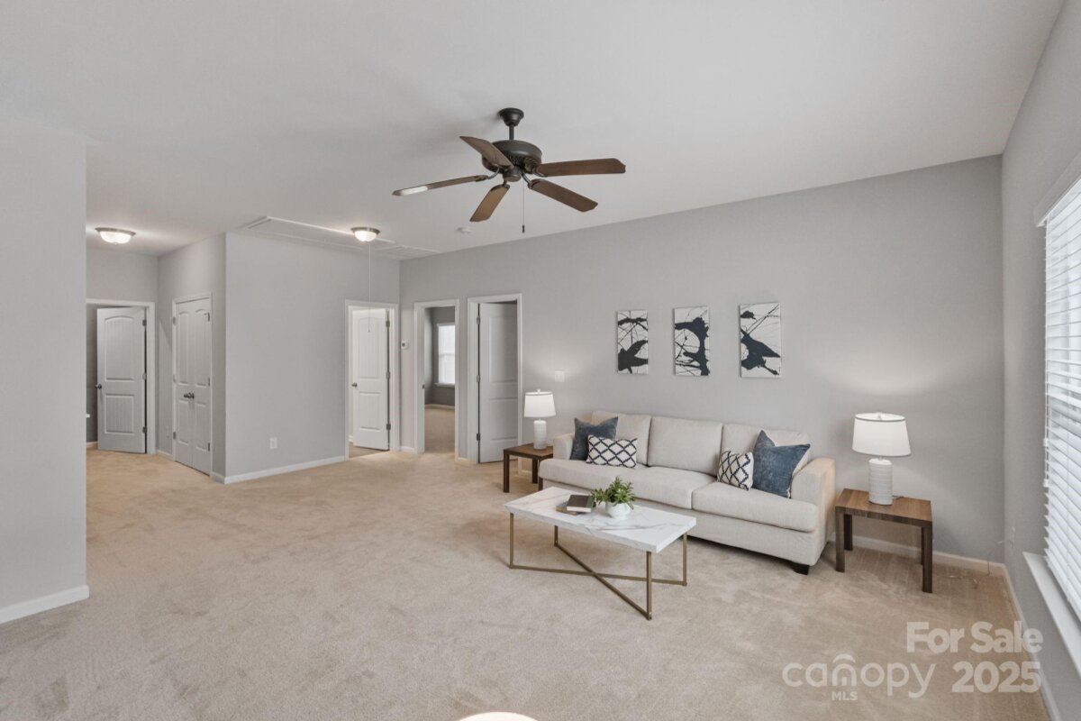 Welcome to 515 Stickley Place, a thoughtfully designed home tucked away on a quiet cul-de-sac in sought-after Walnut Creek community. With the primary suite conveniently located on the main level, this home offers effortless everyday living for those who value comfort and accessibility. Upstairs, a spacious loft and two additional bedrooms provide the ideal retreat for visiting guests or home office space. Step outside to discover your own sanctuary: a beautifully private backyard with no rear neighbors, perfect for morning coffee, quiet afternoons, or evening gatherings. Set within the heart of fast-growing Indian Land, this home offers the rare blend of peaceful surroundings and quick access to shopping, dining, and the community’s resort-style amenities including pools, walking trails, a fitness center, and clubhouse.