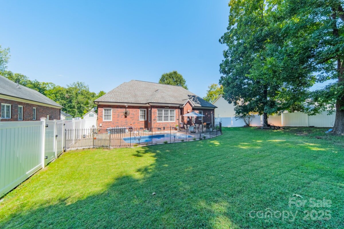 Just in time for the interest rate cut! This move-in ready 4-bedroom, 2-bathroom ALL-BRICK ranch with an in-ground pool is the end-of-summer opportunity you’ve been waiting for! Situated on the NO HOA side of the Rocky River Crossing subdivision, this home offers freedom, convenience, and charm in the heart of Harrisburg. Perfectly located near Harrisburg Town Center, Concord Mills, shopping, dining, and I-485, this home combines accessibility with small-town living. The pool liner was replaced in June 2025, giving plenty of time this season to dive in and enjoy. The thoughtful split floor plan provides privacy, with a large primary suite featuring a spacious bathroom with dual vanities on one side of the home, and two secondary bedrooms with a full bath on the other. At the center, a welcoming family room with gas log fireplace opens to a formal dining room and eat-in kitchen with breakfast bar, granite countertops, and ample cabinet space. Hardwood floors throughout the main level for a timeless touch. Upstairs, a versatile bonus, man cave, theatre, office or 4th bedroom offers massive storage space already equipped with subflooring—ideal for a future full bathroom to add additional square footage. The AC was replaced in April 2024, adding peace of mind for the next owner. Garage door replaced 2022, garage door motor replaced August 2025. This home sits on a spacious .36-acre lot with fenced backyard—perfect for entertaining, relaxing, or enjoying your private pool retreat. Don’t miss your chance to own this Harrisburg charmer—schedule your showing today! Seller is offering a home warranty up to $600 for added peace of mind.
