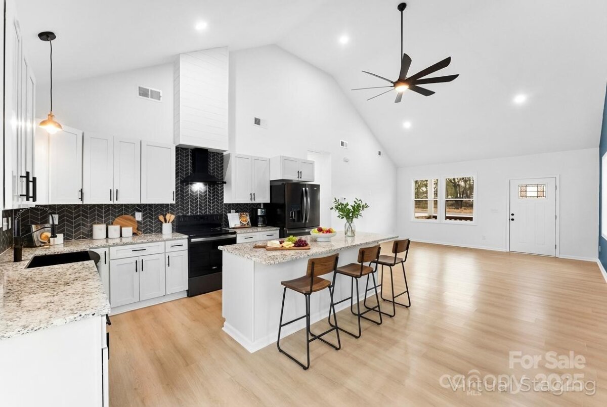 This beautifully crafted new-construction ranch offers the perfect blend of charm, quality, and modern design, without an HOA, right in the heart of Cherryville. From the inviting front porch, step into a light-filled open layout highlighted by vaulted ceilings, luxury vinyl plank flooring, and thoughtful upgrades throughout. The kitchen is a true centerpiece, designed for both everyday living and entertaining, with a spacious island for seating, soft-close cabinetry, granite countertops, a farmhouse sink, custom tile backsplash, and a statement vent hood. The dining area flows seamlessly to the patio through sliding glass doors, creating an easy indoor-outdoor connection and filling the space with natural light. The primary suite is a private retreat featuring a tray ceiling, accent wall, ceiling fan, and two closets, including a walk-in. The spa-inspired bath showcases a dual vanity with granite counters and a stunning oversized glass/tile shower, and rainhead faucet. Additional bedrooms are generously sized, and the home’s upgraded finishes and attention to detail set it apart from typical new construction at this price point. Enjoy the convenience of city water and sewer, a 10-year structural warranty, and a location just minutes from downtown Cherryville’s shops, dining, coffee spots, parks, and recreation. USDA-eligible with no down payment, and buyers may qualify for up to $20,000 in down-payment and closing-cost assistance (call preferred lender for details). This is quality construction, elevated style, and everyday comfort, done right.
