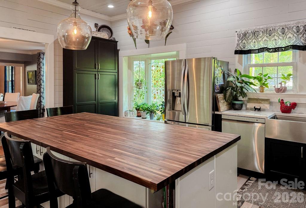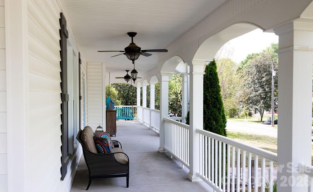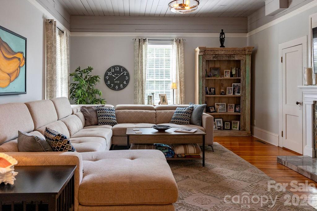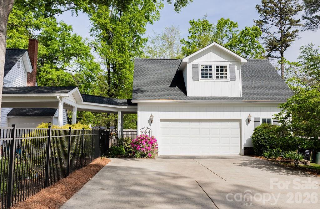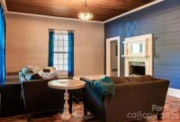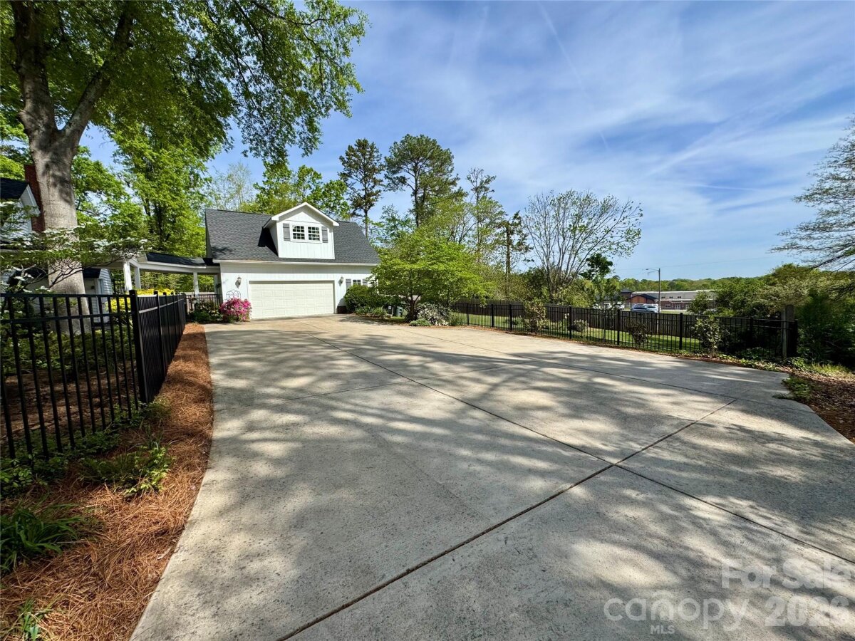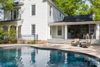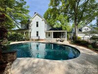 Beautifully updated 1895 farmhouse, once part of the historic W.H. Blume Estate, ideally located just off South Union Street in Concord. This 5-bedroom, 3 full bath home sits on .85 acres, surrounded by lush landscaping that comes alive in full bloom. The inviting wraparound front porch is the perfect place to relax, complete with space for rocking chairs or a swing to enjoy peaceful outdoor moments. Inside, soaring ceilings and original heart of pine floors showcase the home’s timeless character throughout the main level. Two fireplaces with gas logs—located in the living room and family room—add warmth and charm. The dining room features an original built-in china cabinet, while thoughtful renovations were done to reveal the beautiful original shiplap and restore the ceilings to their full height. The main level also includes a bedroom and full bath, ideal for guests or flexible living. The updated kitchen is both stylish and functional, offering abundant storage, stainless steel appliances (all of which convey), and thoughtful design details. The island with natural walnut top serves as a centerpiece with ample seating, complemented by Cambria quartz countertops along the perimeter. Select drawers feature double storage with upper and lower trays for added convenience. Upstairs, the primary suite is spacious yet cozy, featuring an updated bathroom with dual vanities, separate closets, and a classic clawfoot tub perfect for relaxing soaks. One bedroom is currently used as a home office, while the two additional bedrooms are bright, airy, and generously sized. Step outside to the private backyard oasis. The covered back porch, complete with a TV, overlooks a heated saltwater pool—creating the perfect setting for entertaining or unwinding. The fenced yard adds privacy and functionality. Enjoy the stone fire pit and surround with seating for s'mores on fall evenings in the backyard. Additional features include a detached oversized two-car garage with an electric vehicle charger and unfinished bonus space above, offering excellent potential for a future apartment, studio, or additional living area. Roof 2021, heat pumps 2023, pool pump 2025. All attached TVs convey. Refrigerator (2-kitchen and garage), microwave (in cabinet to the right of the range) and washer/dryer convey. Whole house water filter. Water heater with circulation pump for instant hot water. Enjoy walking to Downtown Concord with new shops and restaurants. Also walking distance to Les Myers Park and to pick up the greenway trail that leads to Mickey McGee Park. 1 hour notice for all showings.