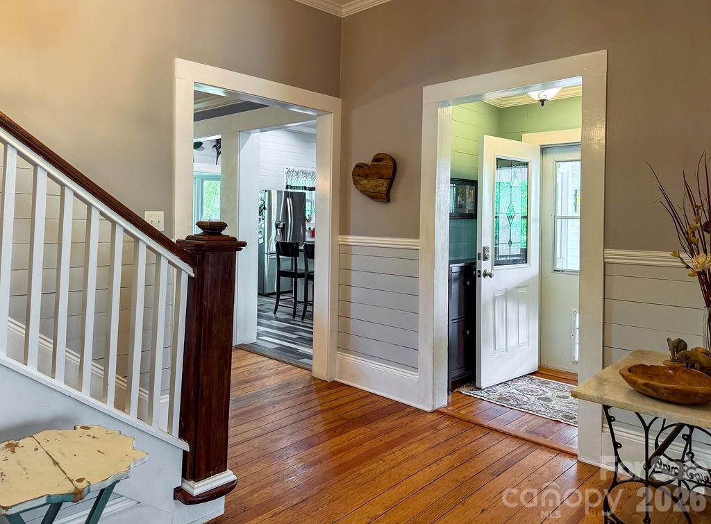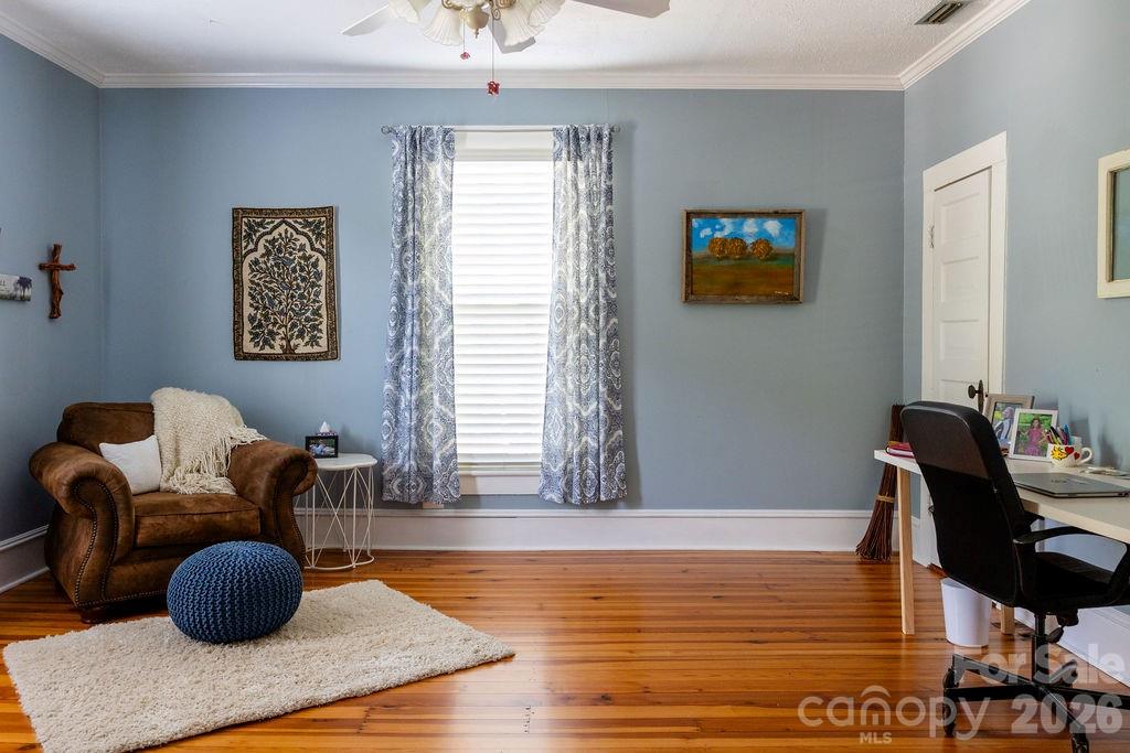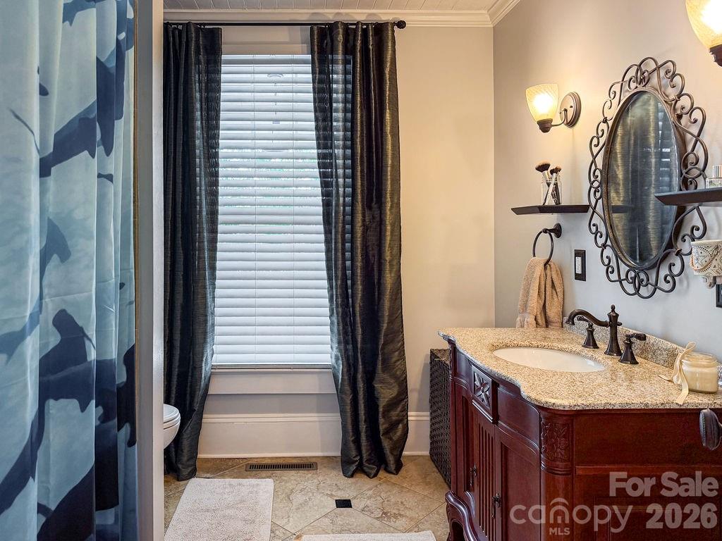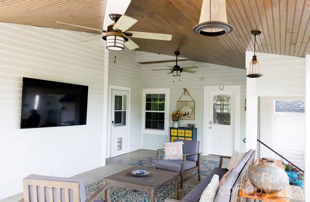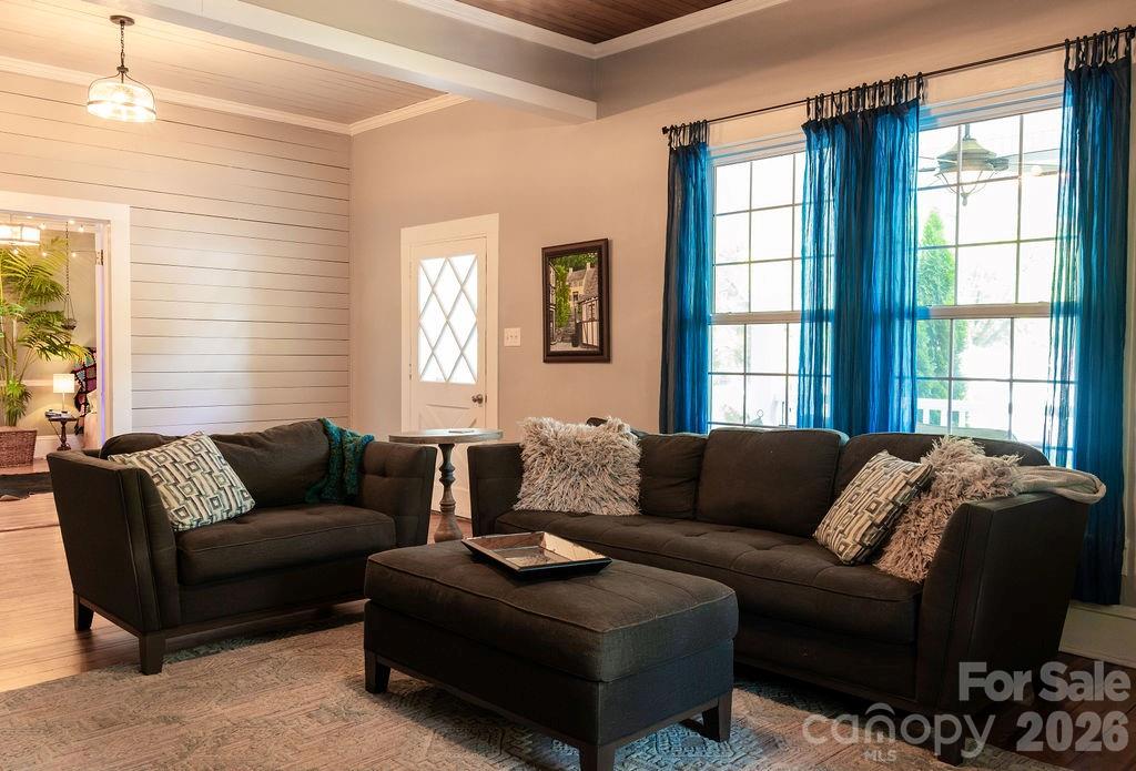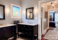 Beautifully updated 1895 farmhouse, once part of the historic W.H. Blume Estate, ideally located just off South Union Street in Concord. This 5-bedroom, 3 full bath home sits on .85 acres, surrounded by lush landscaping that comes alive in full bloom. The inviting wraparound front porch is the perfect place to relax, complete with space for rocking chairs or a swing to enjoy peaceful outdoor moments. Inside, soaring ceilings and original heart of pine floors showcase the home’s timeless character throughout the main level. Two fireplaces with gas logs—located in the living room and family room—add warmth and charm. The dining room features an original built-in china cabinet, while thoughtful renovations were done to reveal the beautiful original shiplap and restore the ceilings to their full height. The main level also includes a bedroom and full bath, ideal for guests or flexible living. The updated kitchen is both stylish and functional, offering abundant storage, stainless steel appliances (all of which convey), and thoughtful design details. The island with natural walnut top serves as a centerpiece with ample seating, complemented by Cambria quartz countertops along the perimeter. Select drawers feature double storage with upper and lower trays for added convenience. Upstairs, the primary suite is spacious yet cozy, featuring an updated bathroom with dual vanities, separate closets, and a classic clawfoot tub perfect for relaxing soaks. One bedroom is currently used as a home office, while the two additional bedrooms are bright, airy, and generously sized. Step outside to the private backyard oasis. The covered back porch, complete with a TV, overlooks a heated saltwater pool—creating the perfect setting for entertaining or unwinding. The fenced yard adds privacy and functionality. Enjoy the stone fire pit and surround with seating for s'mores on fall evenings in the backyard. Additional features include a detached oversized two-car garage with an electric vehicle charger and unfinished bonus space above, offering excellent potential for a future apartment, studio, or additional living area. Roof 2021, heat pumps 2023, pool pump 2025. All attached TVs convey. Refrigerator (2-kitchen and garage), microwave (in cabinet to the right of the range) and washer/dryer convey. Whole house water filter. Water heater with circulation pump for instant hot water. Enjoy walking to Downtown Concord with new shops and restaurants. Also walking distance to Les Myers Park and to pick up the greenway trail that leads to Mickey McGee Park. 1 hour notice for all showings.