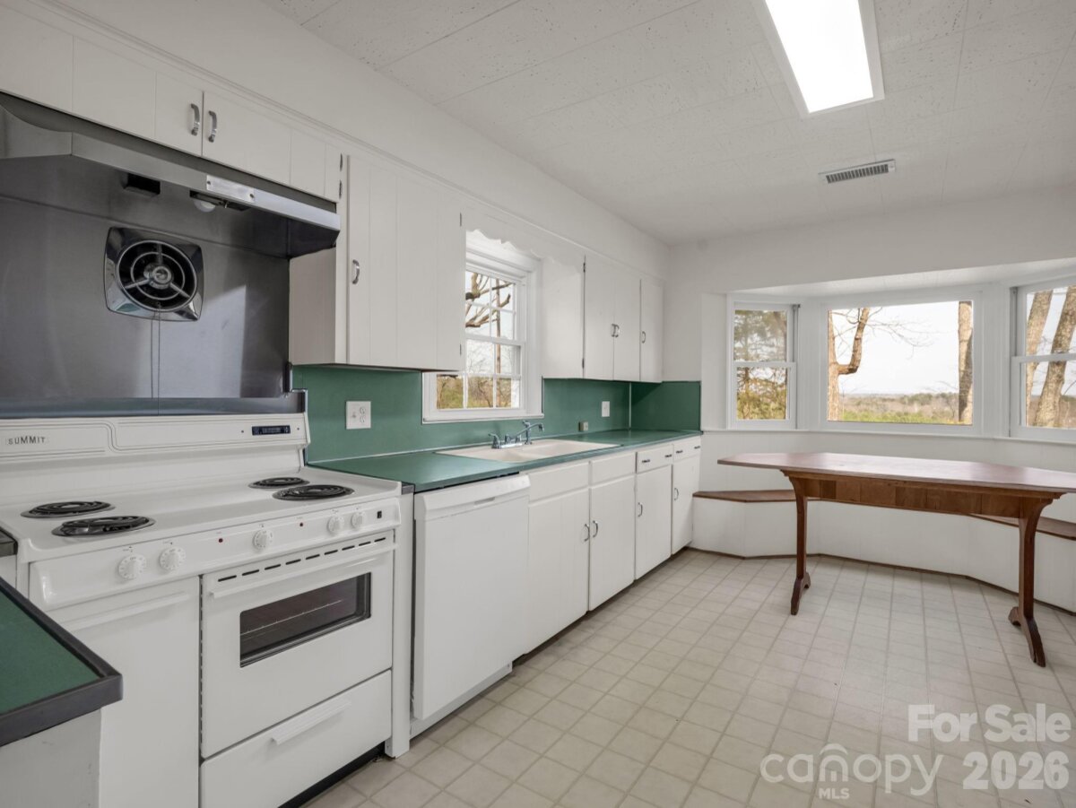 Nestled among mature hardwood trees on 2.15 acres, this spacious custom home offers the perfect blend of privacy, comfort, and timeless appeal. Situated on a gently sloping lot, the home welcomes you with a classic exterior. One of the standout features is the covered long front porch-perfect for relaxing and enjoying the peaceful surroundings or entertaining in any weather as it joins the attached carport. Watch the sun rise on your front porch or sit in the backyard where you have long range views of the sunset. Inside you will find generous living spaces throughout. Large windows bring loads of natural light across the backside. There is an awesome retro-style kitchen complete with vintage counter-tops that bring both character and durability. The nostalgic design is a unique find equipped with a breakfast nook with custom table. There are 4 bedrooms and 3 baths so plenty of room to spread out with space for office or hobbies or an occasional guest. Home is convenient to shopping and minutes to the TIEC complex or a short drive to Asheville. This one has great bones so schedule your appt. today!