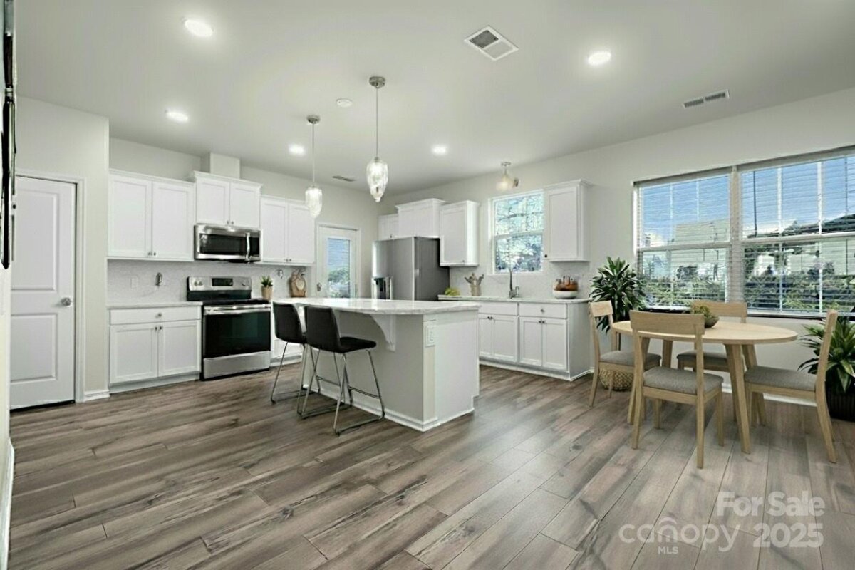 Price Reduced! Rare Opportunity in Legacy Ridge! This fully furnished, one-level 3 bedroom, 2 bath home offers over 1,500 HSF of comfortable living space. The kitchen shines with stainless steel appliances, quartz countertops, and a large center island with stylish pendant lighting. Huge walk in closet in the primary bedroom. Tastefully decorated with quality furnishings, a huge 83" TV, and luxury vinyl plank flooring throughout, this home is truly move-in ready. Appliances also include washer/dryer and a chest freezer. Enjoy your evenings on the covered rear porch sipping ice tea and fellowshiping with neighbors, rear yard easy to fence in for pets or small people, and private cul-de-sac lot, plus the community’s beautiful outdoor pool and clubhouse is just a short walk away. Conveniently located within minutes of shopping and dining, and only 45 minutes to Charlotte Douglas International Airport.