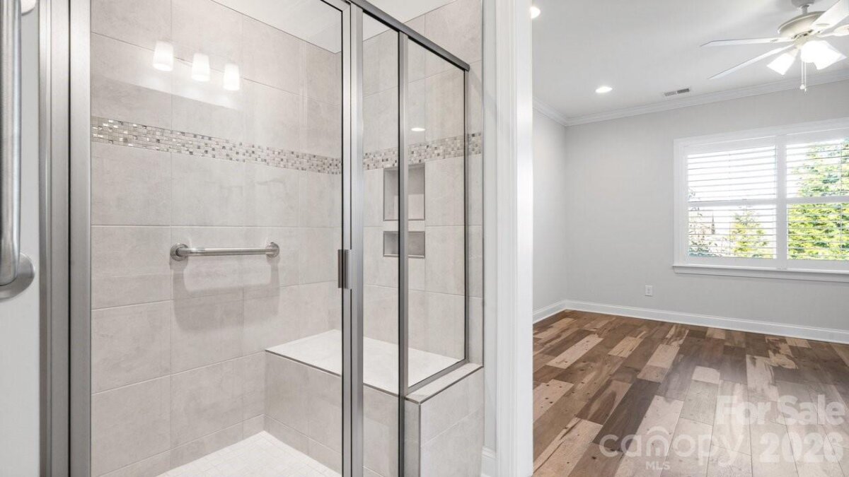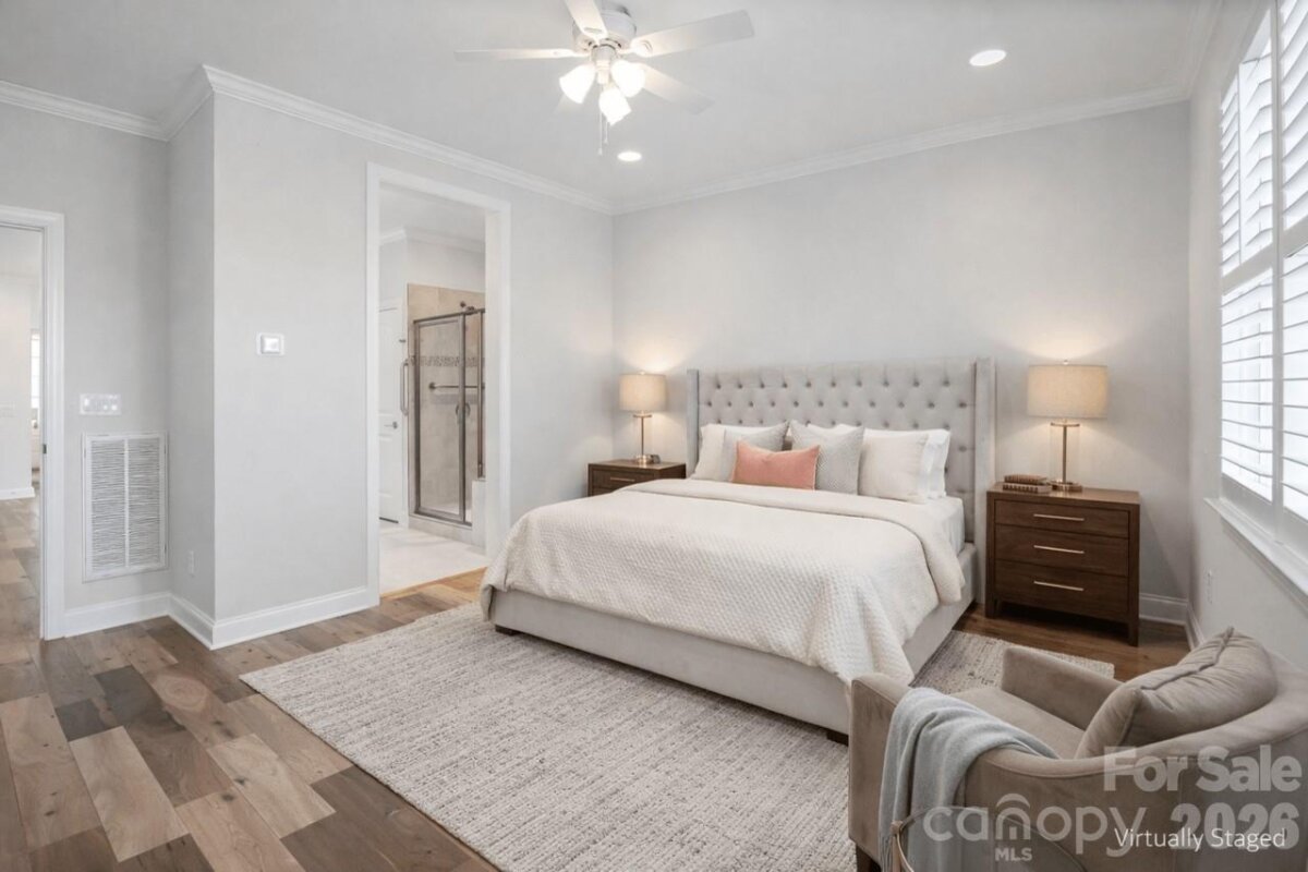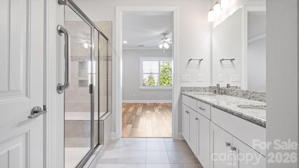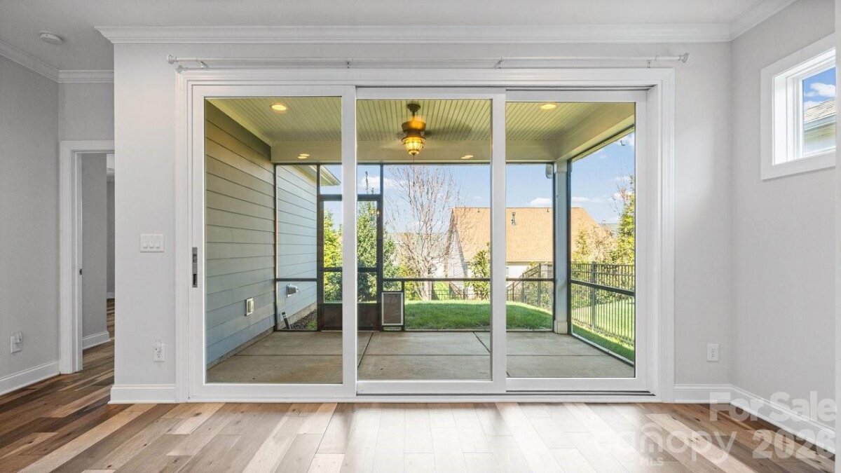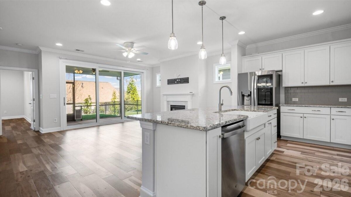 Open-concept Glory plan on an exceptional lot with long range views. Split 2BR, 2B open concept plan features a customizable multiuse flex space. The well-appointed kitchen anchors the main living area and includes SS appliances, gas range, farm sink, solid surface countertops, pendant lighting, light craftsman style cabinetry w/soft close drawers, tile back splash and island serving bar. Adjoining great room is highlighted with a gas log fireplace and wall of glass that opens to a peaceful screened lanai and well landscaped fenced rear yard that extends in and outdoor entertaining options. A serene master suite completes this home & ensuite bath with dual sink vanity, tile floor and a generous walk-in closet & tiled shower with grab bars for safety. Plantation shutters, low maintenance wood and tile flooring (no carpet) and a large laundry room with additional counter space and cabinet. Attached 2 Car garage for additional storage options for all those things you just couldn't part with. Trilogy Membership includes Freedom Boat Club on Lake Norman plus award winning amenities