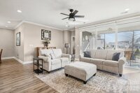 Watch the sun rise from this premium unobstructed common area view lot. Make yourself comfortable and enjoy the open concept Glory floorplan that has an amazing use of function and space. A well-appointed kitchen anchors the main living area and includes stainless steel gas appliances, granite countertops, tile backsplash, white cabinets, designer lighting and a large seating island. The adjacent great room is highlighted with a gas log fireplace flanked by custom cabinetry and wall of glass featuring electric shades, that flow on to the screened porch and patio extending in and outdoor entertaining areas. The rear fenced yard has a park-like setting, shade trees and synthetic turf for easy maintenance. Multiuse flex space adds versatility and the split bedroom plan offers privacy for guests. A serene master suite completes this home with dual sink vanity, tile floor in the bath with a generous walk-in custom closet and tiled shower. Low maintenance LVP and tile floors throughout the home. Trilogy Membership includes Freedom Boat Club on Lake Norman plus award winning amenities.