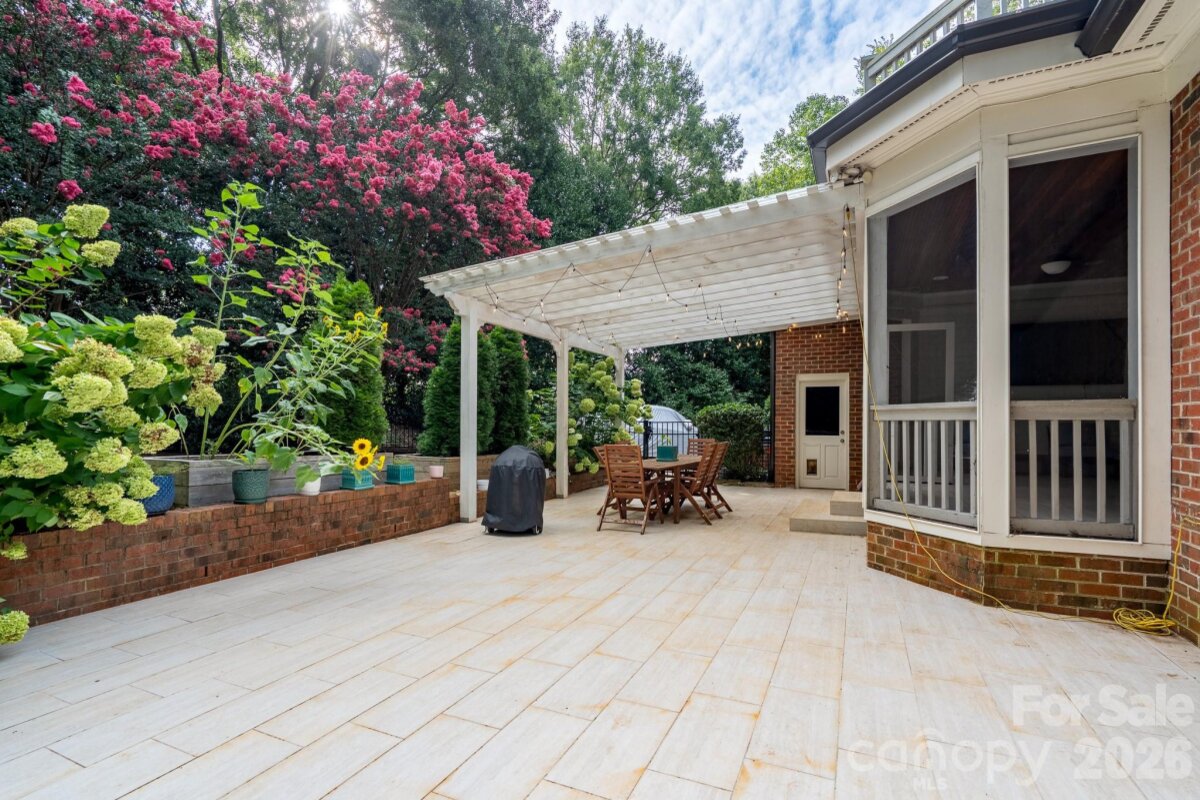 Significant price improvement in Providence Country Club—now offering a rare opportunity to secure entry into one of South Charlotte’s most sought-after communities at an exceptional value. This all-brick 4-bedroom, 3.5-bath home delivers timeless elegance and modern comfort, highlighted by beautifully refinished and freshly stained hardwood floors throughout home (2026). The open floor plan is perfect for both everyday living and entertaining, anchored by a grand living room featuring tray ceilings and a centrally located gas log fireplace. This space flows seamlessly into a charming dining area, all situated beside a gourmet eat-in kitchen complete with granite countertops, backsplash, a large island, expansive pantry, and a beautiful wet bar. The main-level primary bedroom offers a serene retreat with ample space, tray ceilings, a large walk-in closet, and a gorgeous en suite bathroom. By the home's entryway, access your first-floor office through newly added French doors, creating a quiet work or flex space. Upstairs, you’ll find three generously sized bedrooms, two full baths, and a versatile bonus room with attic workspace—ideal for hobbies, storage, or additional living space. Outside, enjoy the renovated screened porch that leads to a new patio and pergola overlooking the large fenced yard—perfect for relaxing or entertaining. The home also features a side-load 2-car garage with two dedicated storage areas, complemented by a long driveway that accommodates multiple vehicles for guests. Additional updates include a new roof (2023), new triple-pane windows (2024), new KitchenAid stainless steel appliances (2024/25), and a new furnace (2025)—offering peace of mind for years to come. Located in a highly coveted school district and close to a wide variety of shopping and dining options, with convenient access to I-485 and Hwy 16, this home effortlessly combines luxury, convenience, and prime location.