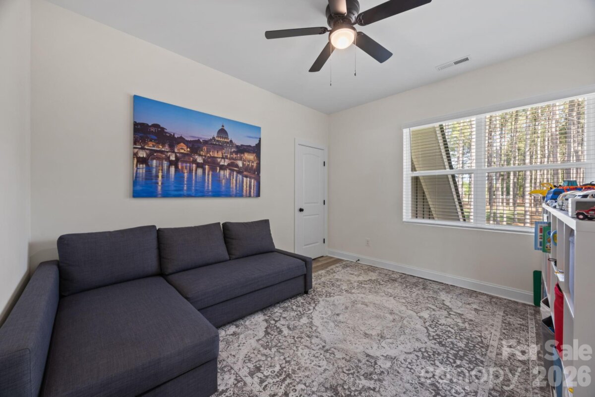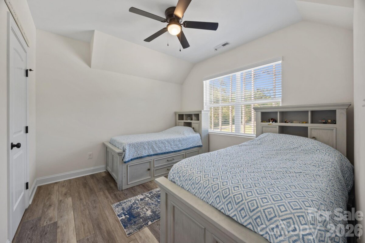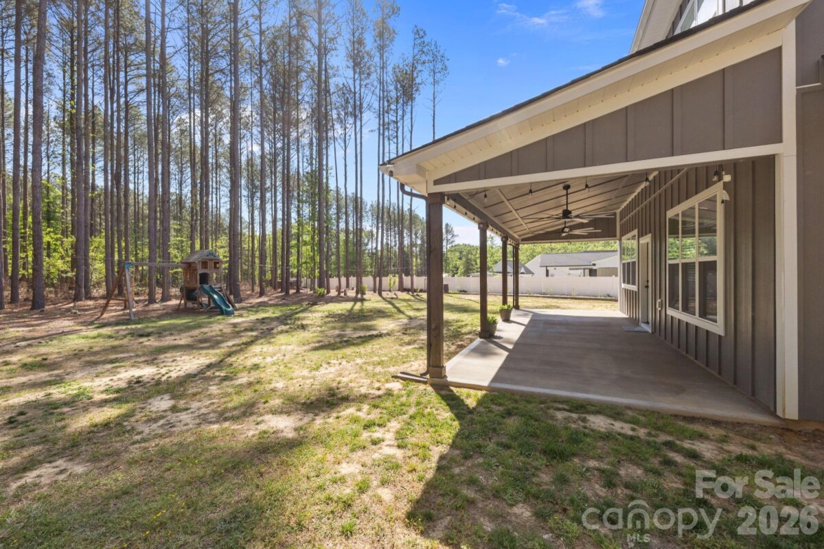 Beautiful, like-new home set on a sprawling 1-acre lot in the peaceful Homestead neighborhood. Meticulously maintained and thoughtfully designed, this property offers abundant features inside and out! A deep, covered front porch welcomes you inside to a bright, open floor plan with 9-foot ceilings on both levels and ample natural light throughout. The main level features a versatile office or flex space, ideal for working from home or creating a quiet retreat. The gorgeous kitchen is complete with granite countertops, a walk-in pantry, lots of cabinet space, and a bonus refrigerator that conveys with the home. Upstairs, all four bedrooms are generously sized, each with its own walk-in closet. The spacious primary suite includes a double vanity and an oversized walk-in closet, while the conveniently located upstairs laundry room (washer and dryer included) adds everyday ease. Step outside to enjoy the oversized covered rear patio—perfect for relaxing or entertaining year-round. The expansive yard offers endless possibilities, including a private wooded section for exploring, along with outdoor string lights and a backyard playset that will remain with the property. Additional highlights include a 50-amp EV charger in the garage, an extra-wide driveway with plenty of parking, and beautifully landscaped grounds featuring a variety of fruit trees and bushes. With no HOA and a serene country setting just minutes from city conveniences, this home truly offers the best of both worlds.