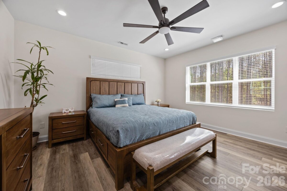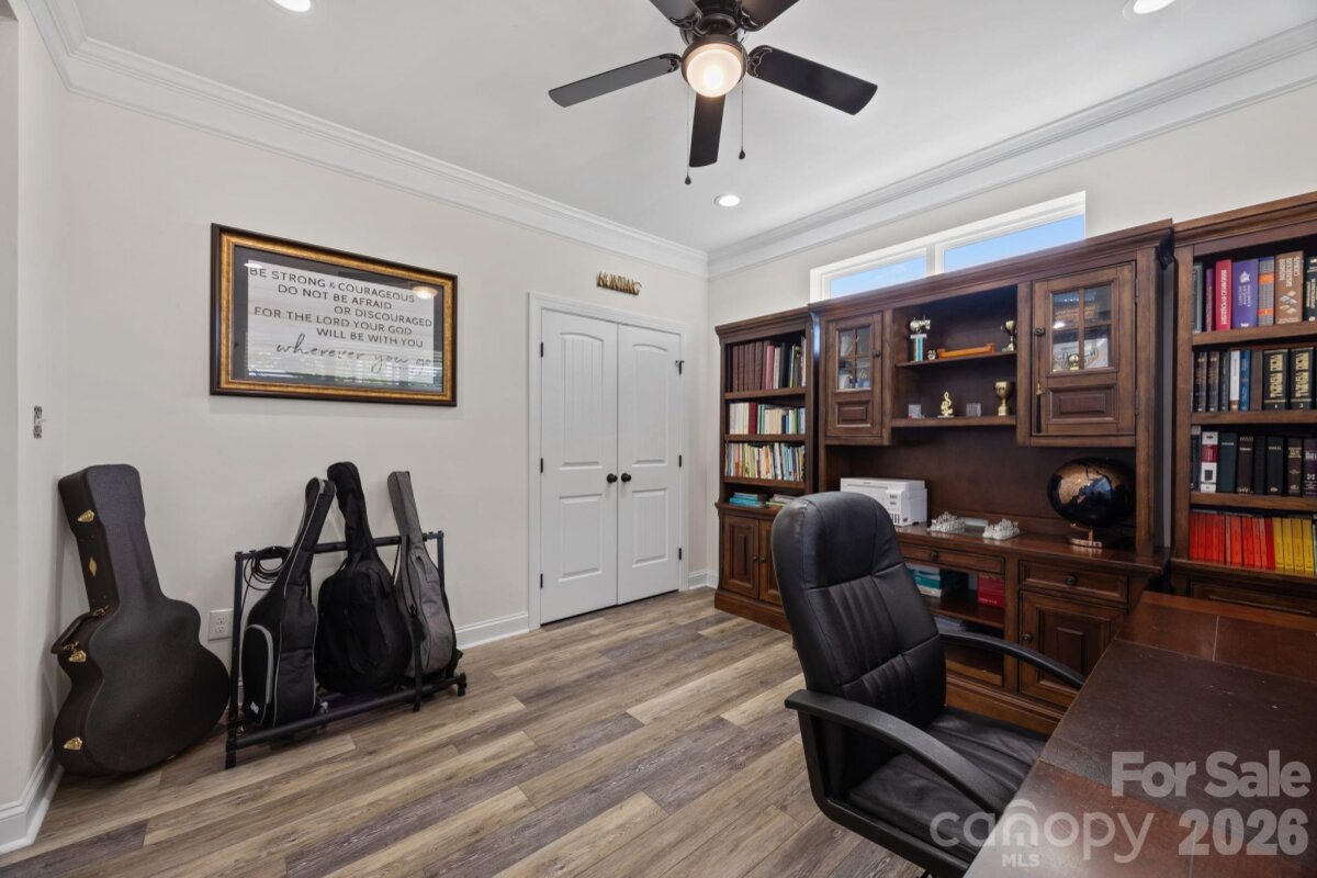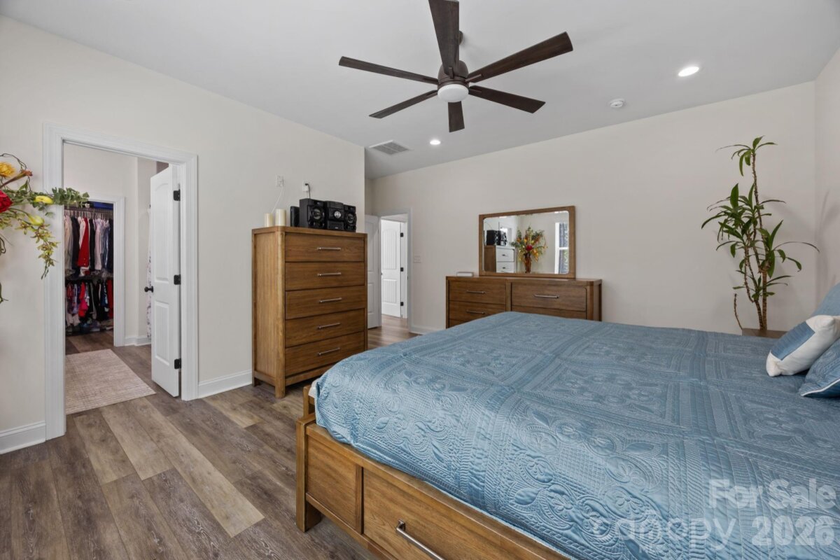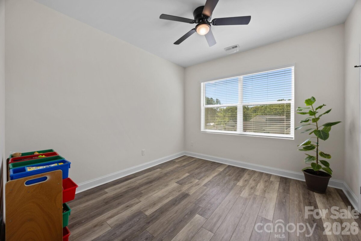 Beautiful, like-new home set on a sprawling 1-acre lot in the peaceful Homestead neighborhood. Meticulously maintained and thoughtfully designed, this property offers abundant features inside and out! A deep, covered front porch welcomes you inside to a bright, open floor plan with 9-foot ceilings on both levels and ample natural light throughout. The main level features a versatile office or flex space, ideal for working from home or creating a quiet retreat. The gorgeous kitchen is complete with granite countertops, a walk-in pantry, lots of cabinet space, and a bonus refrigerator that conveys with the home. Upstairs, all four bedrooms are generously sized, each with its own walk-in closet. The spacious primary suite includes a double vanity and an oversized walk-in closet, while the conveniently located upstairs laundry room (washer and dryer included) adds everyday ease. Step outside to enjoy the oversized covered rear patio—perfect for relaxing or entertaining year-round. The expansive yard offers endless possibilities, including a private wooded section for exploring, along with outdoor string lights and a backyard playset that will remain with the property. Additional highlights include a 50-amp EV charger in the garage, an extra-wide driveway with plenty of parking, and beautifully landscaped grounds featuring a variety of fruit trees and bushes. With no HOA and a serene country setting just minutes from city conveniences, this home truly offers the best of both worlds.