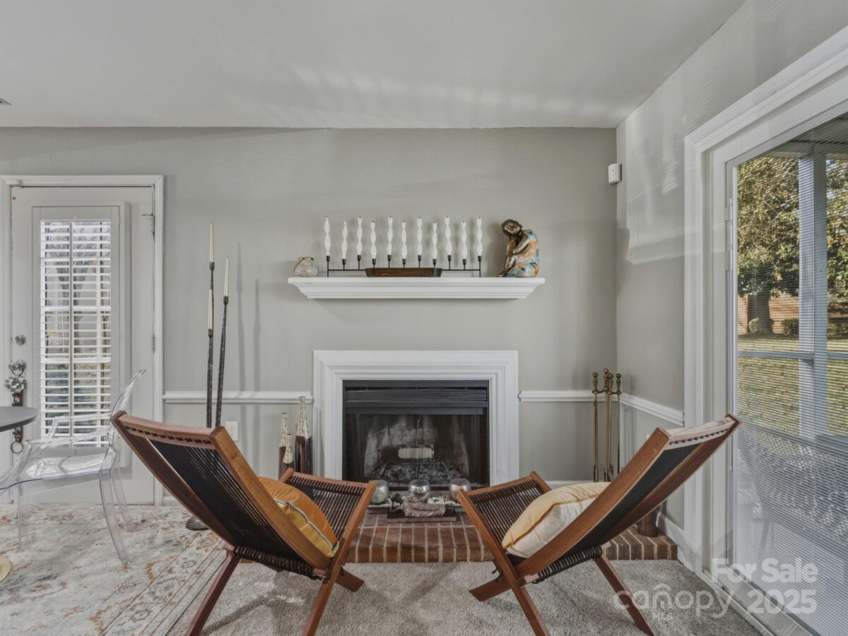 Get ready to fall in love with this beautiful end-unit, two-story condo—formerly the model home—packed with high-end upgrades and thoughtful details throughout! The inviting front patio welcomes you into a spacious layout ideal for both everyday living and entertaining. The main level features hardwood flooring in the entry and kitchen, along with a stylish tile backsplash, Frigidaire stainless steel appliances, a large dining area, and convenient bar seating. A Whirlpool washer and dryer remain with the home. The updated half bath showcases a new countertop and backsplash. The expansive living/dining area includes a wood-burning fireplace, plantation shutters, chair rail detailing, and recessed lighting. Sliding doors open to a relaxing screened-in porch. Upstairs, you'll find three generous bedrooms and two updated bathrooms with new tile. The primary suite features a spacious walk-in closet, an updated bathroom, and a charming private walk-out patio. Additional highlights include: -Newer carpet and paint -Alarm system -Updated switches, receptacles, and wall plates -Newer roof -Electric hot water heater with 35-gallon expansion tank -Two dedicated parking spaces -updated windows throughout home -updated bathroom in main bedroom -Access to the community clubhouse and pool This condo is located in an excellent community with easy 15-minute access to Uptown and SouthPark, this home offers convenience, comfort, and style all in one.