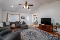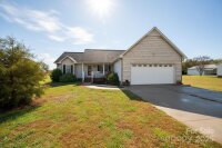 Charming 3-Bedroom Home on Almost 1 acre! This 3-bedroom, 2-bath home offers a desirable split-bedroom floor plan with hardwood floors, tile, and cozy carpet in the bedrooms. The spacious primary suite features a tray ceiling, relaxing soaker tub, and separate shower. You’ll love the vaulted ceiling in the living room that adds an open, airy feel, and each bedroom provides plenty of space and comfort. Outside, enjoy a large, level yard—perfect for outdoor living or future landscaping dreams. Located in a sought-after neighborhood, this home is priced to move and won’t last long! With just a few updates, you can make it truly your own.