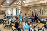 Welcome home to Edgewater! This destination community has a ton of amenities with championship golf, lake access, tennis, bocce, fitness, walking trails, playground, multiple pools, & more! This meticulously maintained ranch home is loaded with features! The large great room has LVP Wood Flooring, gas log fireplace, mantle & marble surround, recessed lighting, & views of the rear patio & private rear yard. The gourmet kitchen features granite counter tops, island, stainless appliances, tile backsplash, pendant & recessed lighting, pantry, & butlers pantry with granite countertops. Entertaining will be a delight in this open & spacious plan! The huge primary suite boasts a large sitting room with access to the screened patio & views of the private rear yard. The primary bath has walk-in shower, dual vanity, & oversized closet. The guest room & 3rd bedroom/home office are ample & share a full guest bath! You will simply love this home! 3rd bedroom does not have a closet. Call for info.