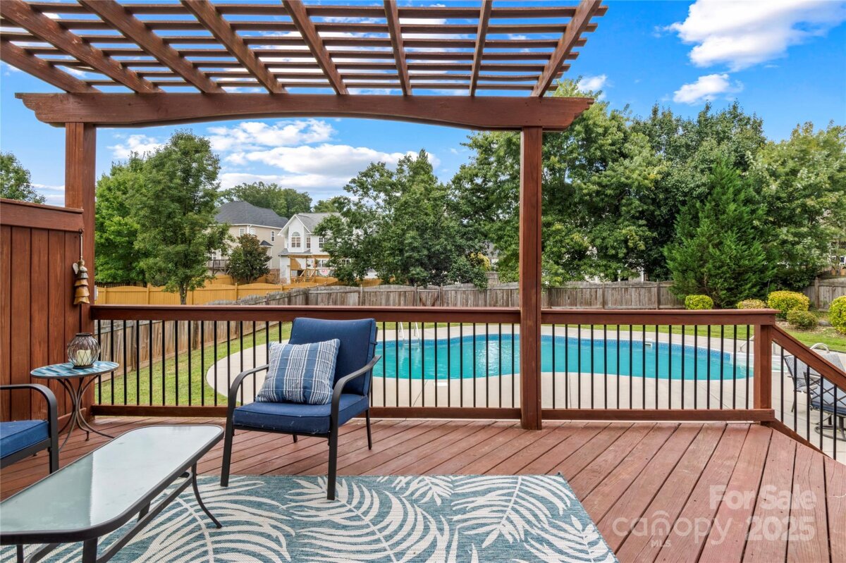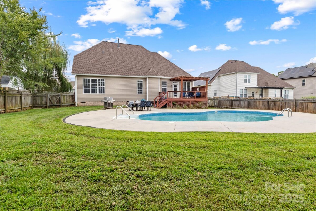 Welcome to Peppertree! Priced Reduced! Clemmons with an Inground Pool! Open floorplan ...Kitchen with granite countertops, stainless appliances, pantry and lots of cabinets (Kitchen Refrigerator remains) .. Breakfast Area and Formal Dining with Vaulted Ceilings ... Living Room with soaring ceilings and Gas Fireplace.. Hardwood floors throughout main level ... Laundry Room (washer & dryer to remain) and 1/2 bath ... Spacious Primary Bedroom on Main with Double Closets and Primary Bathroom with Jetted Tub, Separate Shower, and Double sinks.... Upper level offers 2 additional Bedrooms and Bonus Room too... Hall Bathroom with double sinks and tub/shower combo & also connects to one of the secondary bedrooms....Inground Pool, 4-6ft deep with custom design, New pool liner, and spacious pool decking for plenty of furniture and pool side sitting ... Back Deck with Pergola.. Fenced level back yard... New Roof... 2 car attached garage... First American Home Warranty (See agent only for appointment info)