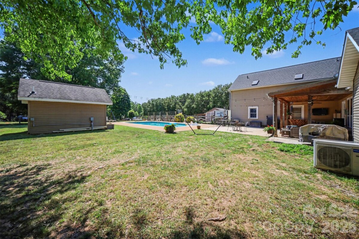 Beautiful farmhouse situated on a 1.6 acre corner lot completely updated top to bottom without losing its farmhouse charm. Extensive use of shiplap with light flooring and walls. Open floor plan boasts over 3,600 sq ft consisting of 6 bedrooms, 4.5 bathrooms! Outside there are 2 covered porches; an in-ground pool; a pool house w/bathroom; storage buildings; a gigantic 800 sq ft attached garage! AND a 2,400 sq ft detached workshop w/3 bay roll-up doors and office space, perfect for RV storing, hobbies, auto collection, workshop, or whatever you can imagine. The chef-worthy kitchen is a masterpiece with custom cabinetry w/pull-outs; beautiful quartz countertops; center island with butcher block top providing added workspace; an island with seating for entertaining; big farmhouse sink; walk-in pantry w/built-in cabinetry and wood countertops; and the charming pine beadboard ceilng is the 'frosting on the cake' in this beautiful kitchen. The Great Room/Dining Room with its soaring vaulted ceiling is anchored by a cozy fireplace and custom built-ins offering the perfect setting for gatherings and making memories. Library/office/den room with wall of built-in shelves/cabinets. The main floor bedroom wing has a full bathroom, an additional attached room for possible office or den with a full loft above, perfect for second living quarters. There's a mudroom w/built-in floor to ceiling shoe rack. Main floor laundry room with cabinets, built-in sink and folding table. Upstairs you'll find room for everyone with a loft gathering area, 5 bedrooms and 3 full bathrooms! The primary bedroom has a newly remodeled bathroom with a slipper tub, walk-in shower and dual vanities. Down the hallway you'll come to 4 additional bedrooms, one with an en-suite full bathroom, and at the end of the hall another full bathroom. Going through the French doors to the rear yard you can relax under the large covered porch or swim in the beautiful in-ground large rectangle swimming pool. All of the equipment, including the well equip is safely housed in the 'pool house' safe from weather deterioration. If your inner farmer is what calls you to this property you'll find plenty of space for raising chickens, goats, or growing your own food. You'll enjoy room to spread out with the zoning being a minimum of 3/4 acres in this area of Iron Station. A rural property that is only minutes from shopping, restaurants and schools. Charlotte is a quick drive down Hwy 16. Low Lincoln County property taxes. There's a small triangle parcel of 0.09 acres included so there are two parcels in this sale totaling 1.6 acres.
