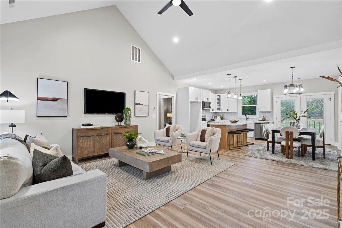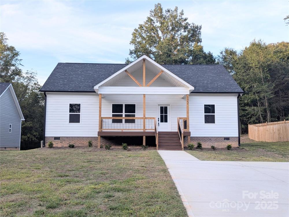 Nestled on over half an acre lot, this beautiful new ranch home blends timeless appeal with modern sophistication. As you step inside, an inviting open floorplan with a vaulted ceiling greets you. Natural light pours in through large windows, accentuating the fine craftsmanship of the space. At the heart of the home lies a chef-inspired kitchen, featuring sleek countertops, ample lighting, and a large island with plenty of room to create culinary masterpieces. The seamless flow into the living and dining areas makes entertaining effortless and enjoyable. The master suite has a tray celing with recessed lighting, a large walk-in closet, and a beautiful bathroom with walk-in shower. The laundry room is conveniently located off of the dining room with lots of extra storage space. Outside, the expansive grounds offer limitless potential for outdoor living. Don’t miss out on the opportunity to make this home your personal sanctuary.