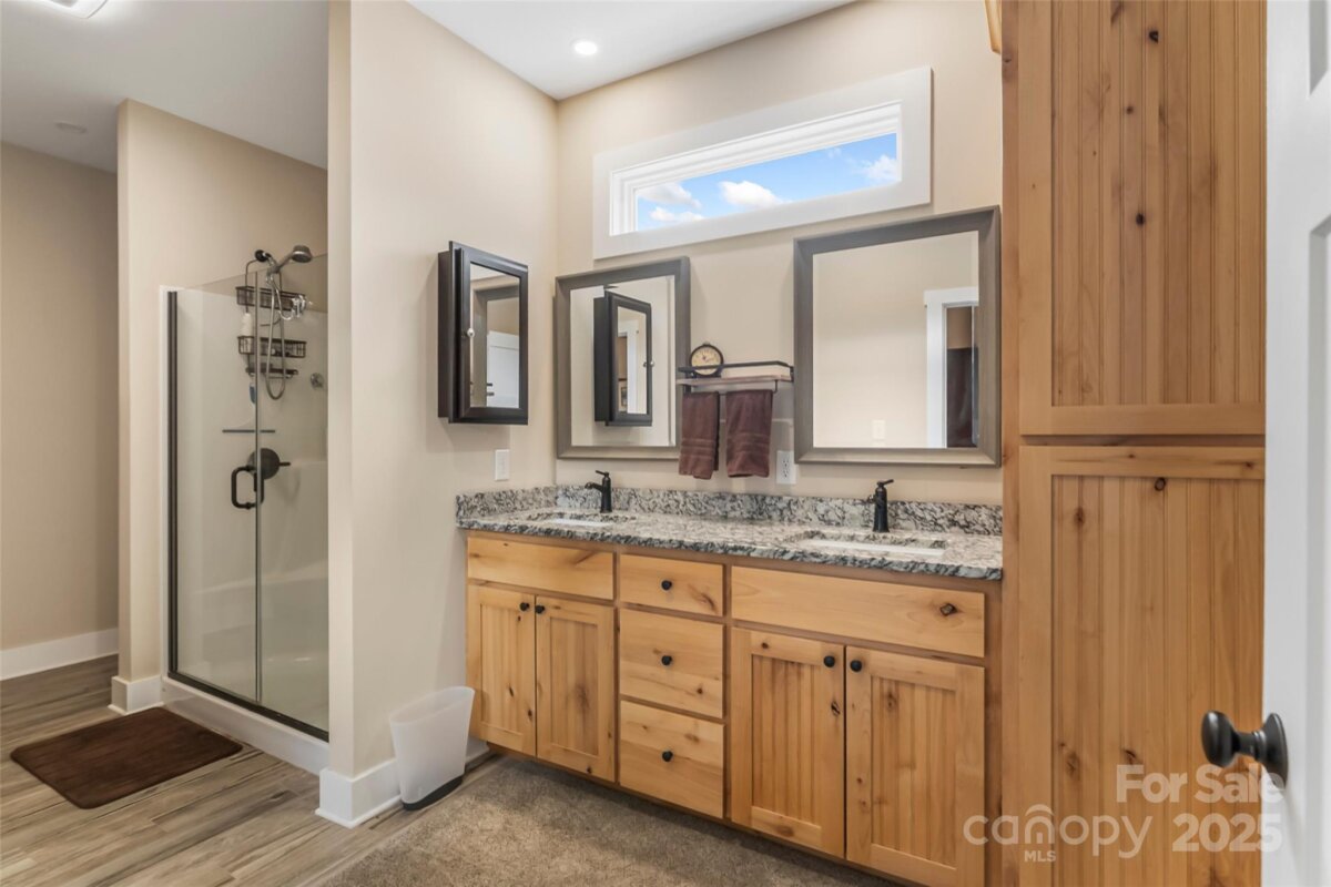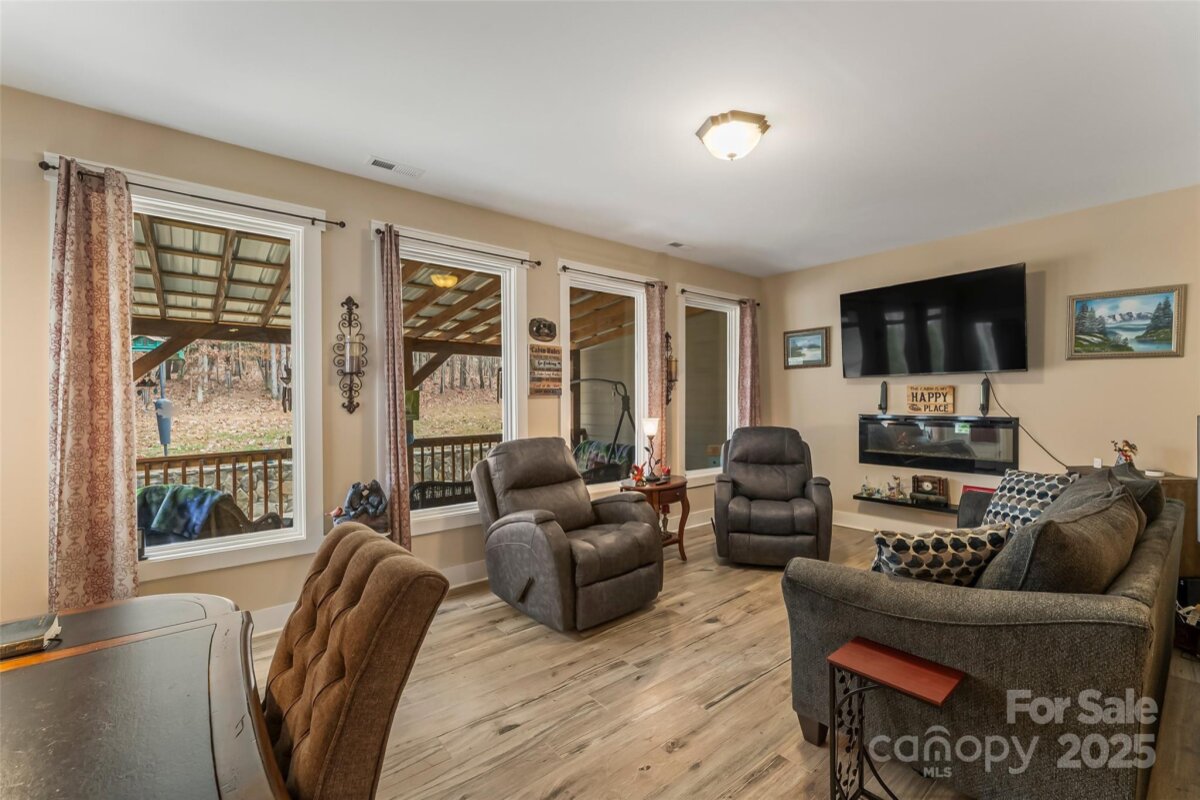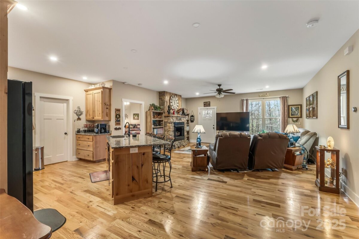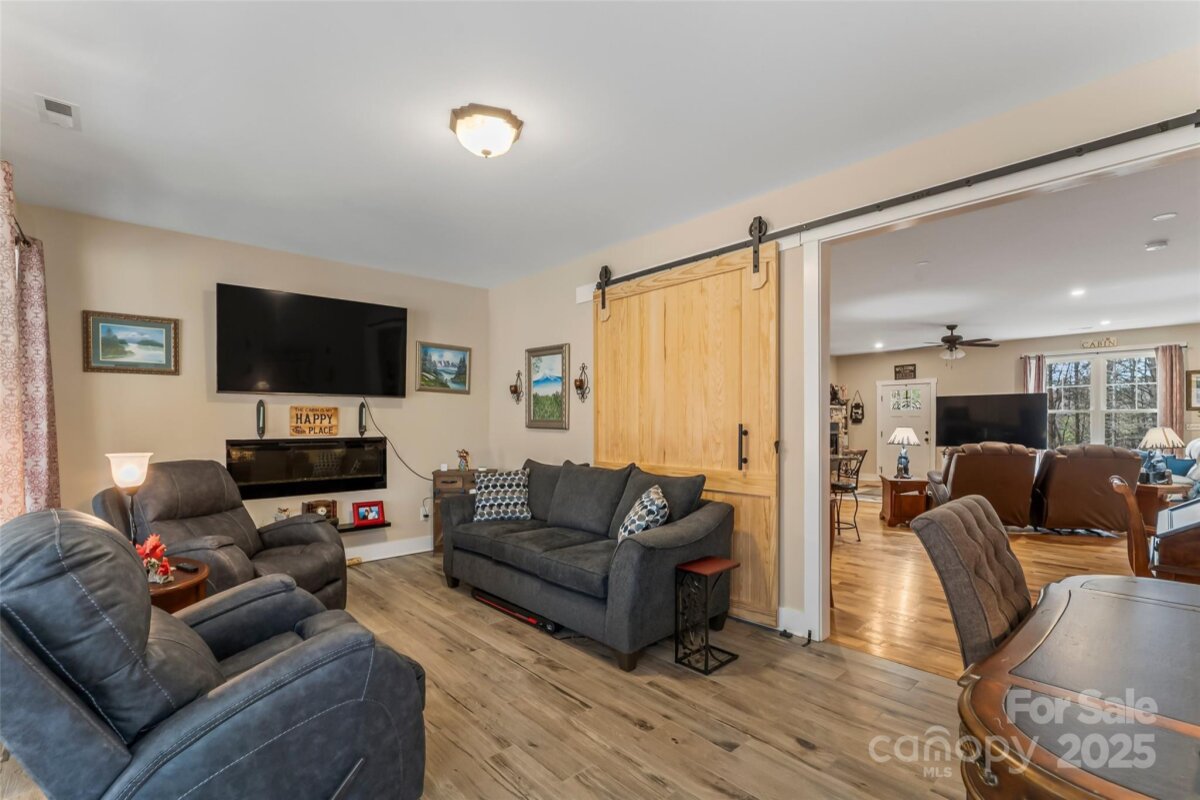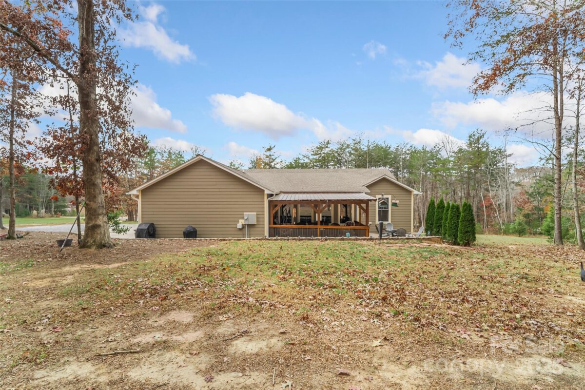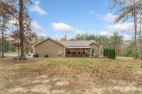 Built in 2021, this custom-crafted, single-level home was designed for comfort, style, and easy living. Step inside to a bright open floor plan with a spacious living room, propane stone fireplace, and hardwood floors that add warmth and character. The kitchen steals the show with granite countertops, a bar for casual dining, and a large pantry ready for all your favorites. A coffee bar and extra cabinetry make the kitchen even more functional, while the laundry and mudroom, conveniently located off the garage, flow directly into the kitchen. The split-bedroom layout keeps the primary suite private, featuring a large walk-in closet and double vanity bath. Lovely sunroom with custom barn doors and an electric fireplace offers the perfect spot for morning coffee or evening unwind time. Outside, enjoy a covered front porch, covered patio, a private tree-lined drive, and a peaceful backyard made for bird watching, fire pit nights, and quiet mornings. There’s also a large outbuilding, extra parking, and an attached two-car garage for convenience. Set on 1.29 acres in a beautiful rural setting, this home delivers space, comfort, and privacy with no HOA!