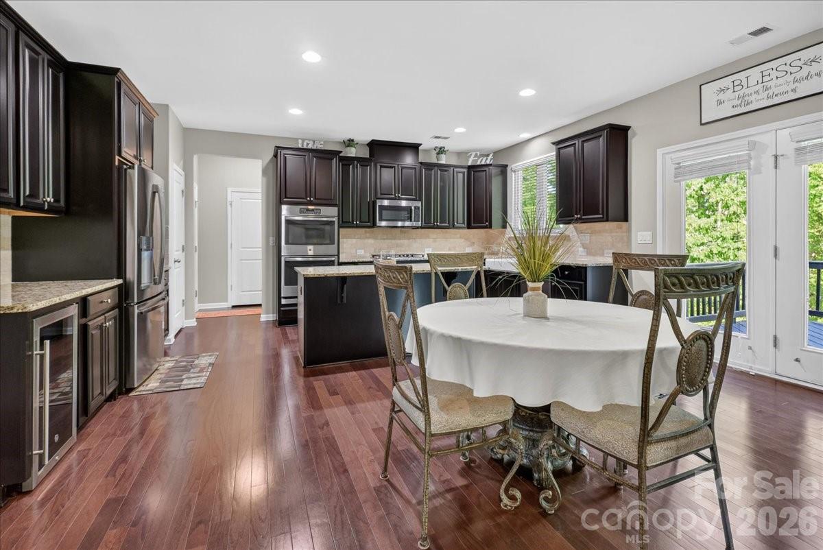 Some homes check boxes. This one rewrites the checklist entirely. Tucked at the end of a quiet cul-de-sac in Concord's prestigious Hearthwood community, 5249 Kindling Place is the kind of home that stops you in the driveway and doesn't let go. Over 5,000 meticulously maintained square feet across three finished levels, a 3-car garage, and a daylight walk-out basement — all sitting on just over an acre of wooded privacy. Every level has been thoughtfully upgraded and is ready to impress. Step through the front door and look up — soaring cathedral ceilings crown the foyer and two-story great room, where a gas log fireplace commands the space with a presence you feel before you even sit down. The chef's kitchen is built to perform: gas cooktop, double wall ovens, a sprawling island, and premium appliances that make cooking feel less like a chore and more like an event. Hardwood floors, French doors, and insulated windows run throughout. A dedicated main-level office with floor-to-ceiling built-ins and a main-level bedroom with a built-in Murphy bed — perfect as a guest room or second office — round out a main floor that is as functional as it is beautiful. The primary suite isn't just a retreat — it's a lifestyle upgrade. Five closets, including two oversized walk-ins and three additional walk-ins, deliver a storage luxury virtually unmatched at any price point. A spa-caliber bath with soaking tub and a private sitting room complete a suite that genuinely competes with the finest this market has to offer. The upper level and fully finished walk-out basement offer the kind of flexibility most homes simply can't match. Media room, home gym, guest accommodations, game day headquarters — whatever your life looks like, there's room for it here. Outside, the rear deck has been completely transformed — structurally reinforced, professionally refinished, stained, painted, and weather-sealed to like-new condition. The surrounding landscaping has been freshened and manicured to match. This is not a deck you'll need to touch for years. It's one you'll want to show off from day one. Additional upgrades include: Well pump replaced in 2024 with brand new high-performance equipment All three HVAC systems professionally serviced and maintained annually Epoxy-coated garage floor Full-yard irrigation fed by a dedicated well Rocky River Elementary is half a mile away. Concord Mills, major interstate access, and the full Charlotte metro are all minutes from your door. The community features a pool, playground, and sidewalks throughout — perfect for those evening walks at dusk. Five bedrooms. Five closets in the primary alone. Over 5,000 square feet with a finished basement. One opportunity. Don't let someone else take the keys — book your showing now.