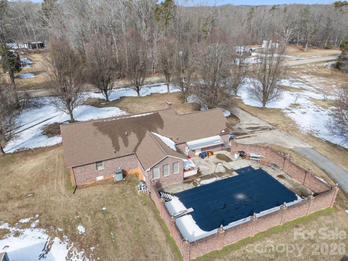 Charming brick ranch offering 3 bedrooms and 2 baths. Enjoy a spacious living room highlighted by a large custom stone fireplace, plus a bright sunroom overlooking the pool perfect for relaxing. Large primary suite includes big walk-in closet, dual vanity with separate shower room. The home also features a detached workshop with a two-bay garage—ideal for hobbies, storage, or extra parking. A rare find situated on a generous 2.6 deeded-acre country lot with an inground pool (needs liner), RV carport, this property offers plenty of space and privacy while still being conveniently located to Gold Hill and Rockwell, NC.
