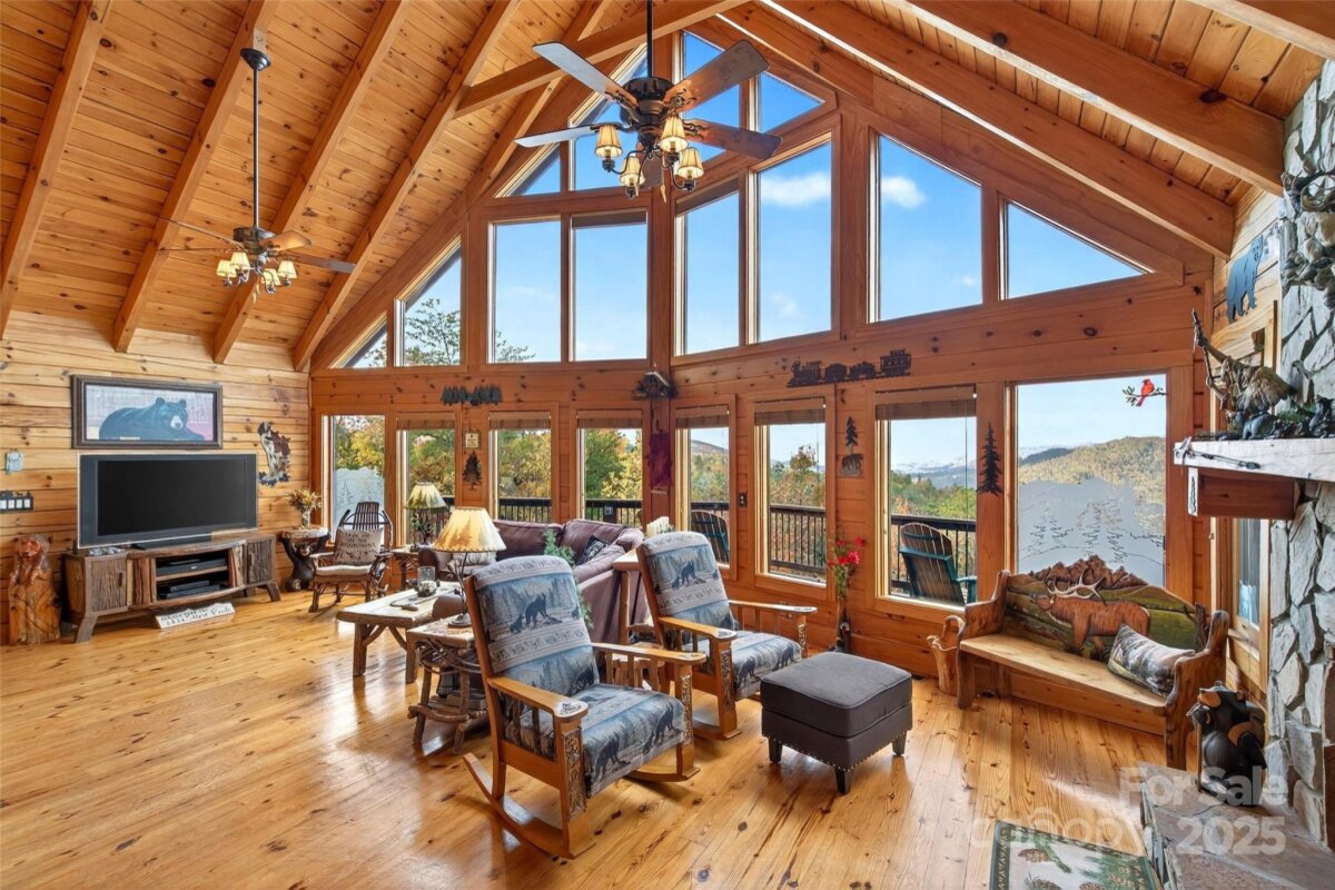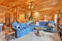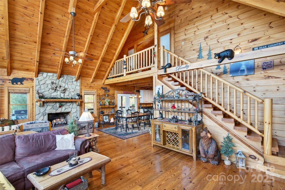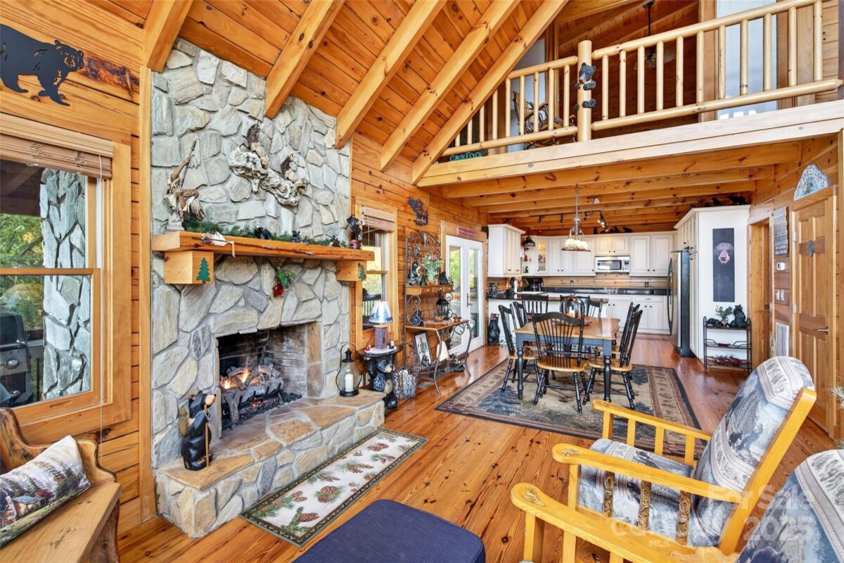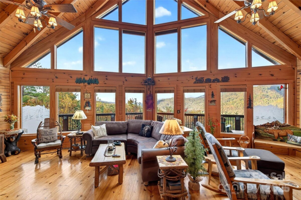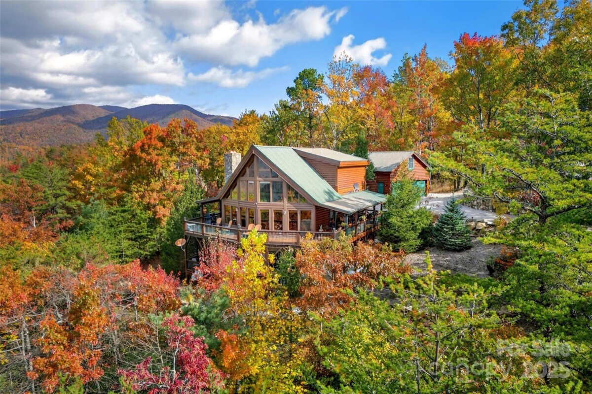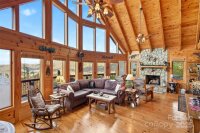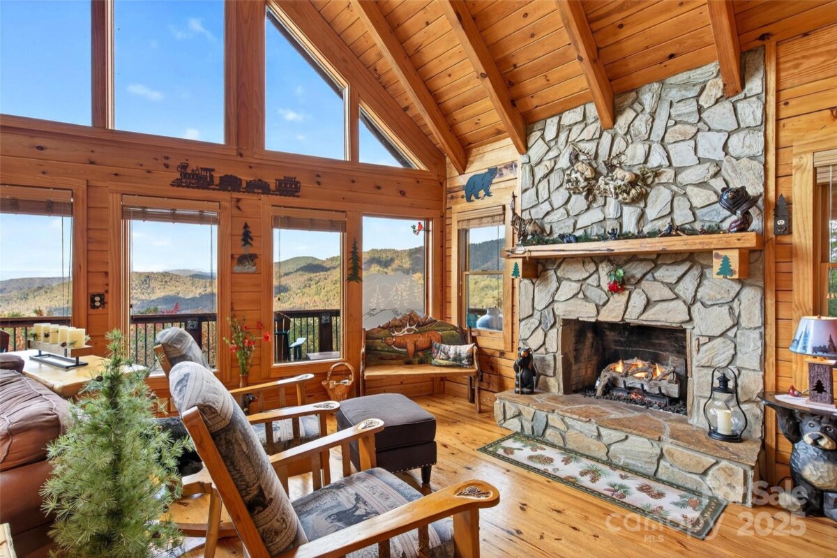 Immaculate and fully furnished, this three level log cabin sits on 3.5 private acres and offers one of the most breathtaking long range mountain views in Western North Carolina. With three bedrooms (two bedroom septic permit) and three full bathrooms, the open concept layout features soaring cathedral ceilings and abundant natural light. The home is being sold completely furnished, including all interior and exterior furniture, wall décor, and kitchenware, making it truly move in ready or ideal for immediate rental income. The lower level offers flexible use as a private apartment or game room, while two gas fireplaces can be converted to wood burning for added rustic charm. A detached two car garage and horseshoe driveway provide easy access, and the paved road from the gated entrance ensures year round convenience. The west facing wraparound decks, both covered and open air, are perfect for enjoying sunsets over Honeycutt Mountain and the iconic Black Mountains. This property also offers expansion potential, with room to build two additional homes, ideal for creating a multi residence family retreat or investment opportunity. Lovingly maintained by the original owner and used only part time, the home has served as a cherished gathering place for family and friends. Located just 15 minutes from Linville Falls, the Blue Ridge Parkway, Linville Falls Winery, a local general store and the Linville Gorge Wilderness, this property is perfectly positioned for outdoor adventure. Lake James is just 25 minutes away, and ski resorts are within a 40 minute drive. This is a rare opportunity to own a turnkey mountain retreat with unmatched views, privacy, and potential.