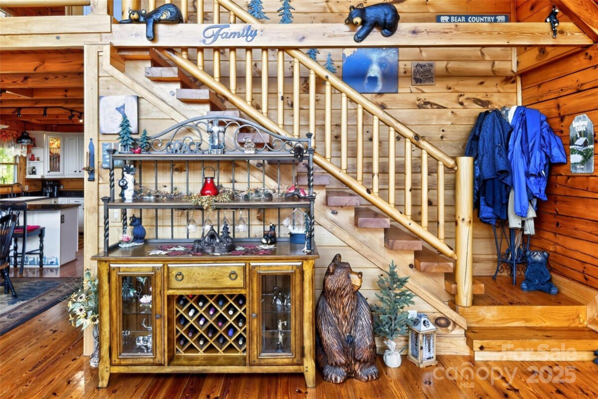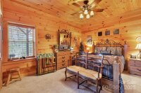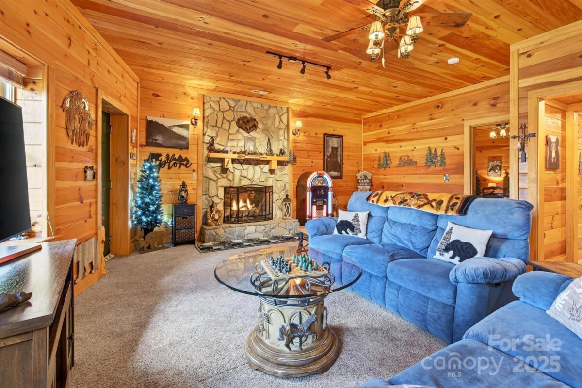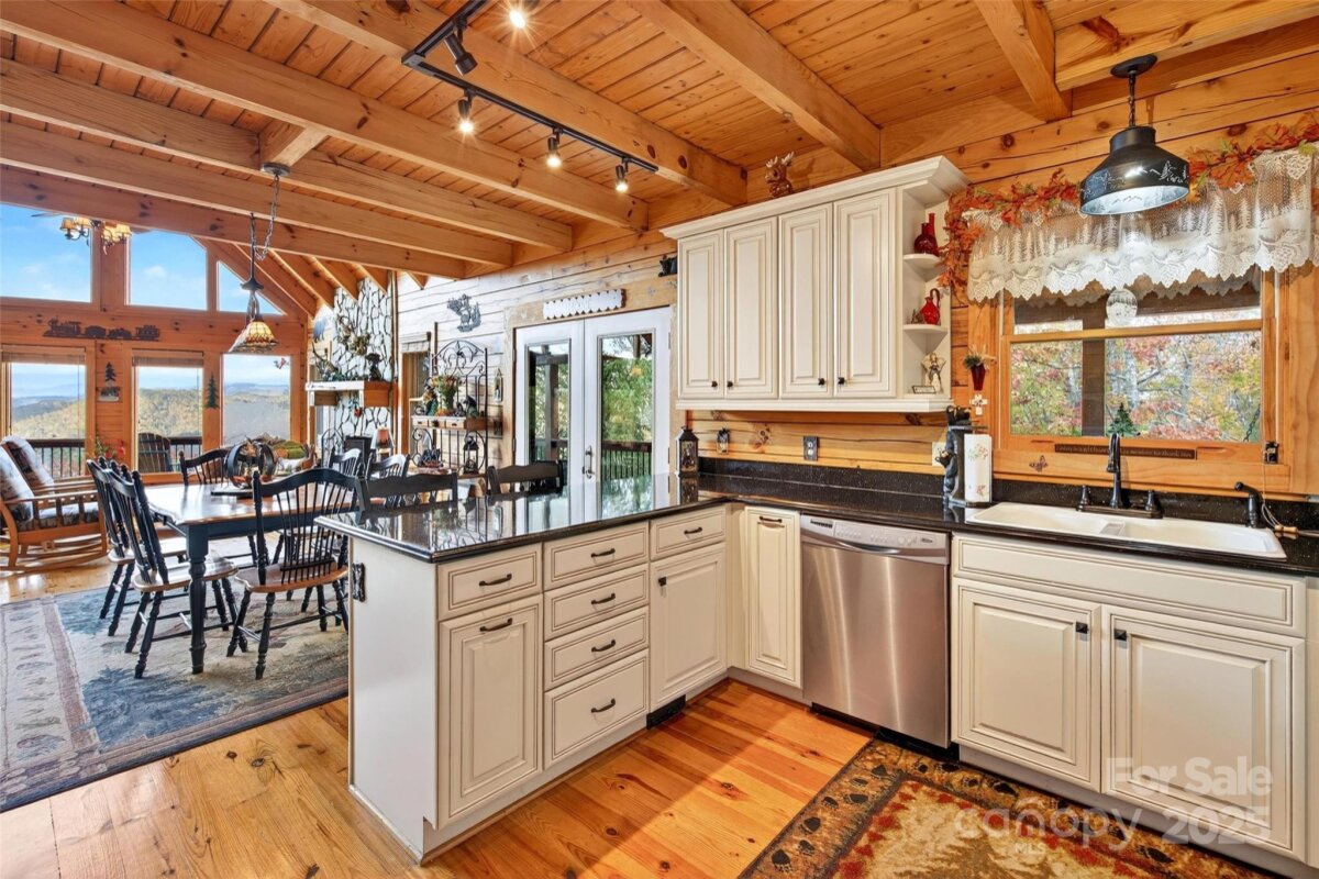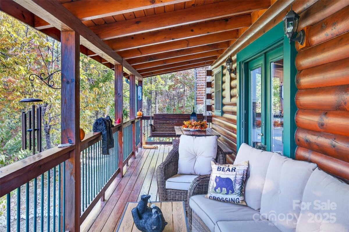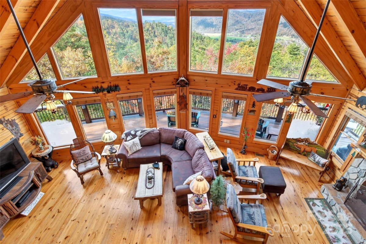 Immaculate and fully furnished, this three level log cabin sits on 3.5 private acres and offers one of the most breathtaking long range mountain views in Western North Carolina. With three bedrooms (two bedroom septic permit) and three full bathrooms, the open concept layout features soaring cathedral ceilings and abundant natural light. The home is being sold completely furnished, including all interior and exterior furniture, wall décor, and kitchenware, making it truly move in ready or ideal for immediate rental income. The lower level offers flexible use as a private apartment or game room, while two gas fireplaces can be converted to wood burning for added rustic charm. A detached two car garage and horseshoe driveway provide easy access, and the paved road from the gated entrance ensures year round convenience. The west facing wraparound decks, both covered and open air, are perfect for enjoying sunsets over Honeycutt Mountain and the iconic Black Mountains. This property also offers expansion potential, with room to build two additional homes, ideal for creating a multi residence family retreat or investment opportunity. Lovingly maintained by the original owner and used only part time, the home has served as a cherished gathering place for family and friends. Located just 15 minutes from Linville Falls, the Blue Ridge Parkway, Linville Falls Winery, a local general store and the Linville Gorge Wilderness, this property is perfectly positioned for outdoor adventure. Lake James is just 25 minutes away, and ski resorts are within a 40 minute drive. This is a rare opportunity to own a turnkey mountain retreat with unmatched views, privacy, and potential.