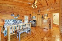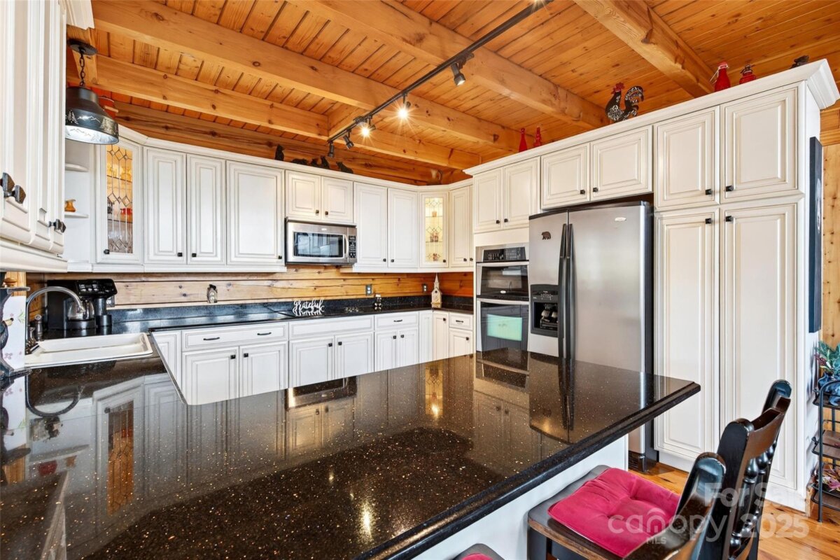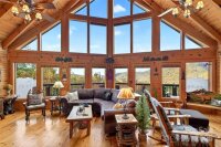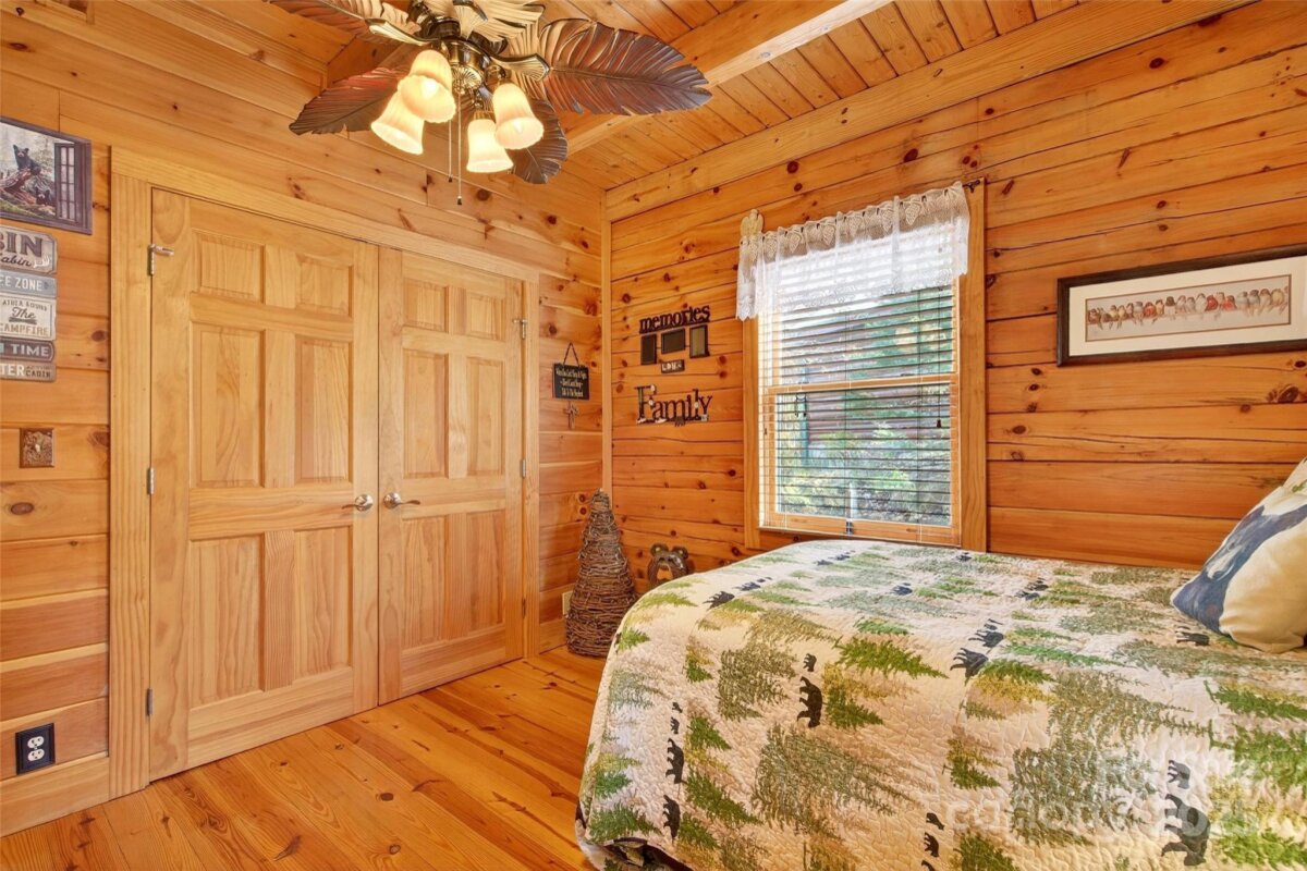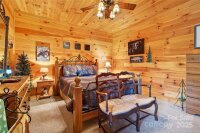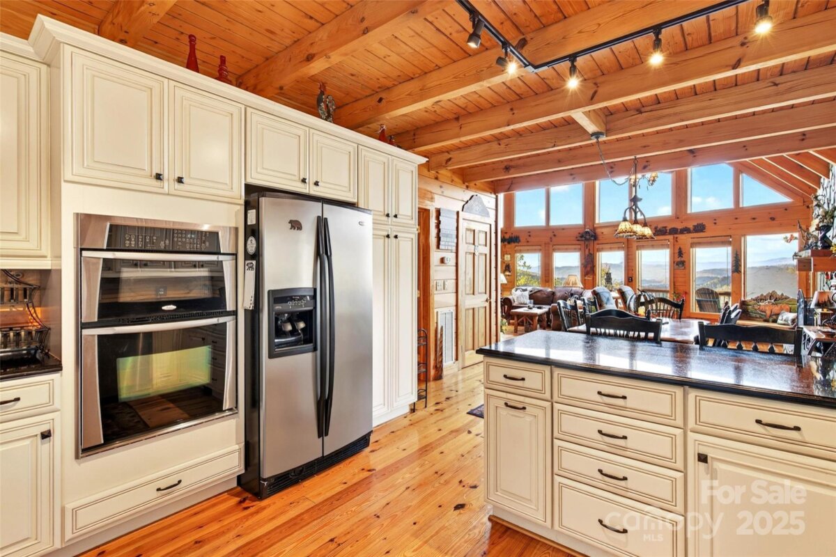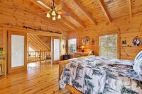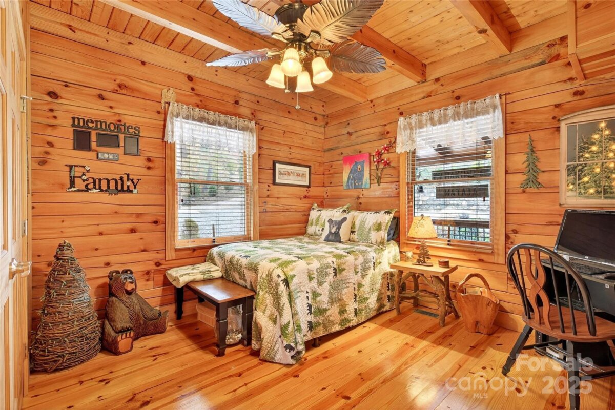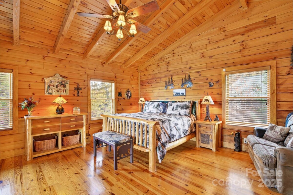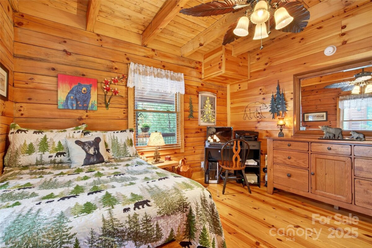 Immaculate and fully furnished, this three level log cabin sits on 3.5 private acres and offers one of the most breathtaking long range mountain views in Western North Carolina. With three bedrooms (two bedroom septic permit) and three full bathrooms, the open concept layout features soaring cathedral ceilings and abundant natural light. The home is being sold completely furnished, including all interior and exterior furniture, wall décor, and kitchenware, making it truly move in ready or ideal for immediate rental income. The lower level offers flexible use as a private apartment or game room, while two gas fireplaces can be converted to wood burning for added rustic charm. A detached two car garage and horseshoe driveway provide easy access, and the paved road from the gated entrance ensures year round convenience. The west facing wraparound decks, both covered and open air, are perfect for enjoying sunsets over Honeycutt Mountain and the iconic Black Mountains. This property also offers expansion potential, with room to build two additional homes, ideal for creating a multi residence family retreat or investment opportunity. Lovingly maintained by the original owner and used only part time, the home has served as a cherished gathering place for family and friends. Located just 15 minutes from Linville Falls, the Blue Ridge Parkway, Linville Falls Winery, a local general store and the Linville Gorge Wilderness, this property is perfectly positioned for outdoor adventure. Lake James is just 25 minutes away, and ski resorts are within a 40 minute drive. This is a rare opportunity to own a turnkey mountain retreat with unmatched views, privacy, and potential.
