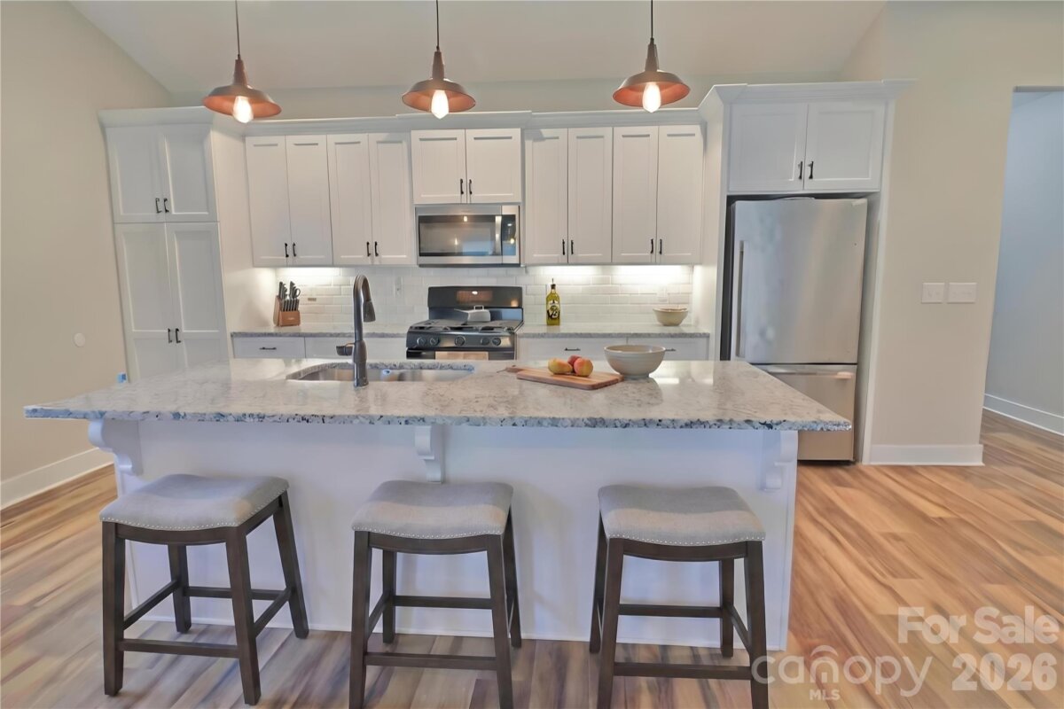 Welcome to this beautifully located home, ideally situated near the attractions of Moss Lake, Kings Mountain, Shelby, Boiling Springs, and Forest City. With easy access to Business 74 and the upcoming bypass, you can reach Asheville or Charlotte in no time. For those who travel frequently, both Shelby Airport and Charlotte Douglas International Airport are conveniently nearby. This home offers proximity to a variety of dining, shopping, and recreational options, including Crowders Mountain, Gateway Trail, Kings Mountain State Park, Carolina Harmony Trail, and First Broad River Trail. Educational institutions, healthcare facilities, and entertainment venues like movie theaters, Kings Mountain's Patriot Park, Don Gibson Theatre, and Joy Theatre are all within reach. Step inside this remarkable home, featuring a charming rocking chair front porch and installed shades that can retract up or down for your convenience. The front door opens to a welcoming foyer and hallway that leads into an open-concept living space, complete with a spacious living room, dining room, and kitchen. The kitchen boasts an island with seating for barstools and stunning vaulted ceilings that enhance the airy feel of the home. The second and third bedrooms have double door openings to the closet spaces and are located in the front space of the home and the primary in the back giving you a split bedroom floorplan feel. A sliding glass door invites you to a serene back deck, which is glassed in and serves as a gateway to the tranquil backyard. The expansive yard includes an outbuilding equipped with electricity, shelves, and an additional space at the back, perfect for storage or hobbies. Set on a generous lot of 0.91 acres, the property features an immaculate crawlspace with a vapor barrier, providing ample storage options. You will also find four recently planted blueberry bushes that will be ready for its 3rd harvest along with Cyprus trees for added privacy. Inside, you’ll find three bedrooms and two full bathrooms, including a primary suite with a walk-in closet. The home is adorned with LVP flooring, granite countertops, and a convenient mudroom/entryway bench that adds to its charm. The laundry room being a separate space enhances functionality, while the two-car garage includes a storage closet that expands the length of the back of the garage with two separate door openings that maximizes parking space. This home truly has it all! Come see it for yourself and discover why it’s the perfect place to call home.