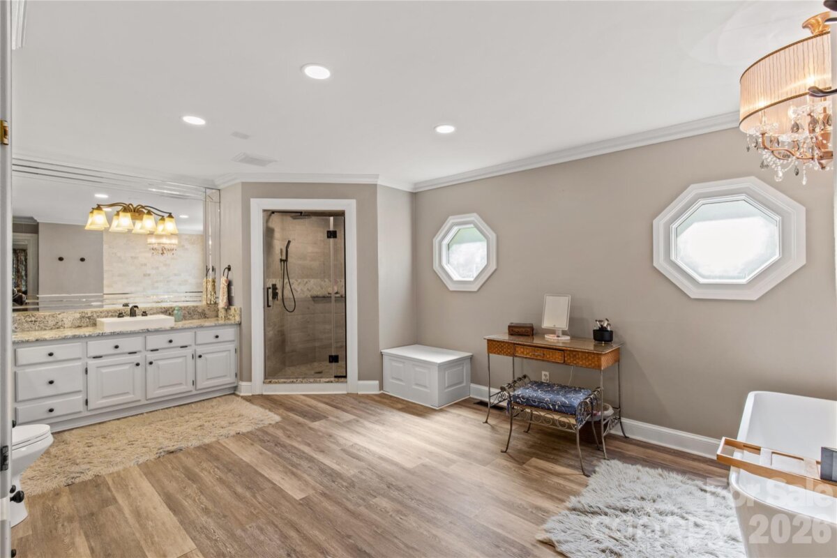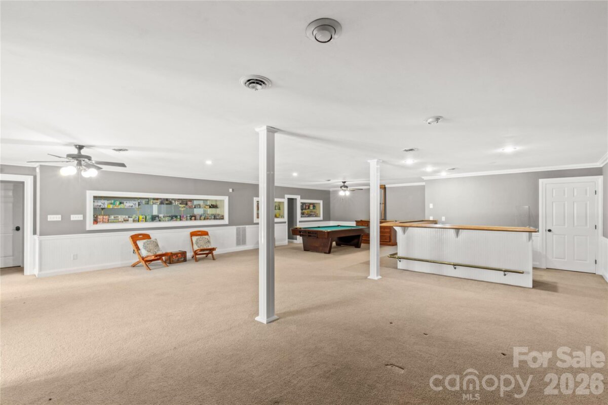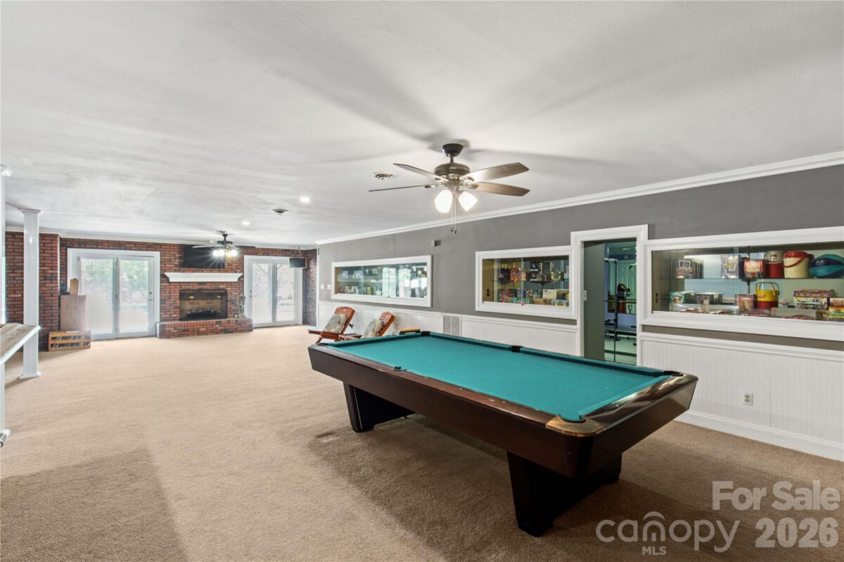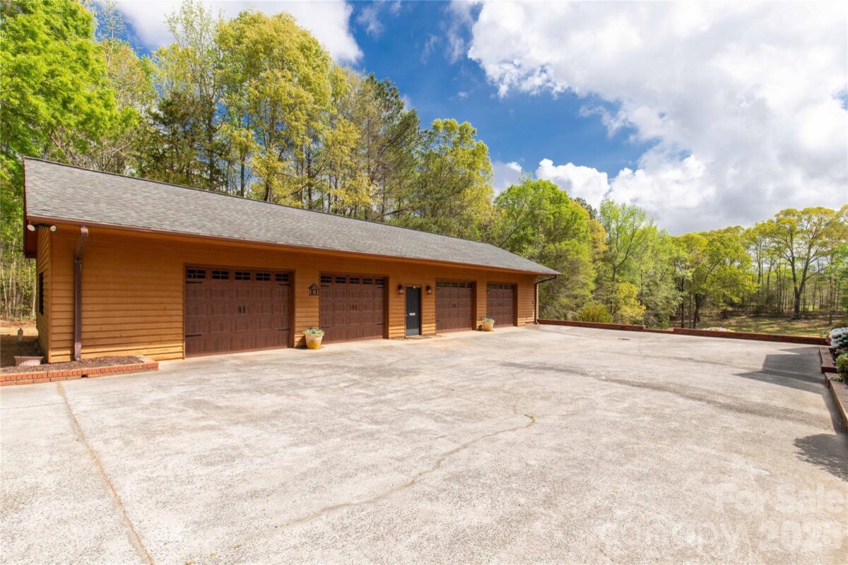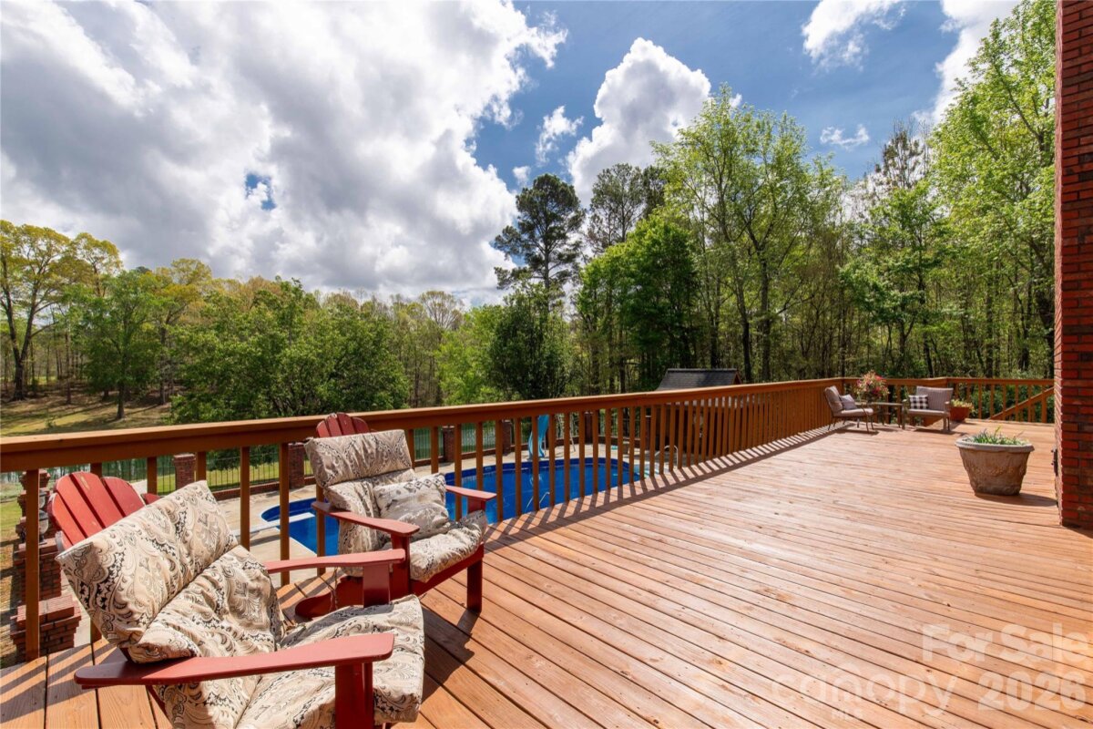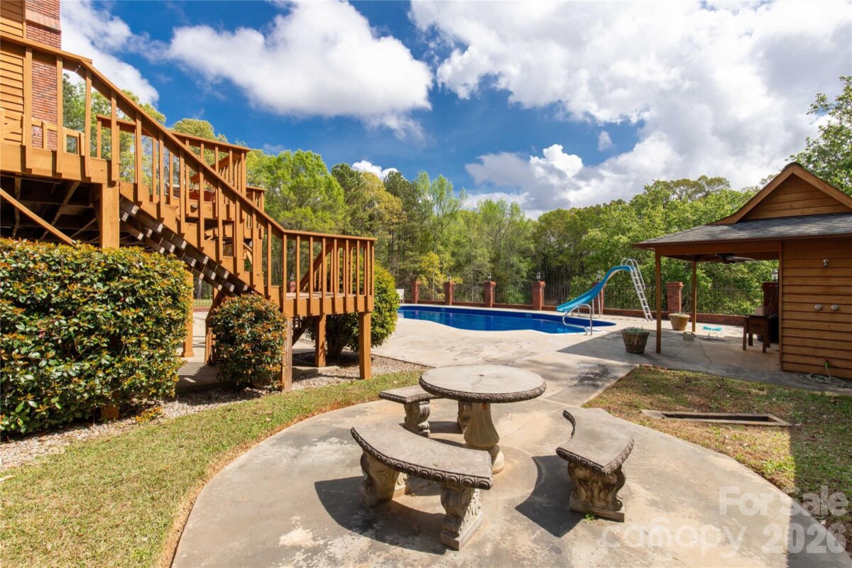 Welcome to a truly rare luxury estate set on over 3 acres, offering more than 5,600 heated square feet designed for those who crave space, privacy, and a resort-style lifestyle. Ideally located just minutes from Charlotte, this exceptional property offers the perfect balance of convenience and seclusion, creating a true private retreat. Tucked into a peaceful setting, this custom wood-sided home makes an unforgettable first impression with its long driveway, manicured grounds, and inviting wraparound front porch—the perfect place to slow down and take in the surroundings, where it’s not uncommon to spot wild turkeys wandering through the backyard. Inside, the home opens to a stunning two-story great room anchored by a statement fireplace and framed by double French doors that lead to an expansive back deck. From here, the view unfolds into a private outdoor oasis featuring a sparkling in-ground pool with a diving board and slide, along with a stocked pond that enhances the serene, getaway-like atmosphere. The main level is thoughtfully designed for both comfort and flexibility, featuring a spacious primary suite that sets a new standard for relaxation with its spa-like bath, complete with a soaking tub, dual granite vanities, built-ins, a large walk-in ceramic shower, and the added luxury of two walk-in closets. The main floor also includes a well-appointed kitchen and a flexible bedroom or office space, making it ideal for remote work or guests. Upstairs, two additional bedrooms, a full bath, and a loft overlook the pool and pond, creating a picturesque setting for a second living area, reading nook, or media space. The walk-out basement is perfectly suited for extended living or entertaining, offering an expansive recreation room with built-in trophy and display cases, a wet bar, billiards area, fireplace, half bath, and a dedicated workout room. With direct access to the pool deck, this level provides excellent potential for multi-generational living, guest quarters, or a private retreat within the home. Outdoors, the property continues to impress with a large back deck, a beautifully maintained fenced yard, and carefully curated landscaping accented by brick columns, hardscaping, and wrought iron details. Additional structures include a pool house, a four-bay detached garage, and dog kennels, providing both functionality and flexibility for a variety of lifestyles. With walk-in attics, custom built-ins throughout, and every detail designed with intention, this home offers the perfect blend of luxury, space, and versatility. For those seeking a private estate with acreage, a pool, a pond, and room to accommodate multi-generational living—all within minutes of Charlotte—this is a rare opportunity to own a property that truly feels like a destination.