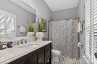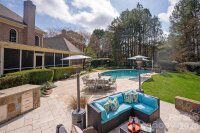 Nestled on a charming, corner cul-de-sac lot in the heart of Charlotte, this all-brick residence combines timeless architecture, elegance, comfort, and a spectacular RESORT-STYLE outdoor living space. The expansive, fully fenced, outdoor oasis features a SALTWATER POOL, built-in fireplace, gas grill, serving area, extended patio, and spacious screened-in porch, which is the perfect setting for entertaining, or quiet evenings outdoors. An inviting foyer with soaring ceilings and TWO-STORY family room anchors the main living space, while rich HARDWOOD FLOORS throughout the first floor add warmth and sophistication. Convenient main floor office with beautifully designed CUSTOM glass doors creates an inviting, yet private space, and is situated across from the formal dining room. A chef's dream kitchen featuring granite countertops, farmhouse sink, five burner gas stove, pot filler, and custom hood is beautifully designed and functional. MAIN floor owner's retreat is a private sanctuary complete with a fully RENOVATED spa-inspired bath featuring a free standing soaking tub, walk-in shower, dual vanities, endless counter space, and Japanese toilet. Second floor with three spacious secondary bedrooms each with coordinating bathrooms, walk-in closets, and plenty of storage! Providence Crossing is zoned to highly sought after Charlotte schools and just minutes away from premier shopping and dining in Waverly and Blakeney. An EXQUISITE home offering LUXURY LIVING, convenience to Charlotte amenities, and an outdoor entertaining space the new owners will LOVE! Additional upgrades include: NEW ROOF 2024-encapsulated crawlspace -updated half bath-professional landscaping- outdoor shed-irrigation-custom shutters - and leaf guard for gutters.