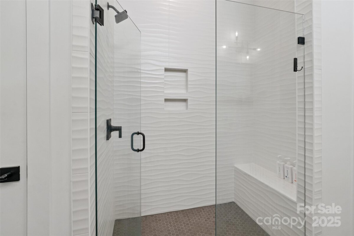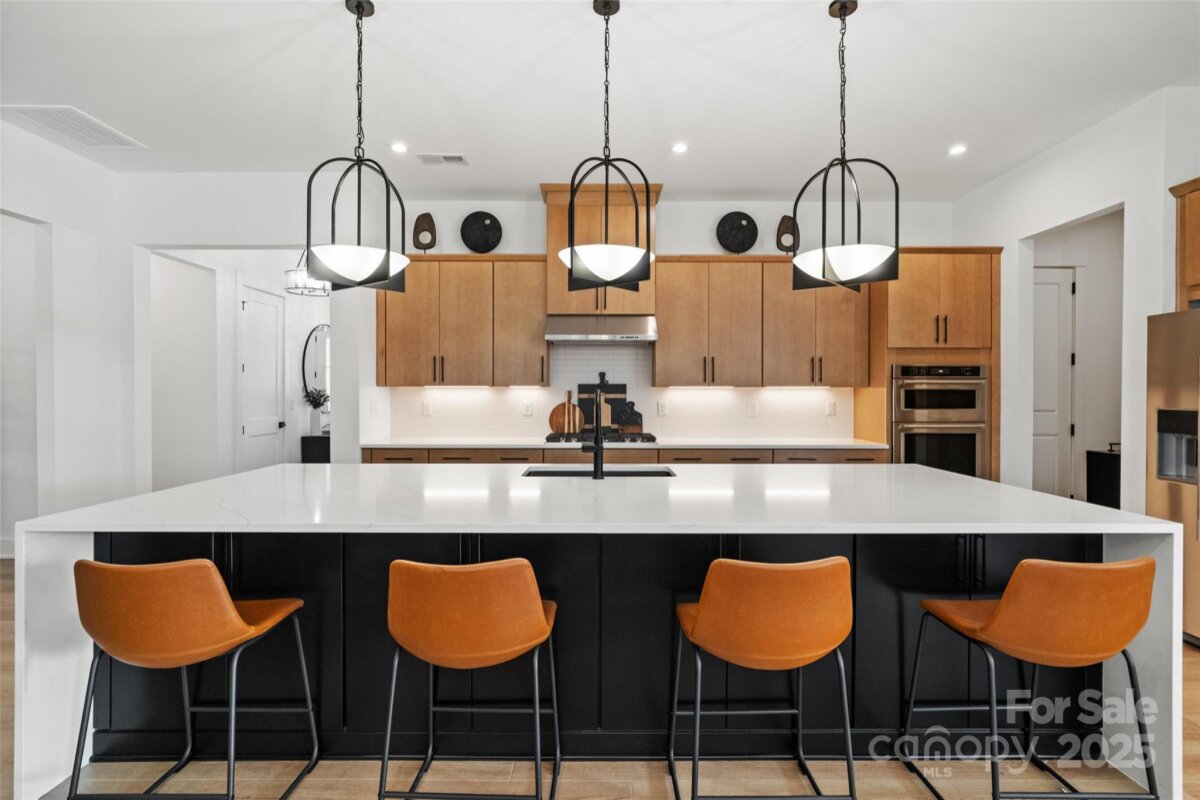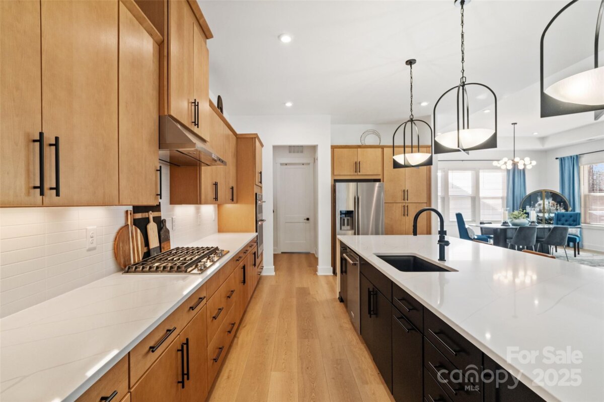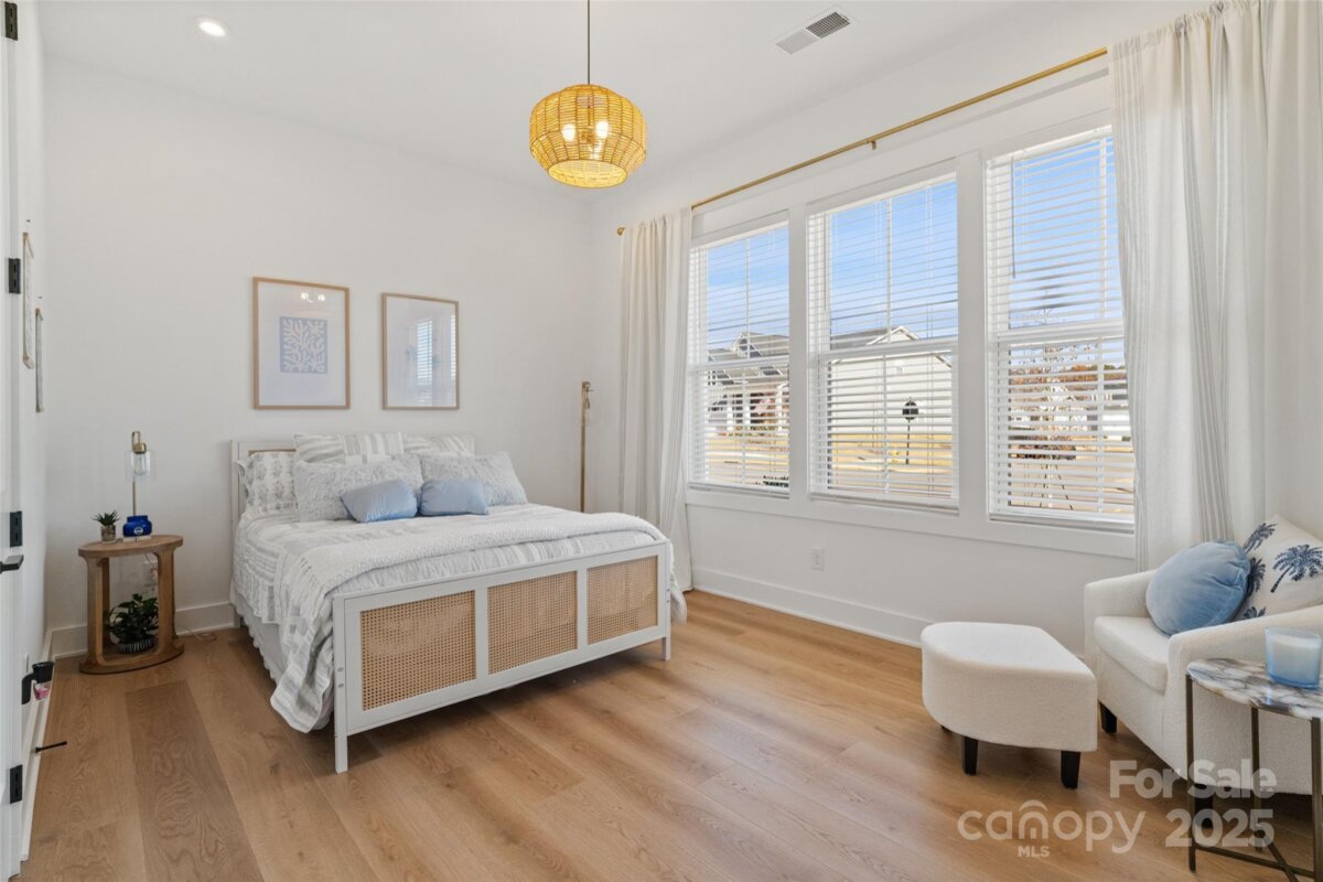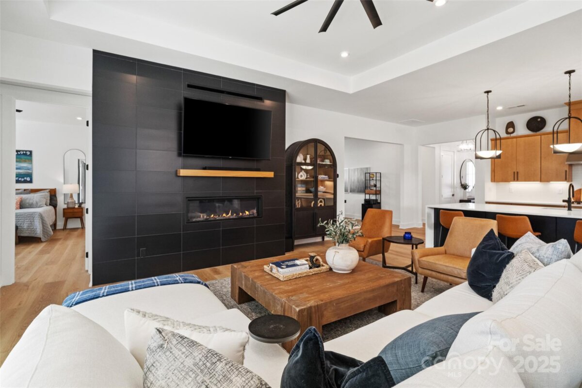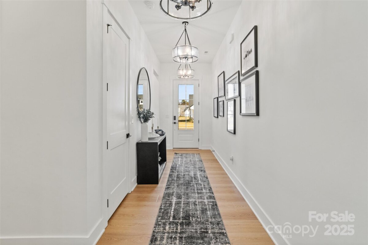 Waterfront 3 bed, 2.5 bath, 2648sf, newly constructed dream home with 3 car garage on an oversized Waterstone Collection lot in Griffith Lakes! Heavily and tastefully optioned “Ronelle plan†2025 build with a light and bright open floorplan centered around a massive chef’s kitchen/living room combo featuring high ceilings, custom lighting, and luxury vinyl throughout. KitchenAid stainless appliances, upgraded pendants above a gigantic 12’ quartz waterfall island overlooking the casual dining and family rooms featuring a coffered ceiling, matte back floor to ceiling tiled linear gas fireplace and multi stacked slider open to the covered patio with spectacular nature and water views. Elongated entryway separates guest bedrooms with connected bath, powder room and office/den.Private rear facing primary suite includes large walk-in closet, double vanity bath, separate water closet, and frameless glass enclosed, zero threshold shower with bench and wave-look origami tile to ceiling. Office, powder room and remaining split plan bedrooms/shared bath separated by elongated entryway. Convenient fully built out interior laundry room features cabinets and sink. HOA covered lawncare. Located a short walk from the soon to be completed Griffith Lakes clubhouse featuring tennis, pickleball, pool, spa, dock/access to lake and miles of hiking trails. Conveniently located across from shopping and within minutes from both Uptown Charlotte and the Lake Norman areas!