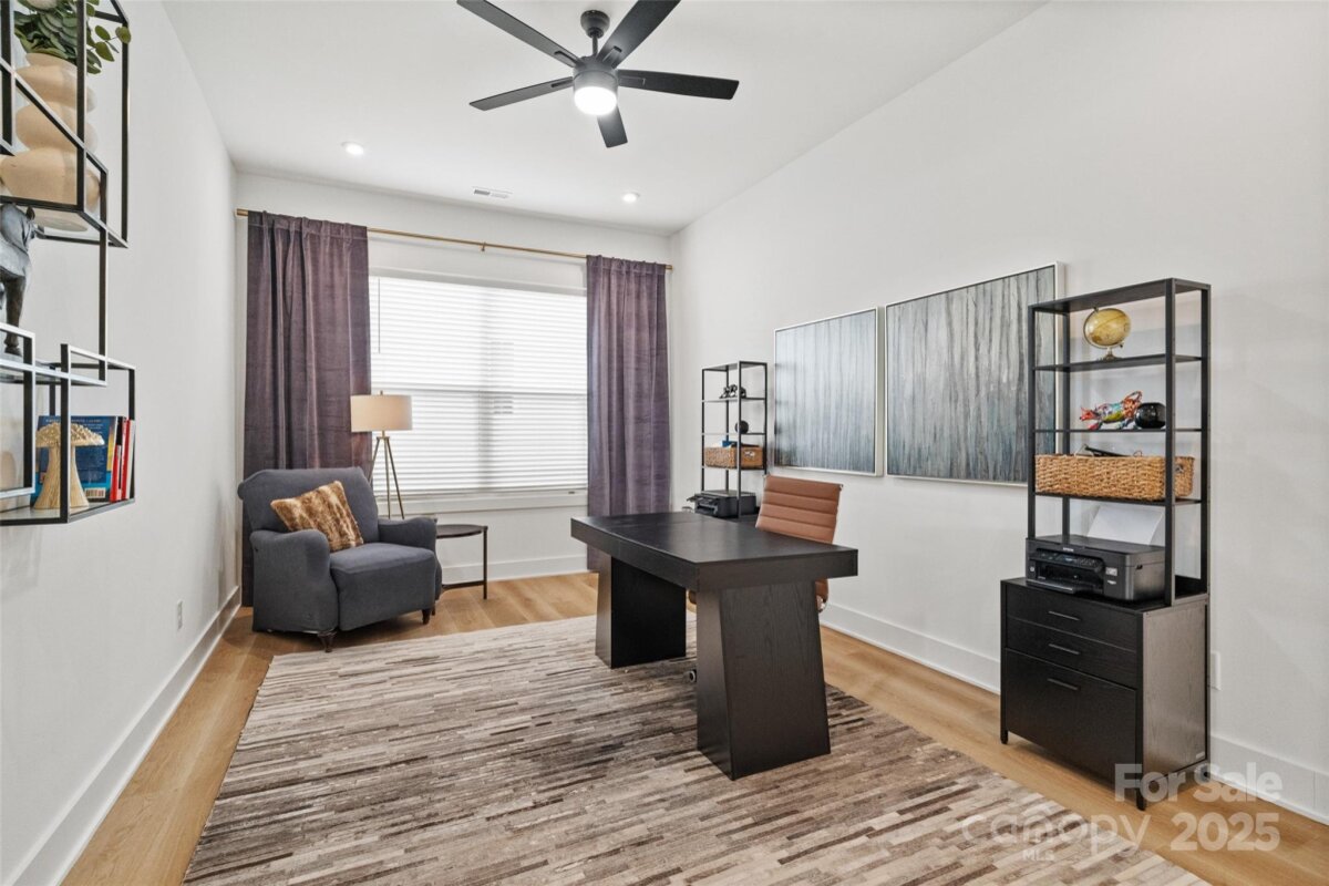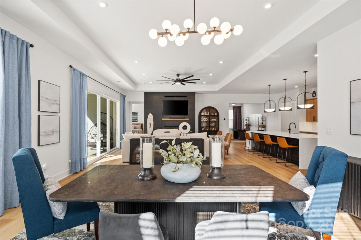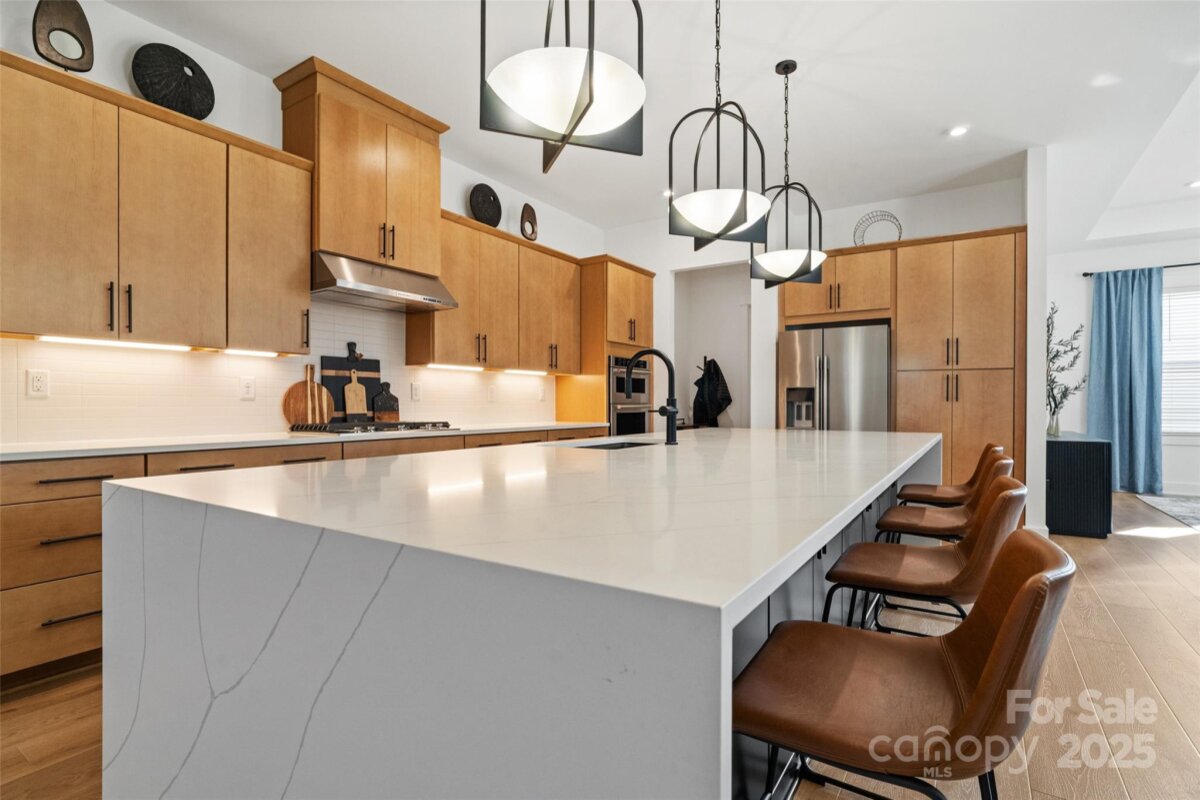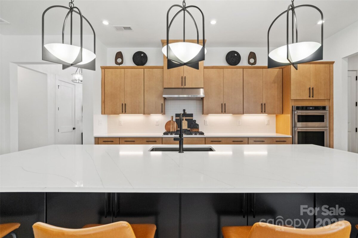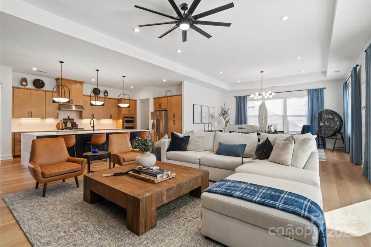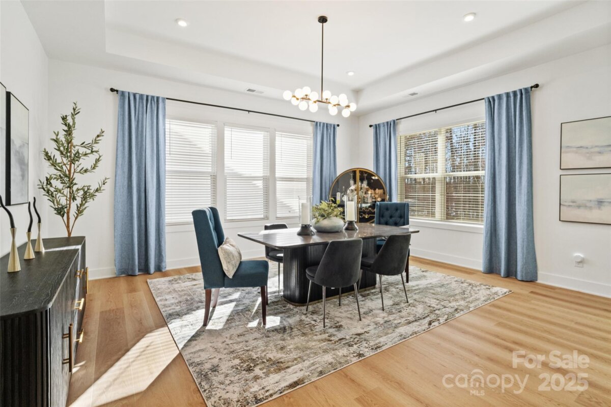 Waterfront 3 bed, 2.5 bath, 2648sf, newly constructed dream home with 3 car garage on an oversized Waterstone Collection lot in Griffith Lakes! Heavily and tastefully optioned “Ronelle plan†2025 build with a light and bright open floorplan centered around a massive chef’s kitchen/living room combo featuring high ceilings, custom lighting, and luxury vinyl throughout. KitchenAid stainless appliances, upgraded pendants above a gigantic 12’ quartz waterfall island overlooking the casual dining and family rooms featuring a coffered ceiling, matte back floor to ceiling tiled linear gas fireplace and multi stacked slider open to the covered patio with spectacular nature and water views. Elongated entryway separates guest bedrooms with connected bath, powder room and office/den.Private rear facing primary suite includes large walk-in closet, double vanity bath, separate water closet, and frameless glass enclosed, zero threshold shower with bench and wave-look origami tile to ceiling. Office, powder room and remaining split plan bedrooms/shared bath separated by elongated entryway. Convenient fully built out interior laundry room features cabinets and sink. HOA covered lawncare. Located a short walk from the soon to be completed Griffith Lakes clubhouse featuring tennis, pickleball, pool, spa, dock/access to lake and miles of hiking trails. Conveniently located across from shopping and within minutes from both Uptown Charlotte and the Lake Norman areas!