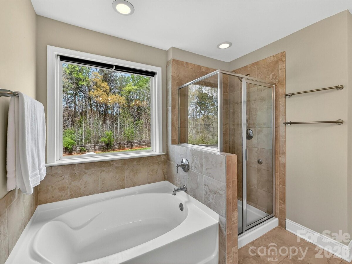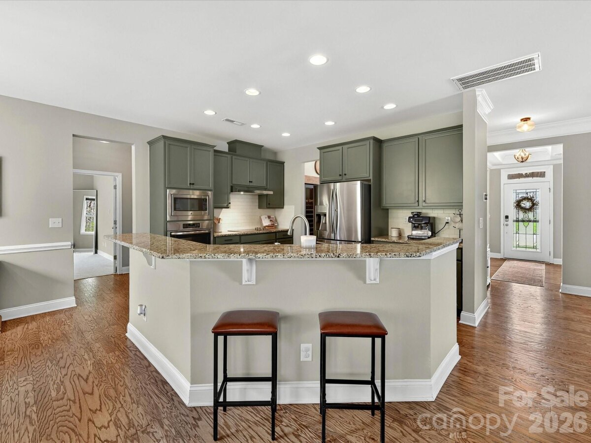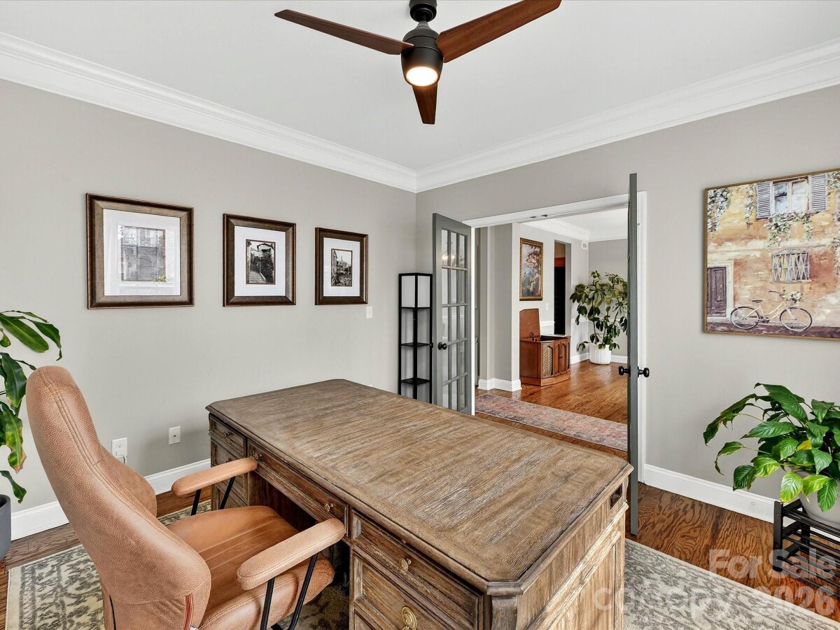 Beautifully maintained Brick front home situated on a spacious corner lot with a large fenced backyard offering privacy and room to enjoy outdoor living. Inside, the home features newly refinished hardwood floors, crown molding, and an open-concept layout designed for both everyday comfort and entertaining. The updated kitchen boasts granite countertops, stainless steel appliances, ample cabinetry, and a generous breakfast bar flowing seamlessly into the great room. Multiple living and flex spaces, including a dedicated office and bonus room, provide versatility for work, play, or relaxation. The expansive primary suite offers a tray ceiling, abundant natural light, and a luxurious ensuite bath with dual vanities, soaking tub, separate shower, and walk-in closet with custom storage. Additional bedrooms are well-sized, many with ensuite access, ideal for guests or family. Step outside to enjoy the charming paver patio with lighting—perfect for entertaining—or relax in the private backyard surrounded by mature trees. Conveniently located just minutes from Shoppes at Highland Creek and Prosperity Village Square, this home offers easy access to shopping, dining, and everyday amenities. This beautiful home is a true MUST SEE!