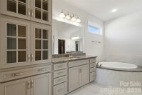 Discover effortless one-level living in the highly sought-after Tilley Manor community in Matthews, NC. Built in 2017 and meticulously maintained, this home shows like new and offers the ideal blend of modern finishes, functional design, and serene outdoor living. The open-concept floor plan is perfect for entertaining and everyday living, anchored by a gourmet kitchen featuring granite countertops, a gas cooktop, stainless steel appliances, and ample cabinetry—ideal for both casual meals and elevated entertaining. Just off the kitchen, a built-in office nook provides the perfect work-from-home setup. Unwind in the inviting living area with a gorgeous stone gas fireplace, adding warmth and charm during cooler months. Step outside to your private patio with pergola and professionally landscaped surroundings, where mornings begin with coffee and birdsong and evenings end in total relaxation. The spacious primary suite impresses with a tray ceiling, custom walk-in closet, and a spa-like primary bathroom complete with dual vanities, a soaking tub, and a large walk-in shower. The secondary bathroom has also been thoughtfully renovated, adding value and modern appeal for guests or additional household members. Additional highlights include irrigation for easy lawn care, abundant storage, and true move-in-ready condition. Located minutes from shopping, dining, and everyday conveniences, and zoned for award-winning McKee Elementary, Jay M. Robinson Middle School, and Providence High School, this home offers the best of Matthews living with comfort, style, and location all in one. Welcome home to 5306 Tilley Manor Drive—where low-maintenance luxury meets everyday ease.