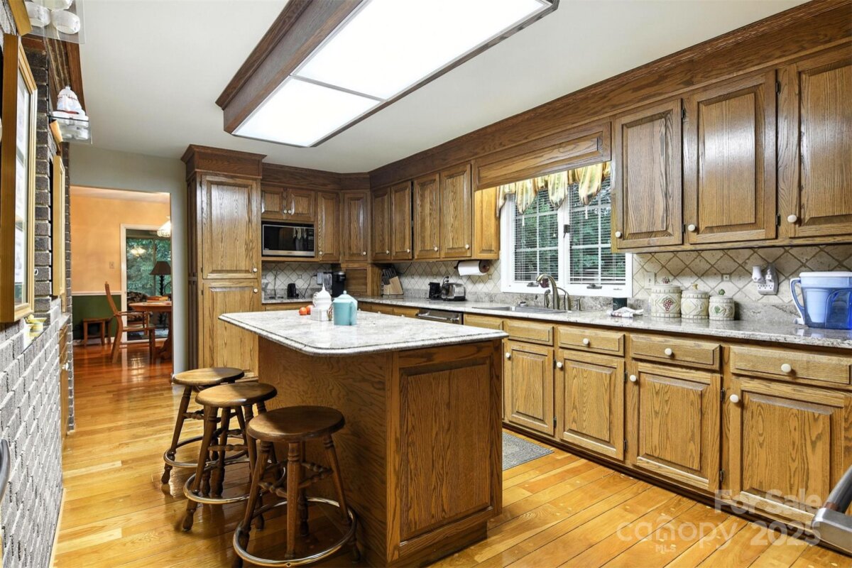 Stately and timeless custom brick ranch with full basement. Includes passive income opportunity with separate 2BR apartment with private side entrance. Spacious well built featuring two main level masters, three kitchens, sunroom, dining room, flex and storage spaces, 4 car garage, 3 laundry rooms, rear deck, covered rear patio and workshop. Large open vaulted LR welcomes you with oversized masonry fireplace. Main kitchen has solid oak cabinets, granite counters, double oven, tile backsplash and breakfast island. Dining Room has French doors to sunroom and to rear deck. Two primary bedrooms on each end, plus laundry and 3rd Bedroom/office. Basement has 2 flex spaces, Den and storage, plus full bath and laundry room and 2nd kitchen with door to covered rear patio. 2 bedroom apartment includes full kitchen and bath and LR and laundry with private side entrance with concrete patio made for dining table/umbrella. Generator is included. Great location on 5th St NW in historic district.