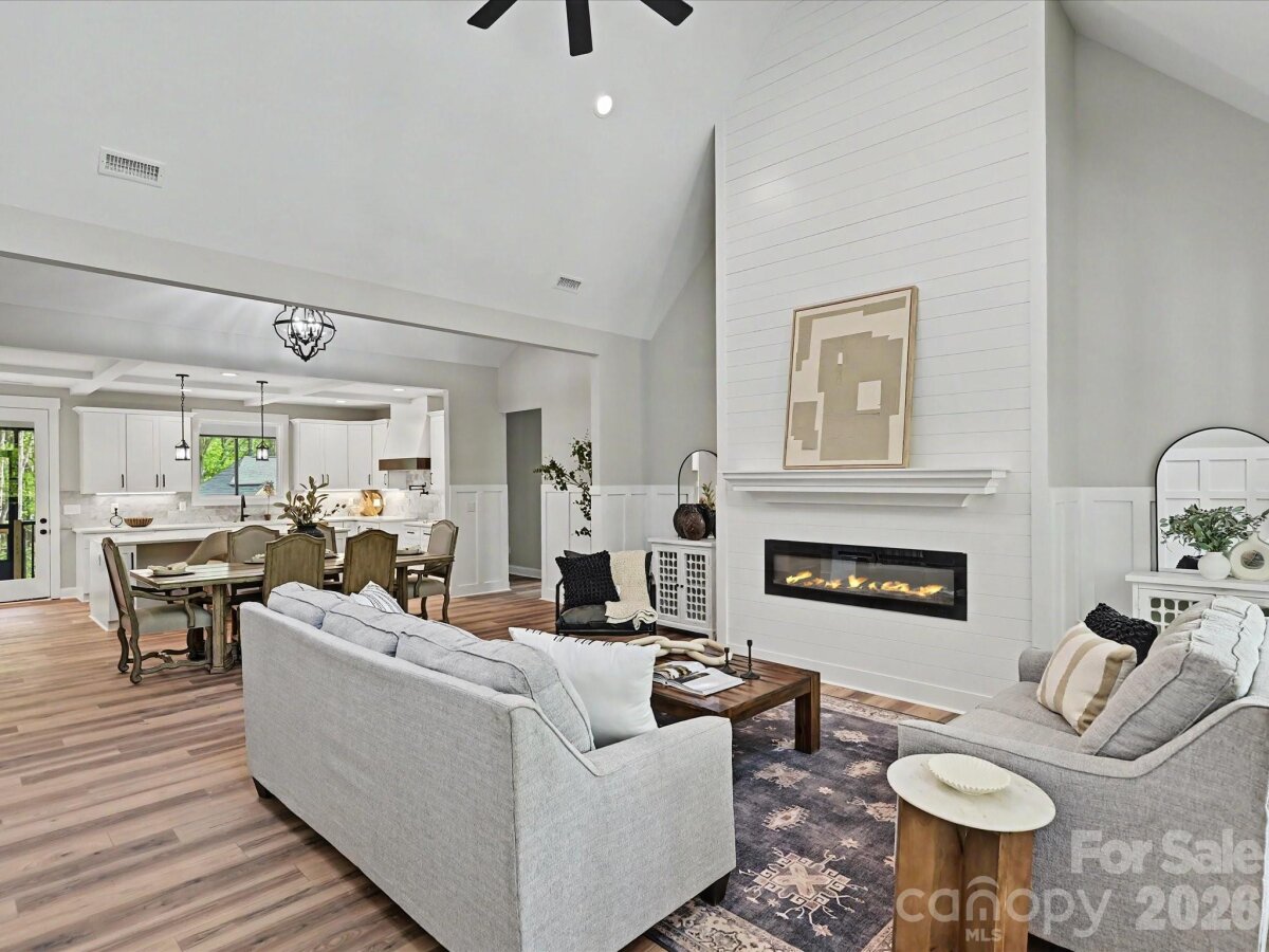 A truly rare offering in York County, this property delivers an exceptional mountain-retreat setting while backing to the protected landscape of Nanny’s Mountain Historical Park. From your backyard, enjoy ~ 2 miles of scenic trails leading to a scenic overlook with sweeping views of Lake Wylie, Kings Mountain, and even the Charlotte skyline on a clear day. Inside, the thoughtfully designed open floor plan sets this home apart. The dining area features dramatic arched ceilings, while the living room showcases upgraded trim work and custom details that add warmth and character throughout. The chef’s kitchen is a true centerpiece, anchored by a massive quartz island, timeless marble-inspired subway tile backsplash, a custom range hood, coffered-like ceiling accents, and abundant cabinetry. The spacious walk-in pantry offers incredible storage and the potential for the scullery of your dreams. The primary suite feels like a private retreat with a spa-like shower and generous space to unwind. A versatile bonus room provides flexibility for a home office, playroom, or additional lounge area. Thoughtfully constructed with quality craftsmanship, the home includes spray foam insulation for superior energy efficiency, comfort, and long-term performance. Located within the highly anticipated Clover School District, with brand-new schools scheduled for completion in time for the August 2026 school year. This home also offers easy access to Lake Wylie, the charming shops and dining of historic downtown York & Clover, and is just over 30 minutes to Uptown Charlotte—giving you the perfect balance of peaceful living with convenient access to everything the region has to offer. A truly unique home for this area, combining elevated views, and custom design! NO HOA!