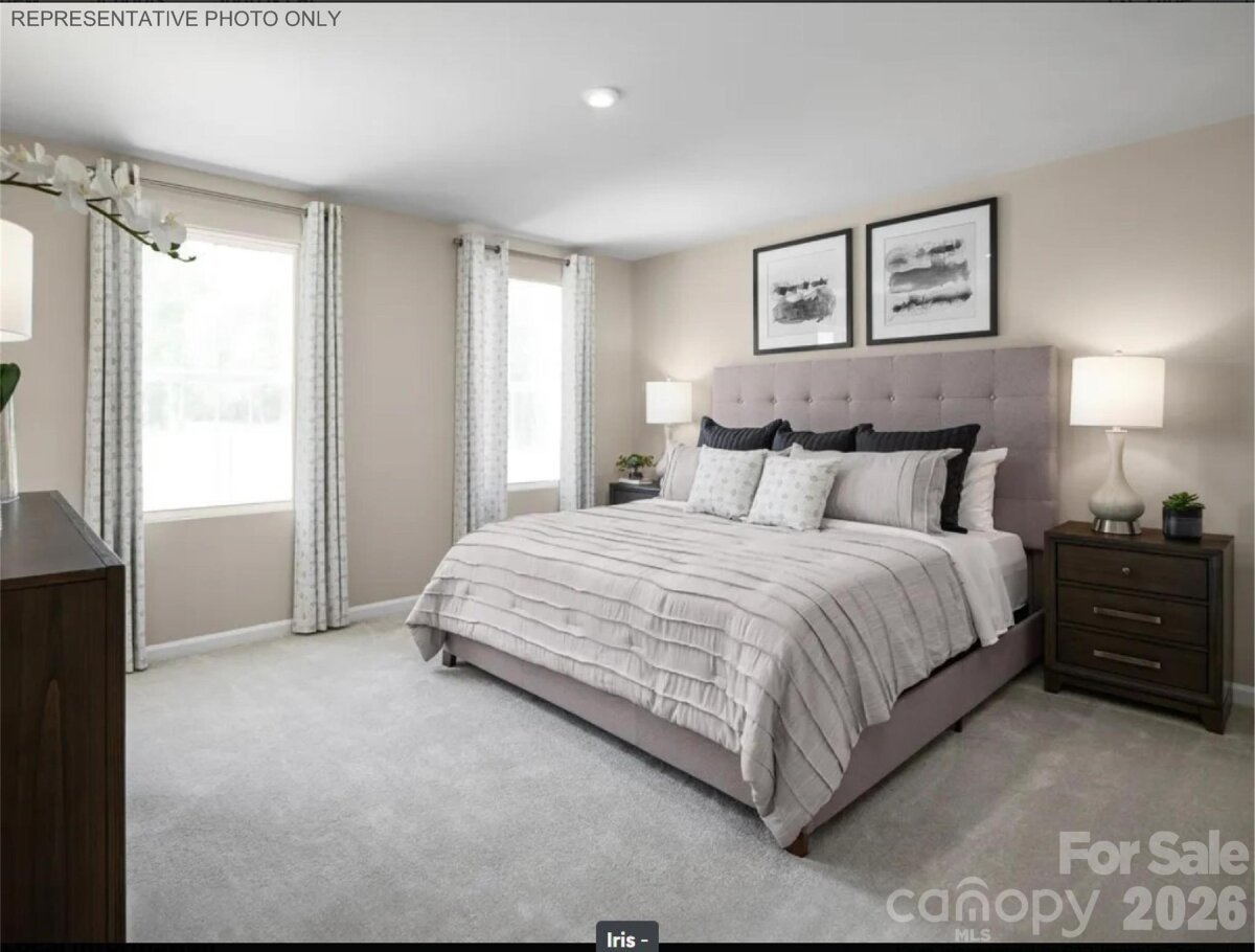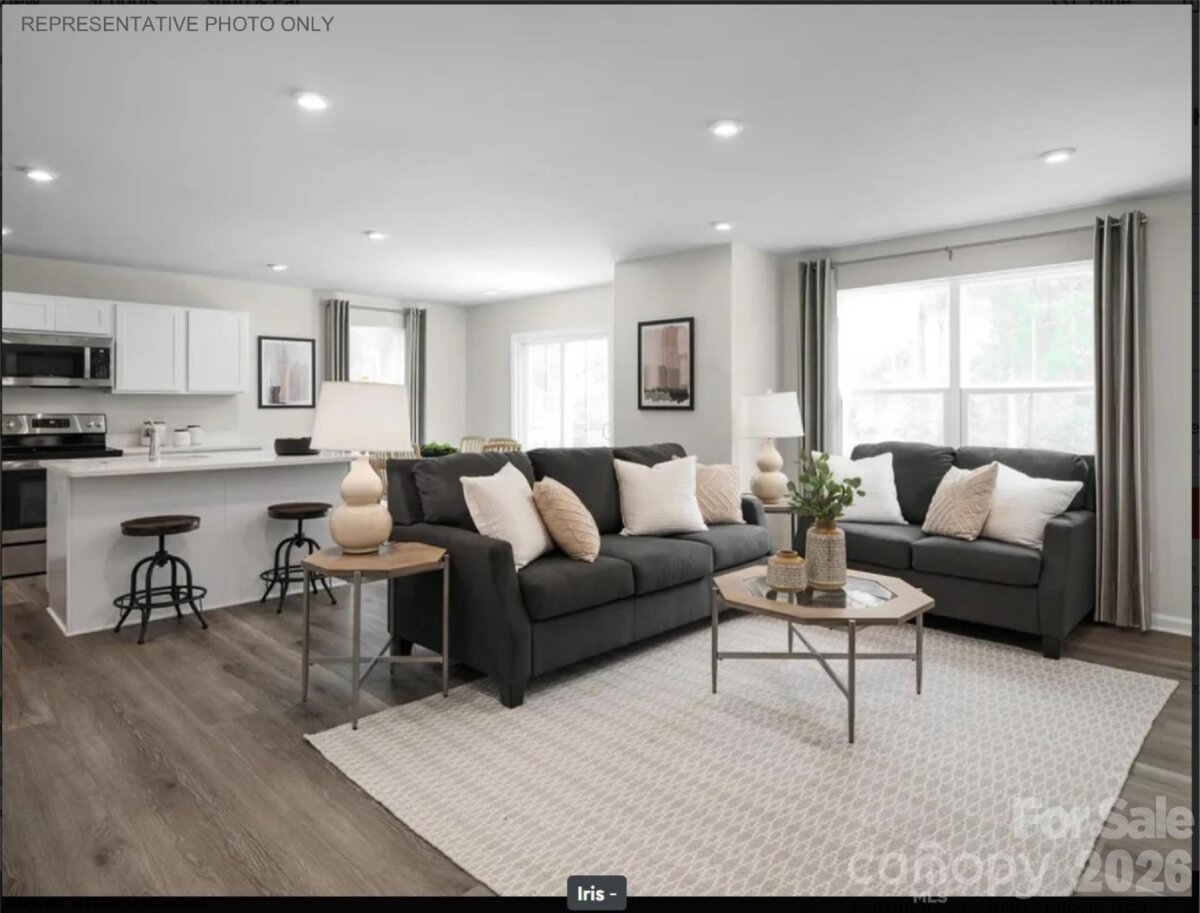 Sunset Creek sits just minutes from I-485, I-77, and Highway 16 — putting Uptown Charlotte, Charlotte Douglas Airport, the U.S. National Whitewater Center, and the Northlake shopping corridor all within easy reach. This is an address that keeps you connected to everything the city offers while coming home to a neighborhood that feels like a retreat. Sunset Creek is a new construction community with a genuine sense of place — a dog park, playground, and sidewalk-lined streets create an environment that's easy to settle into, and with lawn care included in the HOA, low-maintenance living is built right in. The Iris is a four-bedroom, 2.5-bath two-story home offering 1,660 square feet of smart, efficient layout. The open main level connects the kitchen island, dining area, and living room in a layout that works equally well for everyday routines and entertaining, while all four bedrooms are tucked privately upstairs — including the owner's suite with walk-in closet — along with a dedicated laundry room for added convenience. A 2-car garage and private wooded lot round out a home that delivers genuine space at an attainable Charlotte price point. Buyers may take advantage of closing cost assistance when using the preferred lender. Own a brand-new home just 15 minutes from Uptown in one of Charlotte's most commuter-friendly locations — schedule your visit today to see the Lily at Sunset Creek.