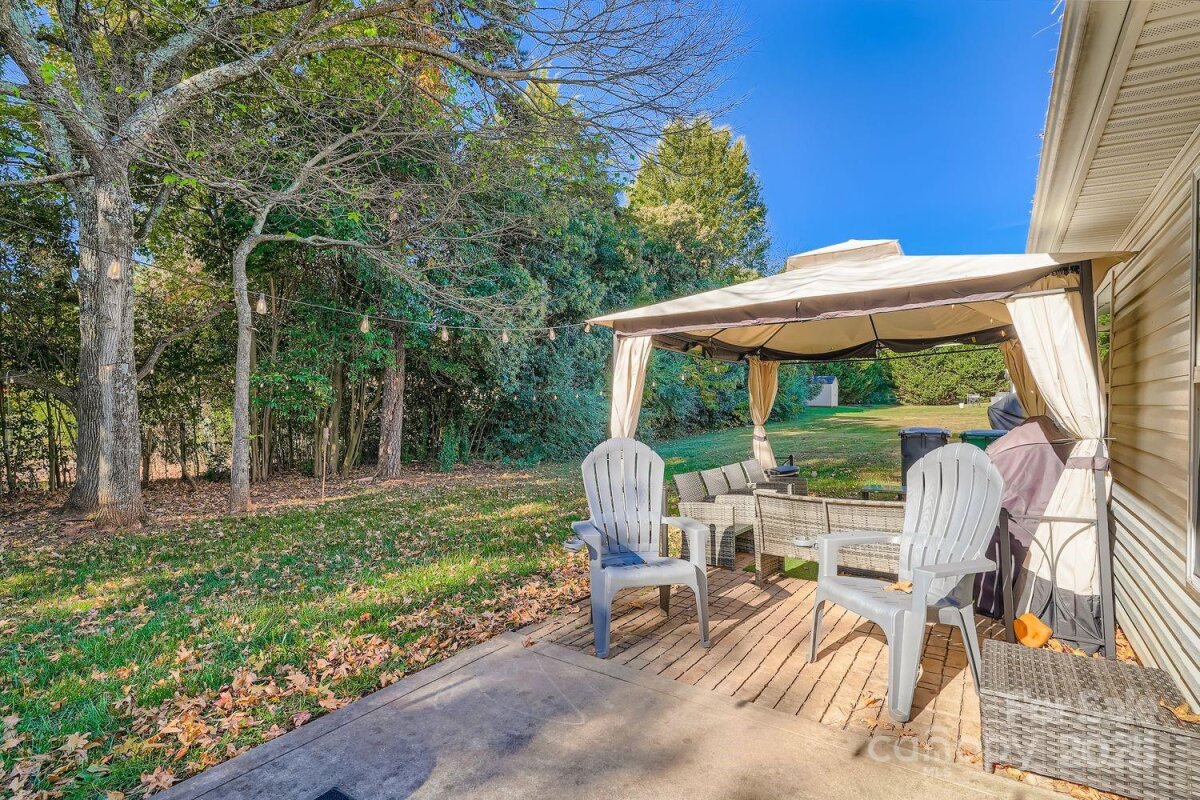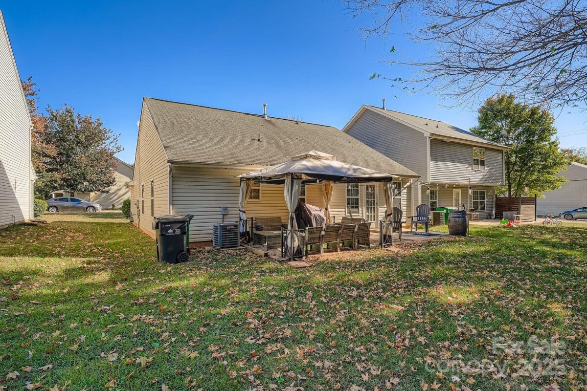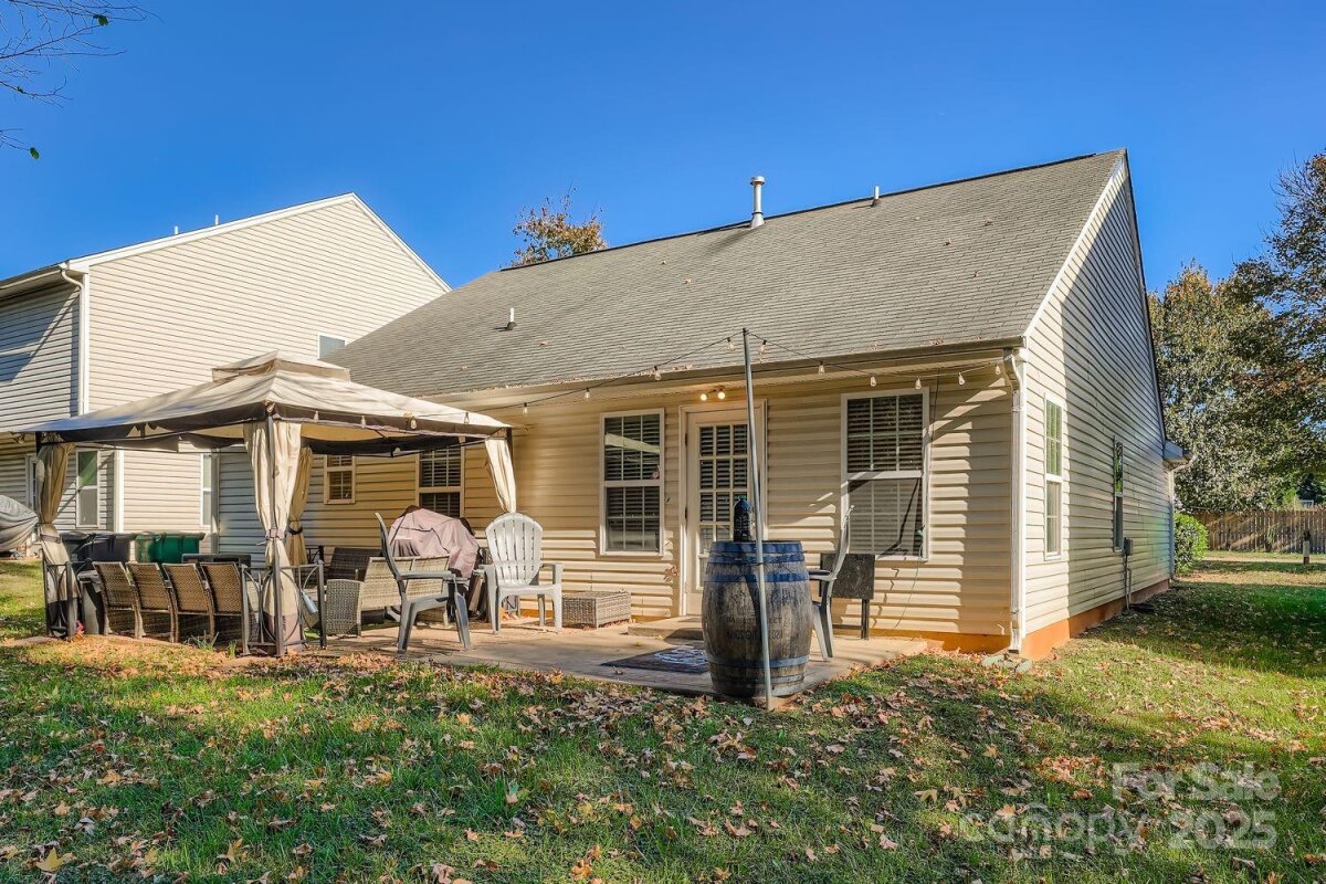Charming 3-Bedroom Ranch with Open Floor Plan & Outdoor Oasis Welcome to this beautifully maintained 3-bedroom, 2-bath ranch-style home featuring an inviting open floor plan and convenient one-level living. All bedrooms are thoughtfully located on the main floor, offering easy access and comfort for all. Step inside to a spacious living room with soaring vaulted ceilings and gleaming wood floors that flow seamlessly into the entryway. The open-concept design connects the living area to a generous kitchen, complete with sleek black appliances, abundant cabinetry, and a cozy breakfast nook—perfect for casual dining or morning coffee. The primary suite is a true retreat, boasting vaulted ceilings, a ceiling fan, a large walk-in closet, and an en-suite bath with a dual vanity and a shower/tub combo. The two additional bedrooms are equally spacious and each features its own walk-in closet, providing ample storage. A large laundry room with built-in shelving adds everyday convenience. Step outside to enjoy the extended patio and charming gazebo—ideal for entertaining, grilling, or simply relaxing. The expansive, flat backyard is bordered by mature trees, offering both privacy and shade during warm summer days. This home truly checks all the boxes—comfort, style, and functionality. Don’t miss your chance to make it yours!