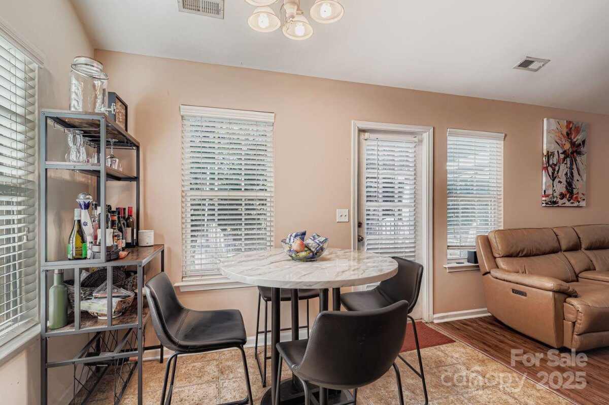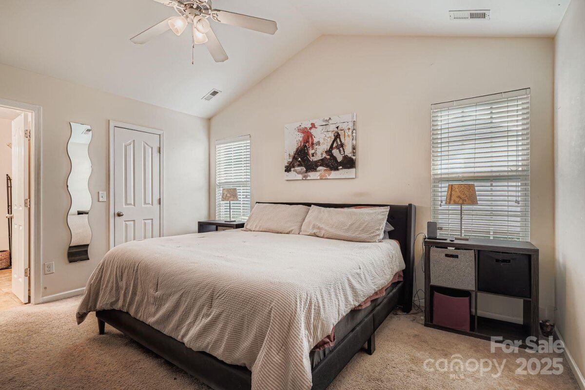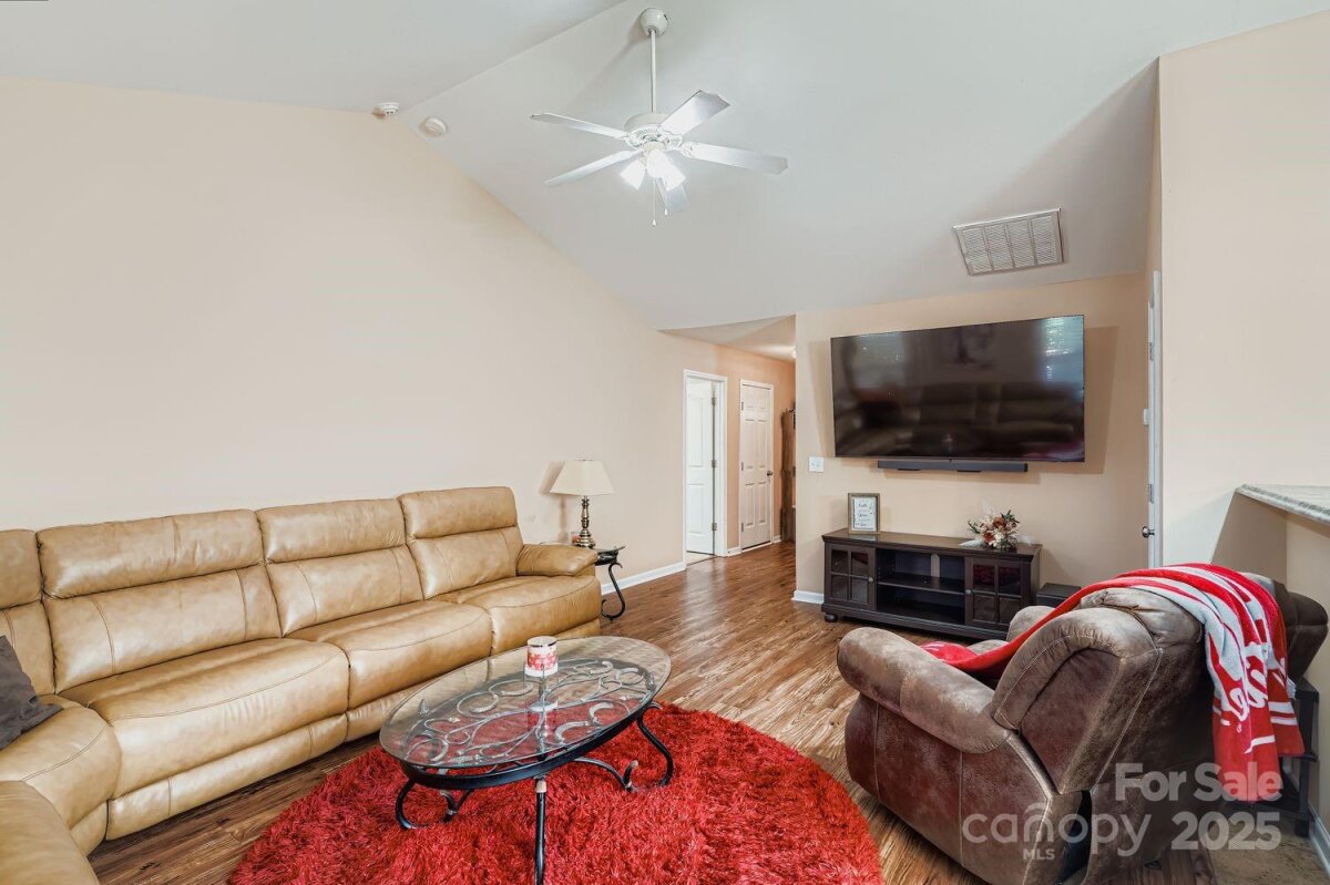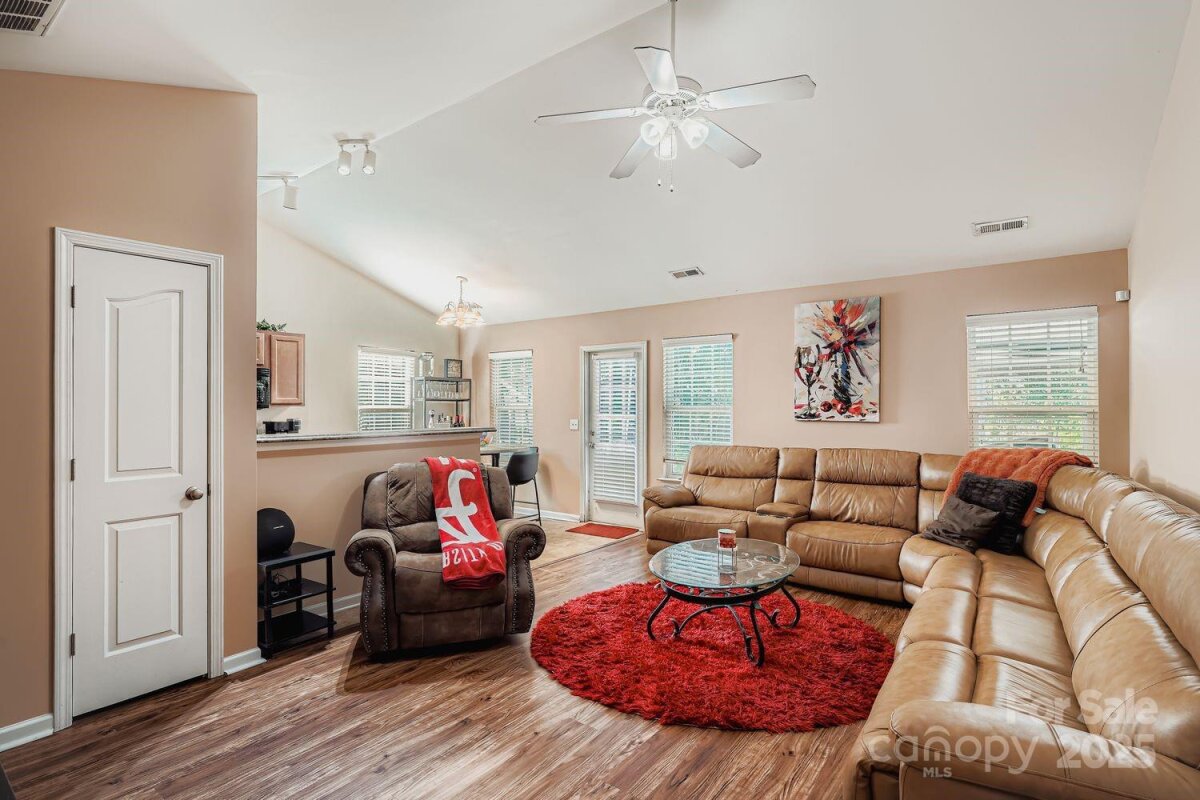 Charming 3-Bedroom Ranch with Open Floor Plan & Outdoor Oasis Welcome to this beautifully maintained 3-bedroom, 2-bath ranch-style home featuring an inviting open floor plan and convenient one-level living. All bedrooms are thoughtfully located on the main floor, offering easy access and comfort for all. Step inside to a spacious living room with soaring vaulted ceilings and gleaming wood floors that flow seamlessly into the entryway. The open-concept design connects the living area to a generous kitchen, complete with sleek black appliances, abundant cabinetry, and a cozy breakfast nook—perfect for casual dining or morning coffee. The primary suite is a true retreat, boasting vaulted ceilings, a ceiling fan, a large walk-in closet, and an en-suite bath with a dual vanity and a shower/tub combo. The two additional bedrooms are equally spacious and each features its own walk-in closet, providing ample storage. A large laundry room with built-in shelving adds everyday convenience. Step outside to enjoy the extended patio and charming gazebo—ideal for entertaining, grilling, or simply relaxing. The expansive, flat backyard is bordered by mature trees, offering both privacy and shade during warm summer days. This home truly checks all the boxes—comfort, style, and functionality. Don’t miss your chance to make it yours!