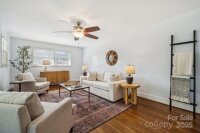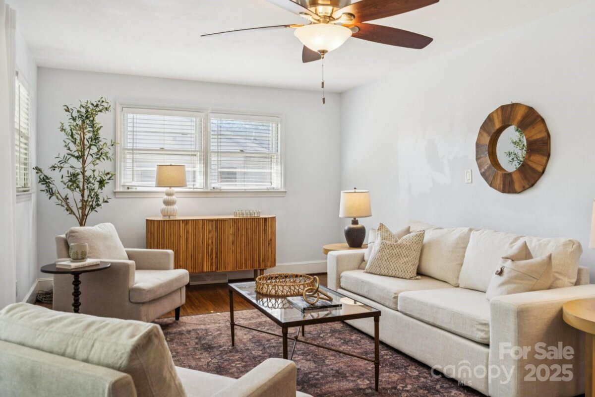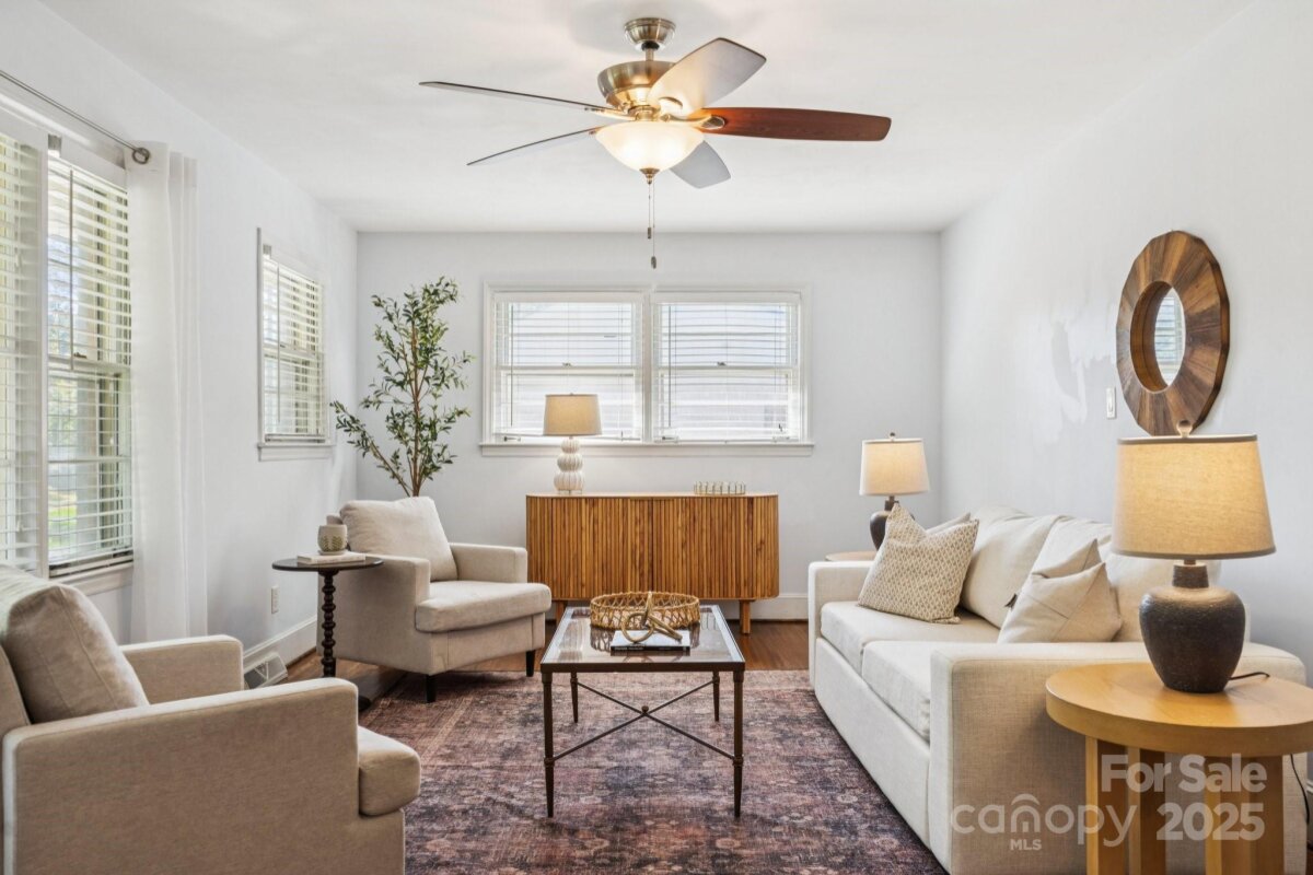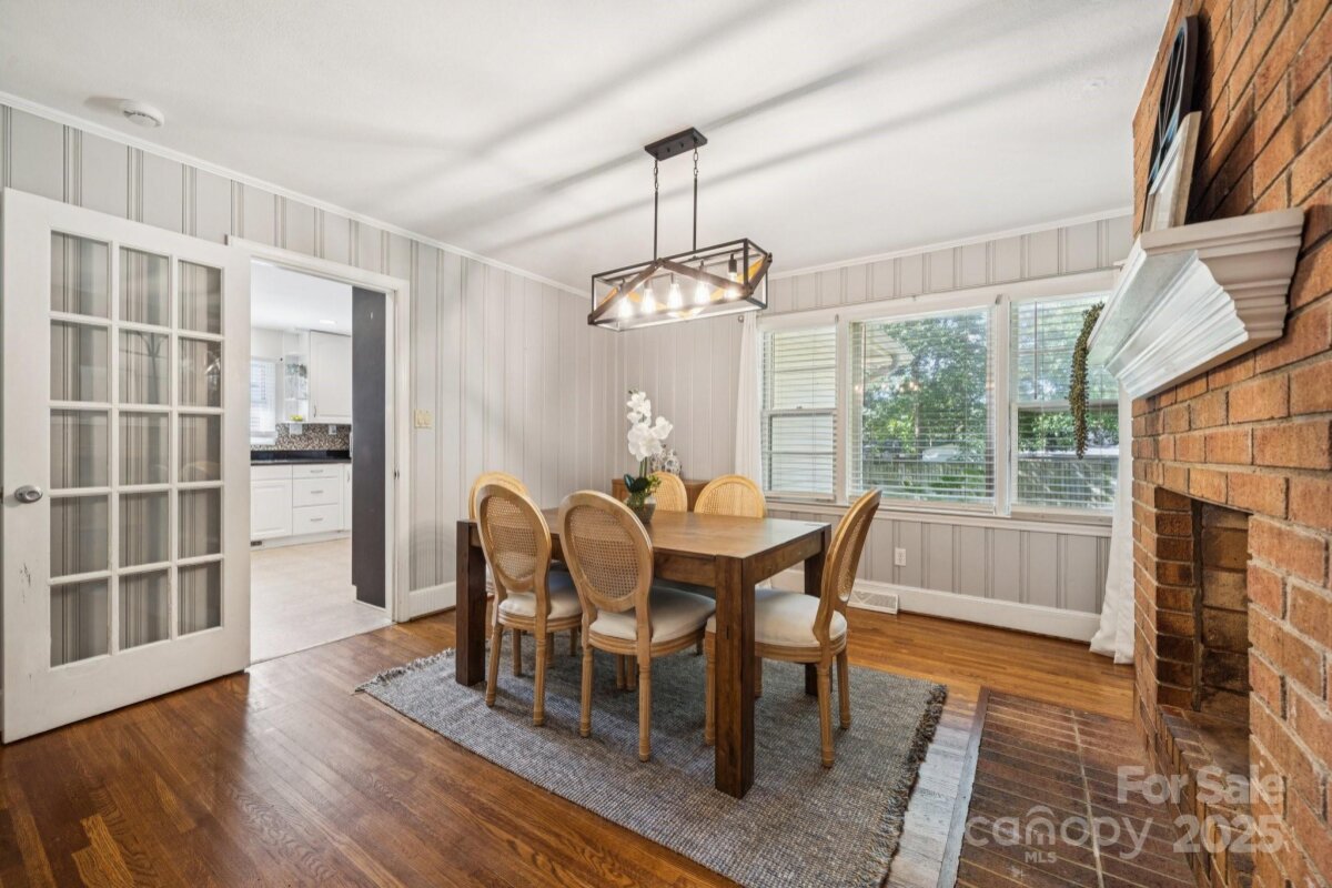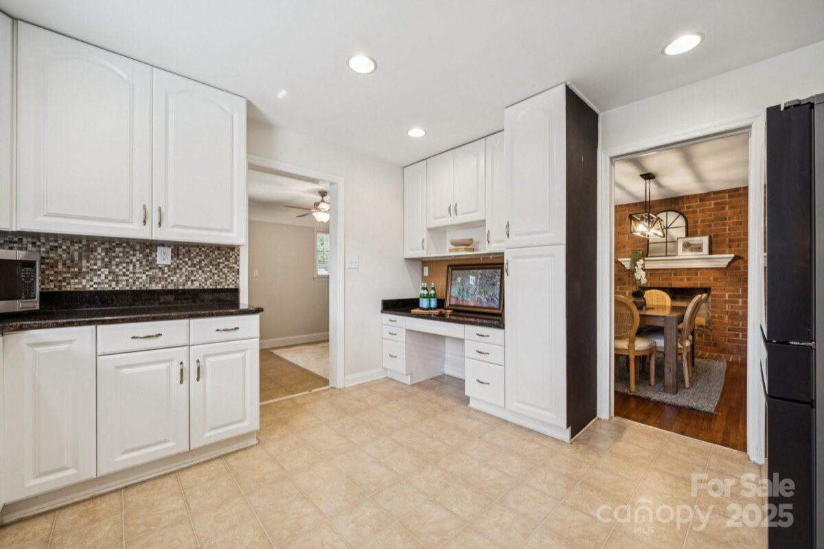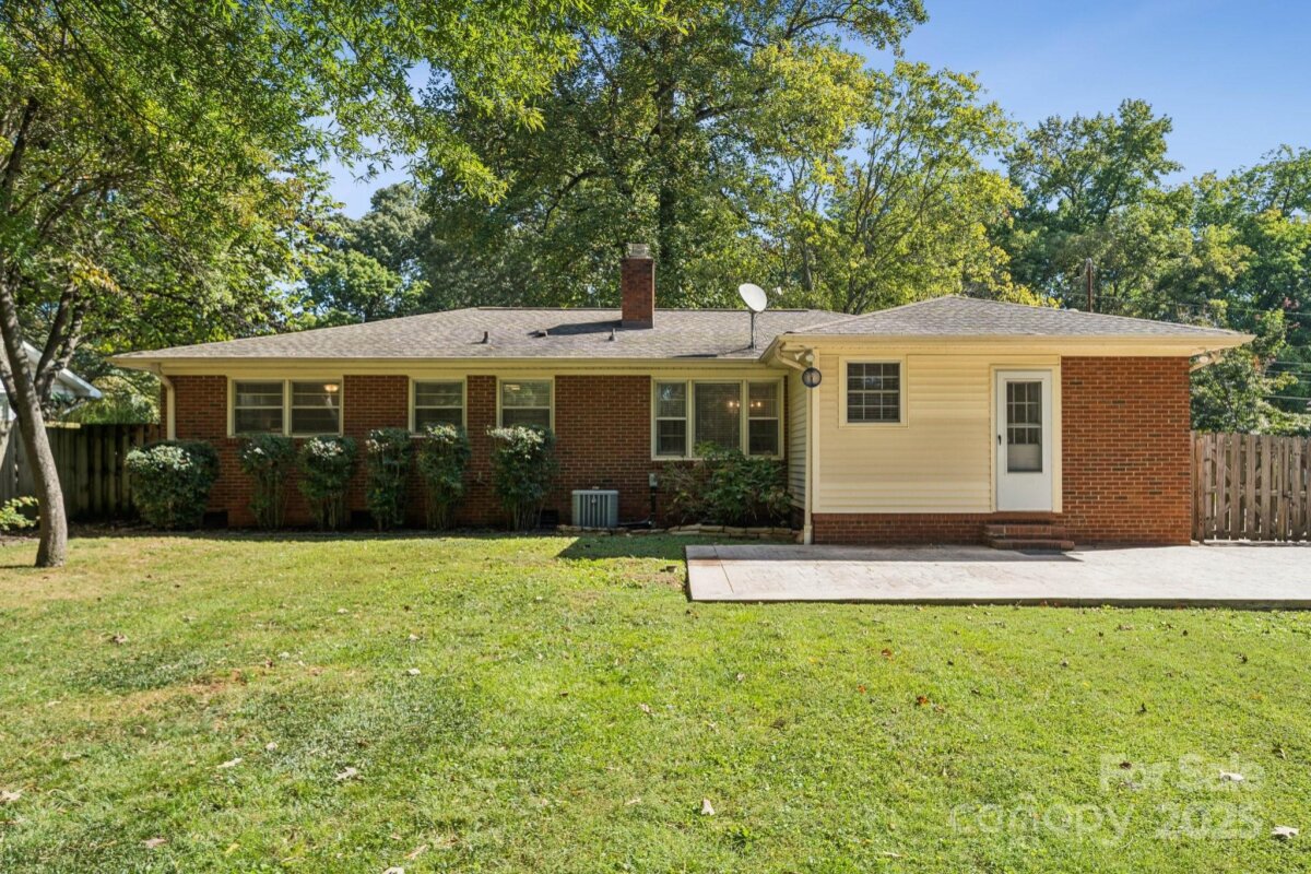 Welcome to this quintessential Montclaire ranch home, perfectly situated on a beautiful tree-lined street in one of Charlotte’s most desirable neighborhoods. Step inside to find a 3-bedroom, 2-bath layout designed for both comfort and function. The spacious living room is filled with natural light and can easily be closed off with glass French doors for added privacy. A separate dining room features a cozy fireplace with built-ins and flows seamlessly into the updated kitchen, complete with ample cabinetry, granite countertops, and stainless steel appliances. Just off the kitchen, a versatile flex space serves beautifully as a sunroom, home office, or breakfast nook, with the laundry closet conveniently nearby. Down the main hall, you’ll find two large guest bedrooms that share a hall bath with a dual vanity and an extra storage closet. The primary suite offers two closets and a well-appointed ensuite, creating a true retreat. Original hardwood floors add timeless character throughout, while thoughtful updates provide modern convenience. Step outside to enjoy a flat, fenced backyard designed for entertaining, highlighted by a spacious stamped concrete patio. Notable improvements include a new concrete driveway and walkway (2021), storage shed (2023), furnace (2024), Bosch dishwasher (2024), and refrigerator (2023). Whether you’re relaxing indoors or hosting outdoors, this home offers the style, space, and location you’ve been looking for. And with its prime location near Park Road, SouthEnd, Dilworth, and SouthPark, you’ll enjoy the perfect blend of convenience and community.