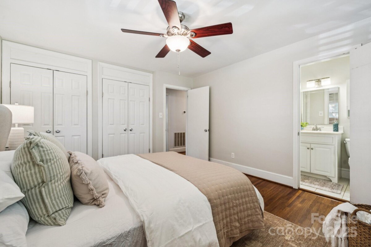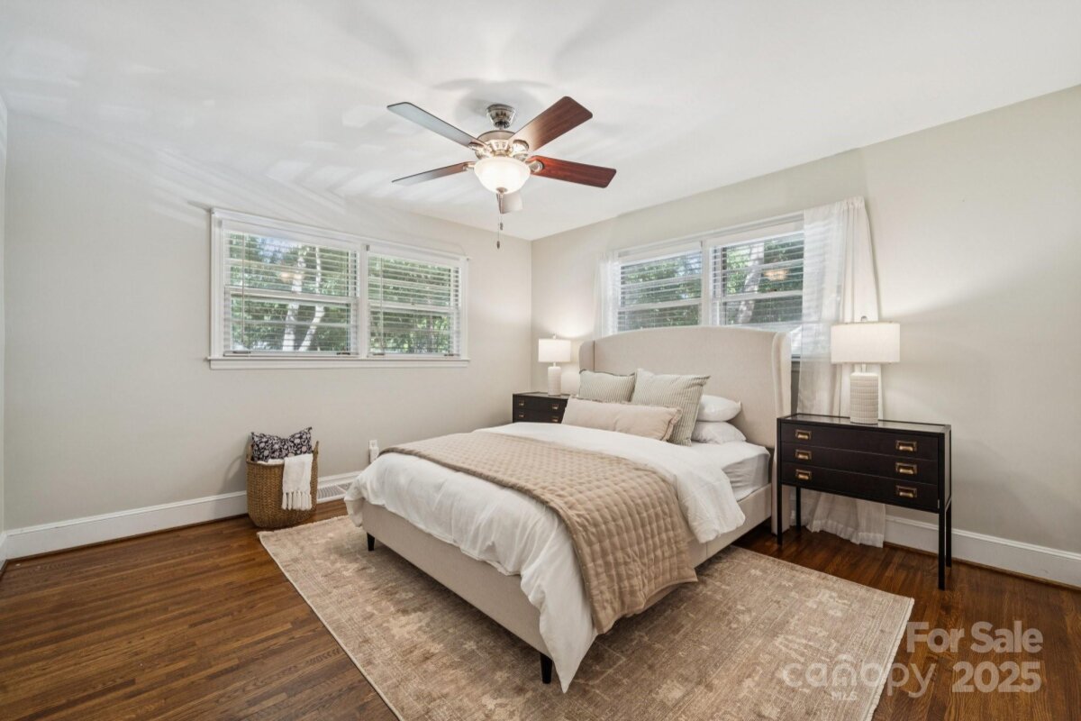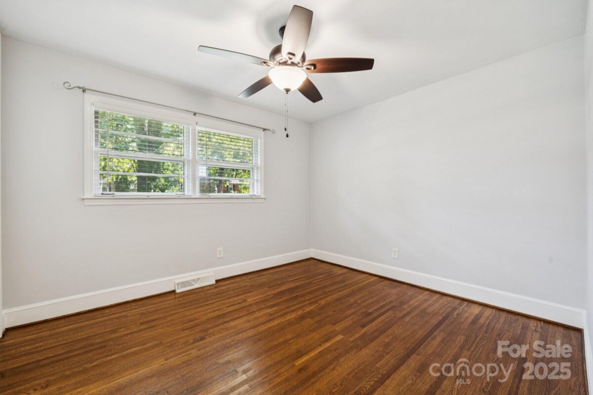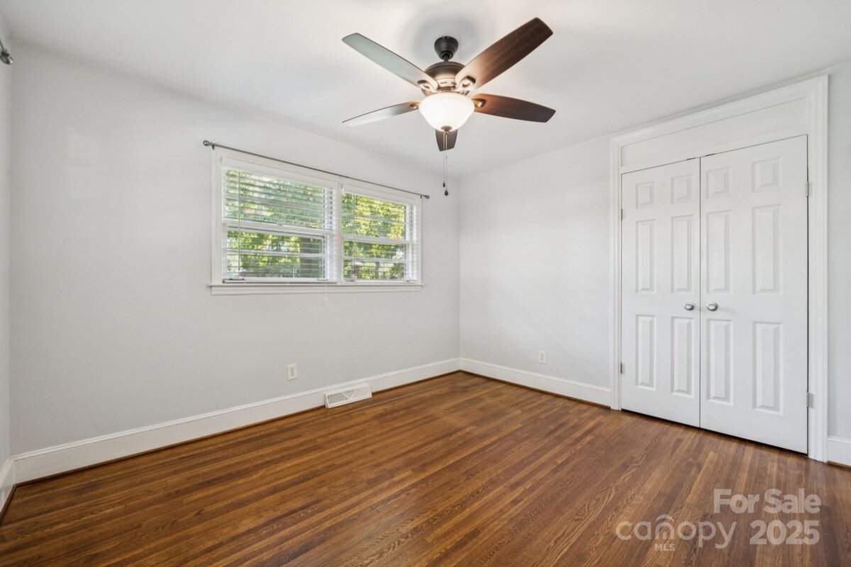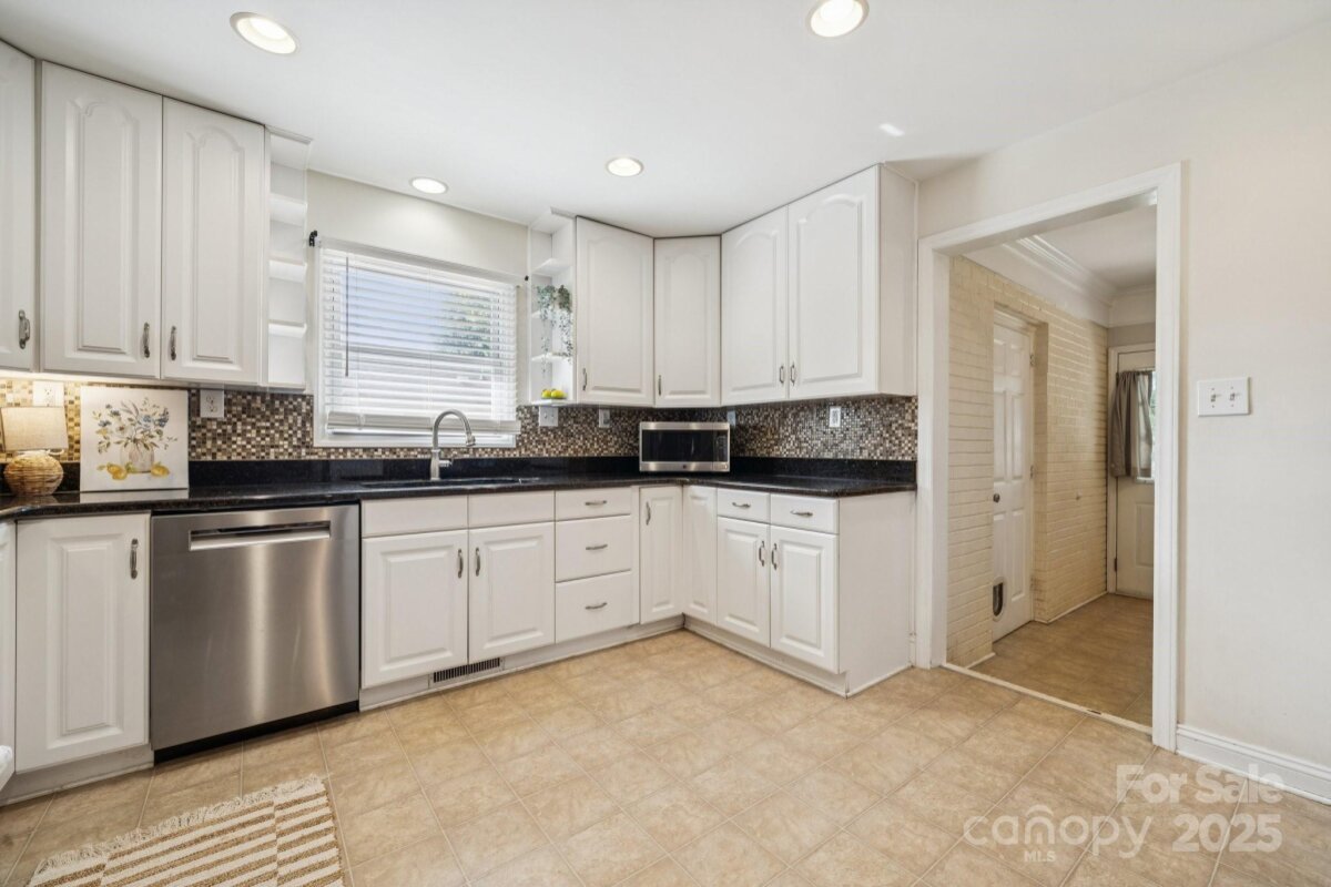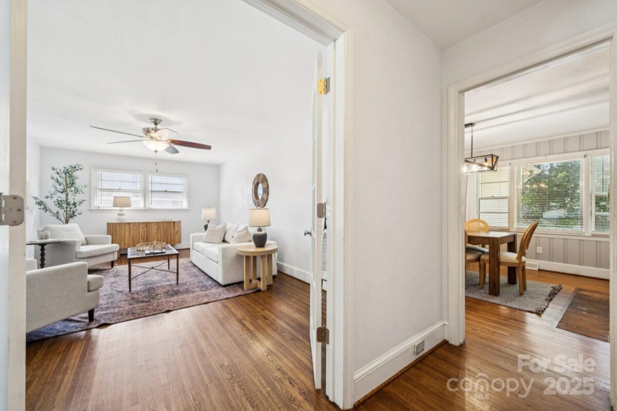 Welcome to this quintessential Montclaire ranch home, perfectly situated on a beautiful tree-lined street in one of Charlotte’s most desirable neighborhoods. Step inside to find a 3-bedroom, 2-bath layout designed for both comfort and function. The spacious living room is filled with natural light and can easily be closed off with glass French doors for added privacy. A separate dining room features a cozy fireplace with built-ins and flows seamlessly into the updated kitchen, complete with ample cabinetry, granite countertops, and stainless steel appliances. Just off the kitchen, a versatile flex space serves beautifully as a sunroom, home office, or breakfast nook, with the laundry closet conveniently nearby. Down the main hall, you’ll find two large guest bedrooms that share a hall bath with a dual vanity and an extra storage closet. The primary suite offers two closets and a well-appointed ensuite, creating a true retreat. Original hardwood floors add timeless character throughout, while thoughtful updates provide modern convenience. Step outside to enjoy a flat, fenced backyard designed for entertaining, highlighted by a spacious stamped concrete patio. Notable improvements include a new concrete driveway and walkway (2021), storage shed (2023), furnace (2024), Bosch dishwasher (2024), and refrigerator (2023). Whether you’re relaxing indoors or hosting outdoors, this home offers the style, space, and location you’ve been looking for. And with its prime location near Park Road, SouthEnd, Dilworth, and SouthPark, you’ll enjoy the perfect blend of convenience and community.