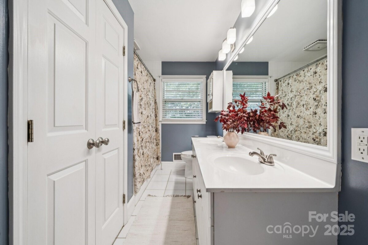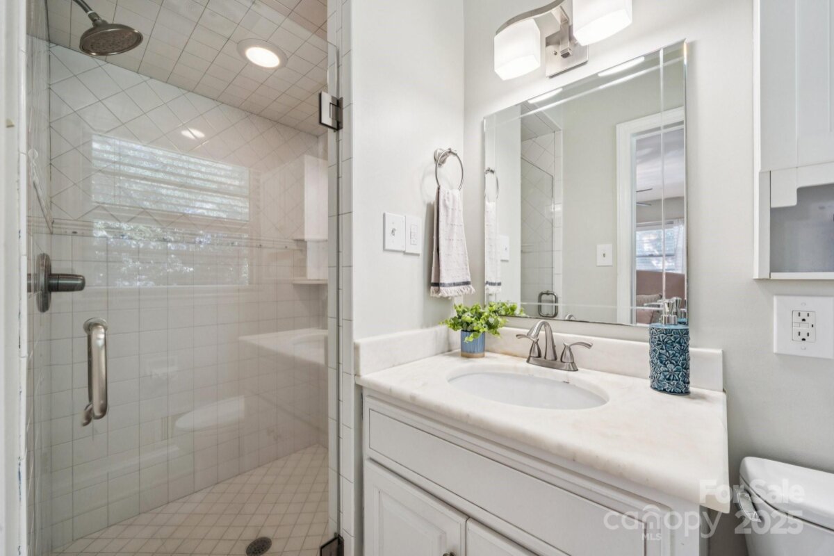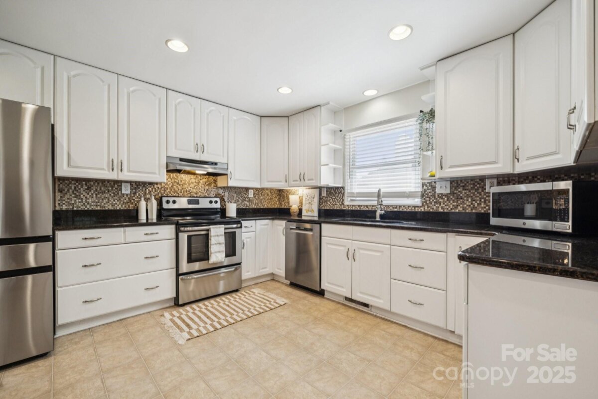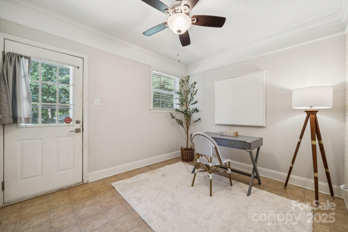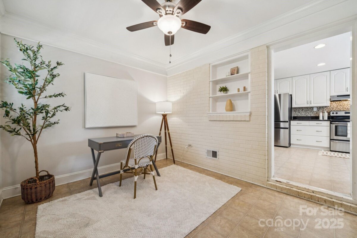 Welcome to this quintessential Montclaire ranch home, perfectly situated on a beautiful tree-lined street in one of Charlotte’s most desirable neighborhoods. Step inside to find a 3-bedroom, 2-bath layout designed for both comfort and function. The spacious living room is filled with natural light and can easily be closed off with glass French doors for added privacy. A separate dining room features a cozy fireplace with built-ins and flows seamlessly into the updated kitchen, complete with ample cabinetry, granite countertops, and stainless steel appliances. Just off the kitchen, a versatile flex space serves beautifully as a sunroom, home office, or breakfast nook, with the laundry closet conveniently nearby. Down the main hall, you’ll find two large guest bedrooms that share a hall bath with a dual vanity and an extra storage closet. The primary suite offers two closets and a well-appointed ensuite, creating a true retreat. Original hardwood floors add timeless character throughout, while thoughtful updates provide modern convenience. Step outside to enjoy a flat, fenced backyard designed for entertaining, highlighted by a spacious stamped concrete patio. Notable improvements include a new concrete driveway and walkway (2021), storage shed (2023), furnace (2024), Bosch dishwasher (2024), and refrigerator (2023). Whether you’re relaxing indoors or hosting outdoors, this home offers the style, space, and location you’ve been looking for. And with its prime location near Park Road, SouthEnd, Dilworth, and SouthPark, you’ll enjoy the perfect blend of convenience and community.