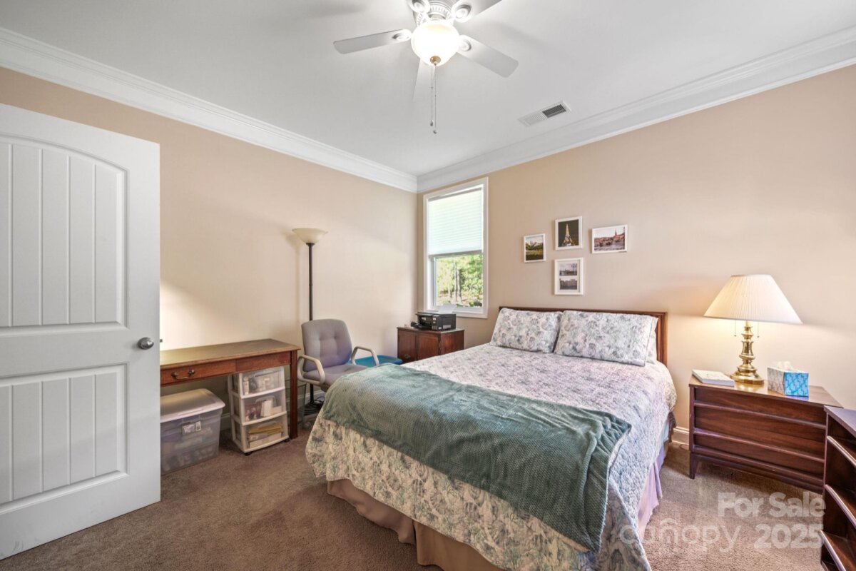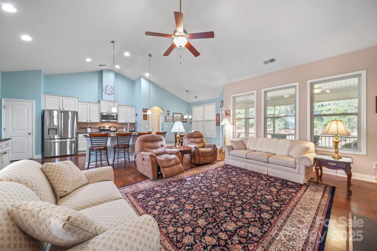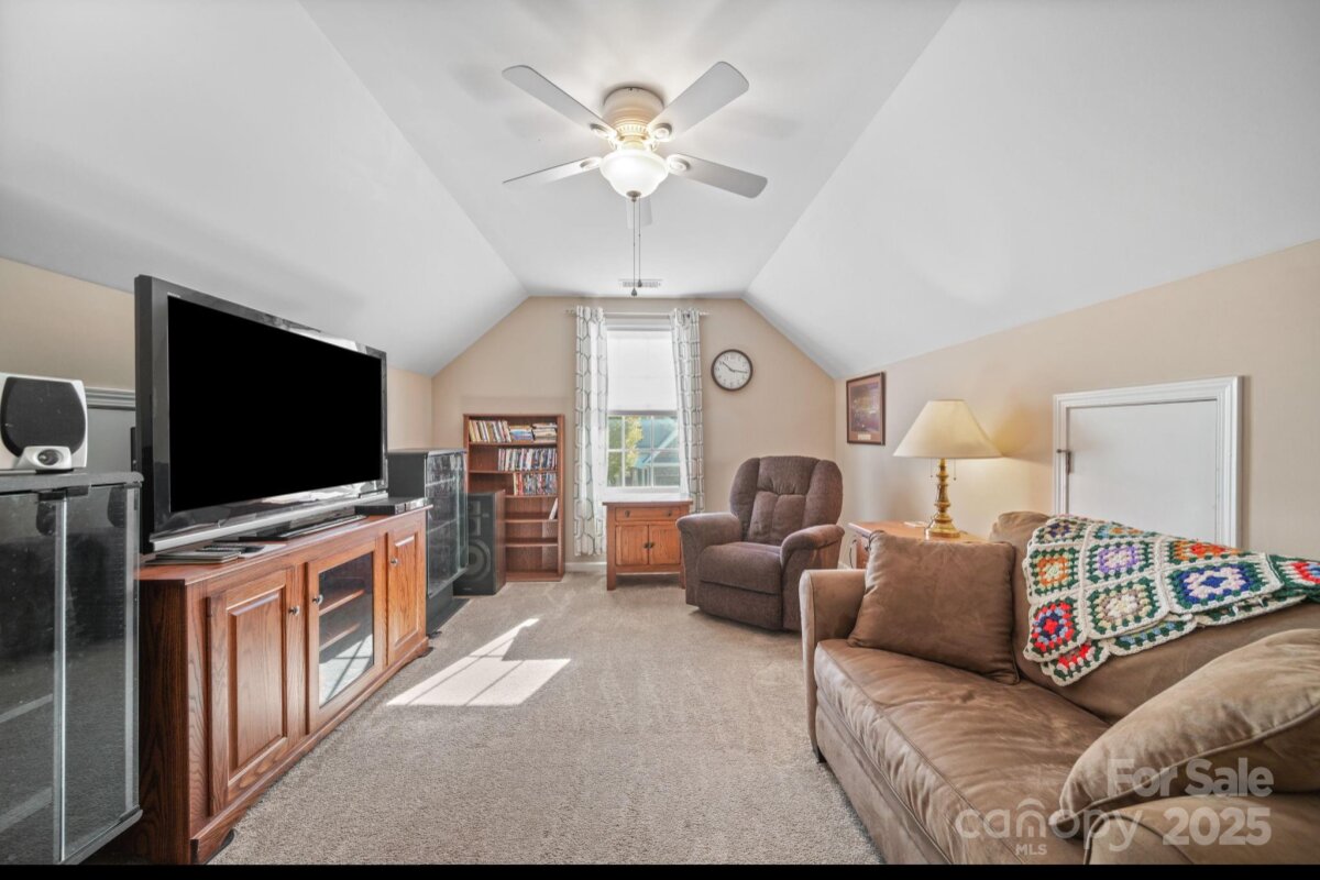 Lifestyle living in The Vineyards on Lake Wylie! Enjoy resort-style amenities including lake access, pickleball courts, walking trails, a dog park, pool, fitness center, picnic areas, playground, and even boat and RV storage. This home feels as good as new, with a new roof and gutters just installed this year, 2025. Special features include an open floor plan with tall ceilings and built-in shelving/cabinetry, fireplace w/gas logs in the great room. The kitchen offers a center island with breakfast bar, generous cabinetry, and a bright eating area. Versatile layout includes a split 3 bedroom plan plus an upstairs bonus room that could serve as a 4th bedroom, office, or hobby space. The popular floor plan also includes a separate living and dining room, and a spacious primary en-suite. Relax on the screened porch overlooking your private backyard and enjoy views of the Charlotte skyline out front. A perfect blend of comfort, convenience, and community living!