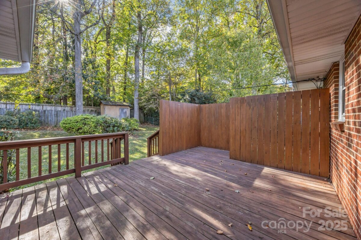 This well-maintained mid-century brick ranch located in highly-desirable Madison Park is waiting for YOU! Charming home offers a fantastic floor plan that flows effortlessly from room to room, perfect for everyday living and entertaining. The classic layout with welcoming foyer has a large living area with great natural light, formal dining/flex room, and a well-designed eat-in kitchen. Sunroom off kitchen might become your favorite room as the wall of windows overlooks the fenced yard. Low-step Utility Room entrance allows easy access with groceries, stroller, or wheelchair and houses the washer, dryer, and water heater. It offers extra storage in addition to the well-sized BR closets, expansive hall closet, and attic with new stairs. Updates include: HVAC and thermostat (2023); Roof (2015) inspected with new vent pipe boots installed in June 2025; most of interior painted in last 2 years; granite c'tops, hardwood flooring, and hardware in eat-in kitchen updated within the last 5 years; hall bath fully gutted/modernized; BRs 2 & 3 windows replaced; deck/shutters/railing painted 2024; new motion sensor security light at side door; new smoke detectors in hallways. Original solid hardwoods in foyer, hallways, BRs, and Dining/Flex Room. Kitchen is hardwoods, just not original. Seller has always had Living Room carpeted so is unsure if wood floors are underneath. Minutes to Montford/Park Rd establishments and SouthPark Mall. Sidewalks and nearby Madison Central Park and Pinewood Elementary offer fitness opportunities as well as a playground and disc golf. Easy commute to uptown Charlotte by bus, light rail or car, and I-77, I-85, and Charlotte International Airport. Whether you’re looking for a smart investment or value space and location, this could be the home for you!
