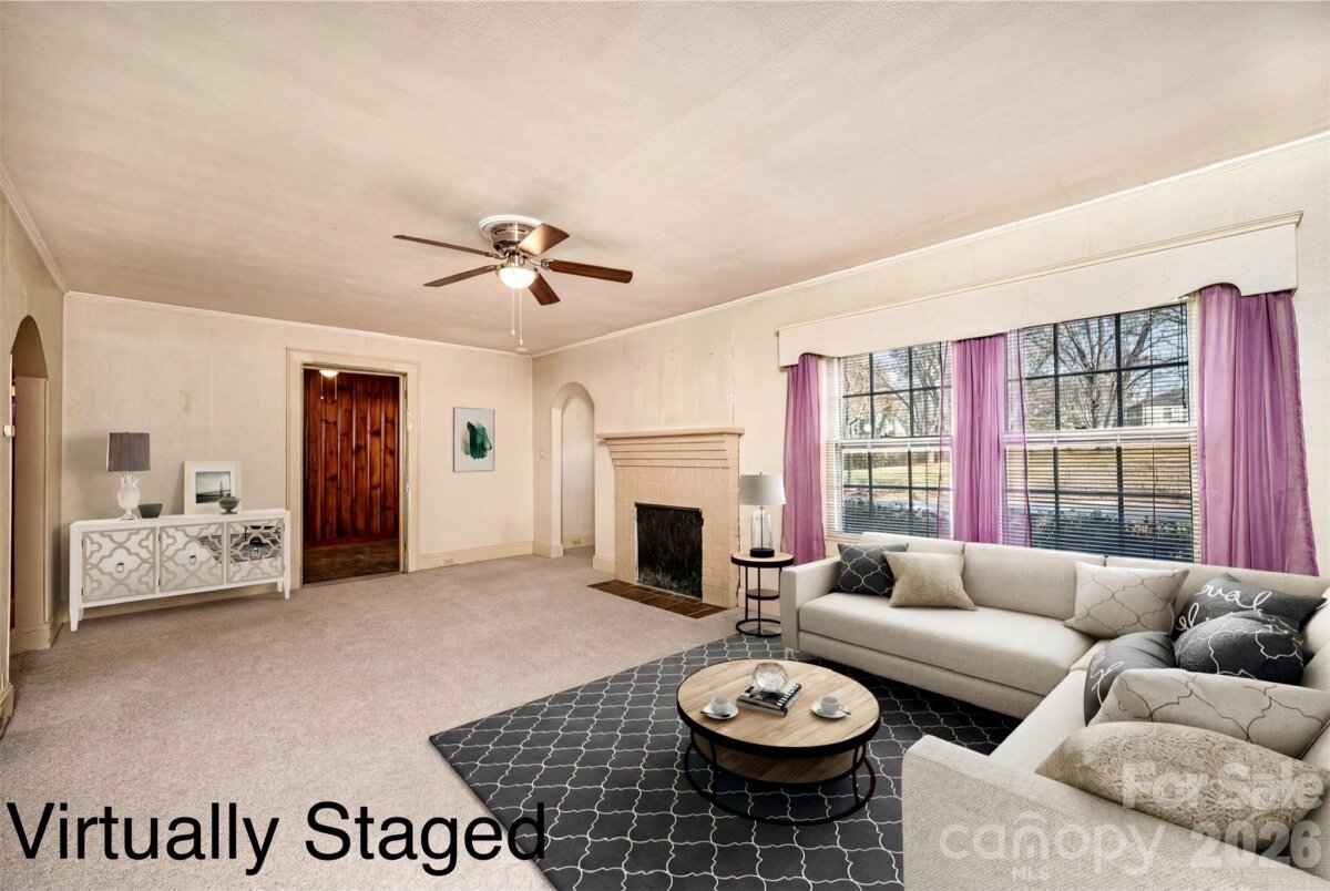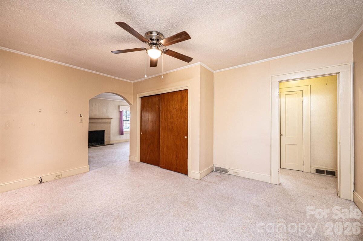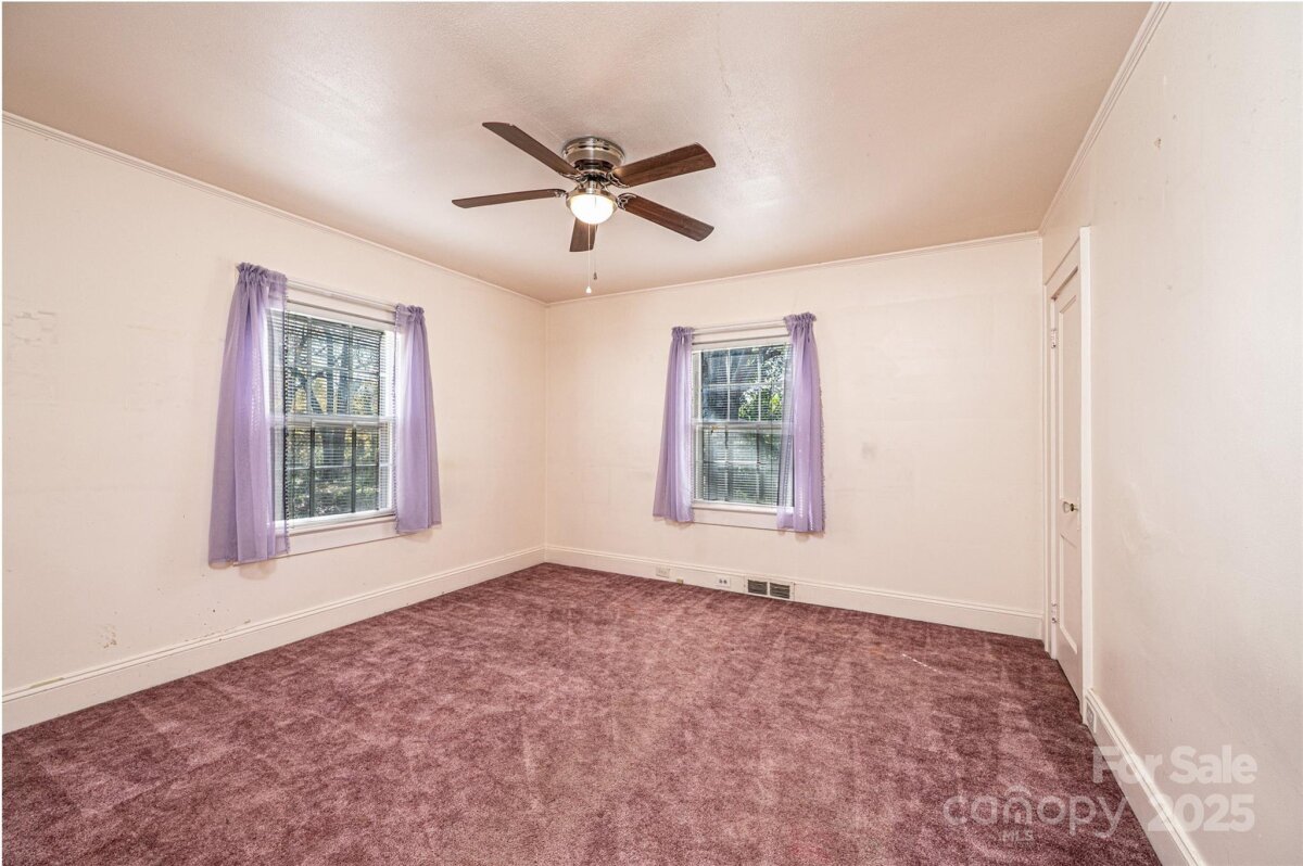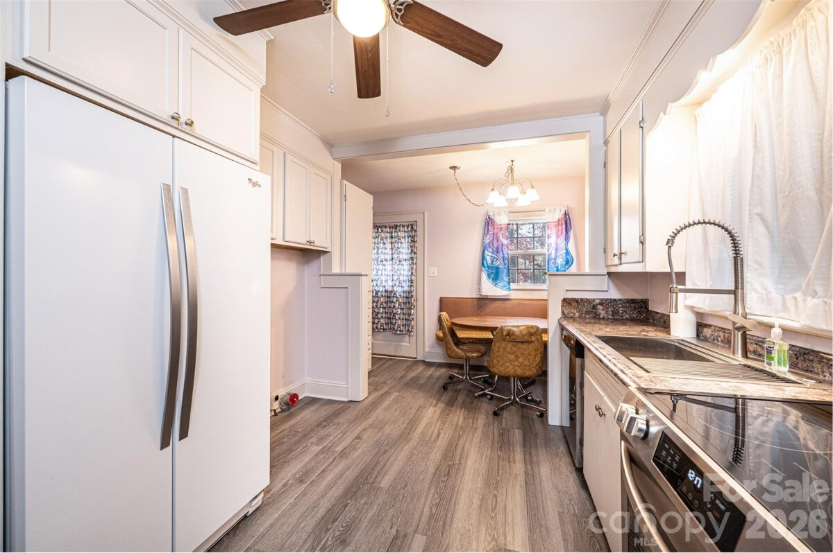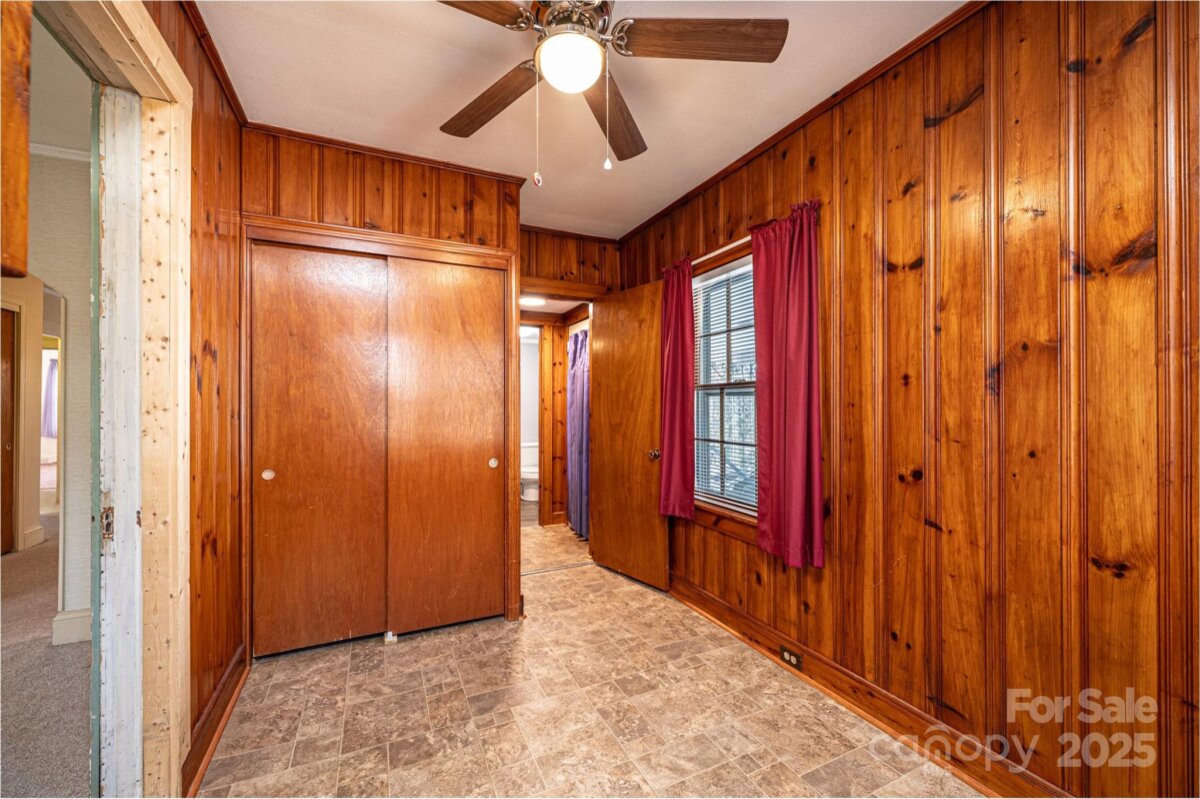 DOLLAR S-T-R-E-T-C-H-E-R! You can't afford NOT to consider this one! Vinyl siding/trim Bungalow PLUS an ADJOINING VACANT LOT! 3BR/1.5BA; huge LR off of foyer has space for everyone; BR1 right off LR has real wood panelling & trim; half BA has stackable washer/dryer (conveys); den/formal DR has pass thru window into kitchen, built-in cabinets/shelves, plus a large closet; kitchen was remodeled in 2024 w/LVP flooring, removed cooktop/wall oven & added laundry hook ups & new elec range, kit also has a DW, ref, & built-in pantry cabinets; breakfast nook in kitchen has cute built-in dining booth & door to side porch; 2 other large BRs plus a full BA & a cedar lined closet round out the main level! Partial unfinished basement has concrete flrs. 200 amp circuit breaker service. 2024 elec water heater. 2016 gas pack/CA. 3-4 years ago power lines were moved underground. Additional lot to the left has a huge concrete pad for future use, as well as a lg concrete bbq pit/brick hearth that would make a great fire pit area! Sold As Is.