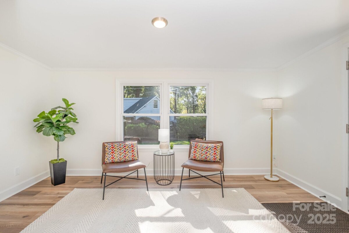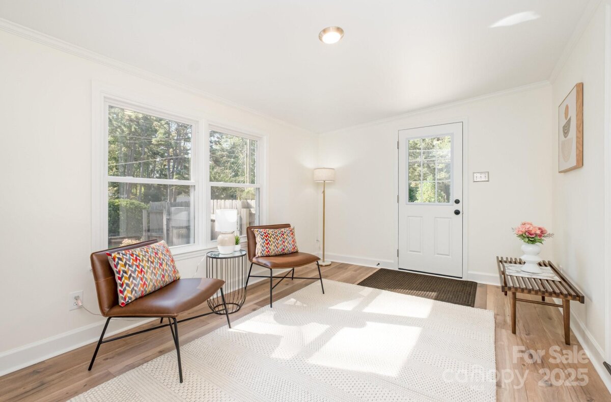 A must see! Beautifully updated and move-in ready, this charming ranch sits on a fabulous flat .33-acre corner lot with standout curb appeal just one block from The Plaza in sought-after Shannon Park—a neighborhood experiencing exciting growth and investment—with No HOA. Whether you're looking for your first home, next home, or adding to your investment portfolio (even a short-term rental!), this property has something for everyone. Beautiful hardwood floors for the living room and bedrooms and natural light cascades throughout. You'll love the easy, spacious side-by-side driveway for larger vehicles and the fully fenced backyard with patio—perfect for BBQs, entertaining, and/or pull-through the double gate for extra parking. The flex/bonus room is ideal for an office, hobbies, yoga, or a plant haven. Recent updates: full interior and exterior paint, stainless kitchen appliances, front and driveway doors, attic stairs, light fixtures, majority of the exterior siding and trims, and roof and waterproof plank flooring for the flex/bonus room and laundry room (all new 2025); hot water heater (2024); washer and dryer (2023). HVAC serviced and yard aerated and seeded for fall! A rare gem at this price in a fantastic location! Prime access to NoDa, Plaza Midwood, Uptown, UNCC, interstates, schools, parks, shopping, and dining.