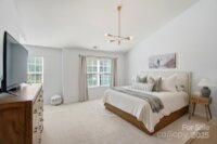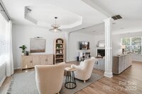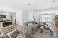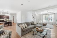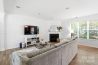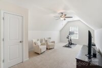 Welcome to this adorable and meticulously maintained 3-bedroom, 2.5-bath home tucked away on a quiet cul-de-sac street. Designed for modern living, the open floor plan offers generous living space and stylish updates throughout. The great room features a cozy gas fireplace and flows seamlessly into the kitchen and dining areas—perfect for both everyday living and entertaining. The kitchen features beautiful cabinetry, granite countertops, stainless steel appliances, under-cabinet lighting, and more. Brand new flooring spans the entire first floor, adding a modern, cohesive touch. Upstairs, the oversized primary suite impresses with a cathedral ceiling, sitting area, large walk-in closet, and a remodeled bath featuring new flooring and a double sink vanity. Two additional bedrooms, a convenient upstairs laundry, and a spacious flex room complete the second floor. Additional highlights include a NEW ROOF in Dec of 2022, surround sound, recessed lighting, stone accents on the front of the home, and a private, tree-lined backyard with a relaxing patio. Conveniently located near premier Steele Creek shopping, dining, and entertainment options—including RiverGate, Charlotte Premium Outlets, and a variety of local restaurants. This home is truly move-in ready and packed with charm-don't miss the opportunity to make it yours!