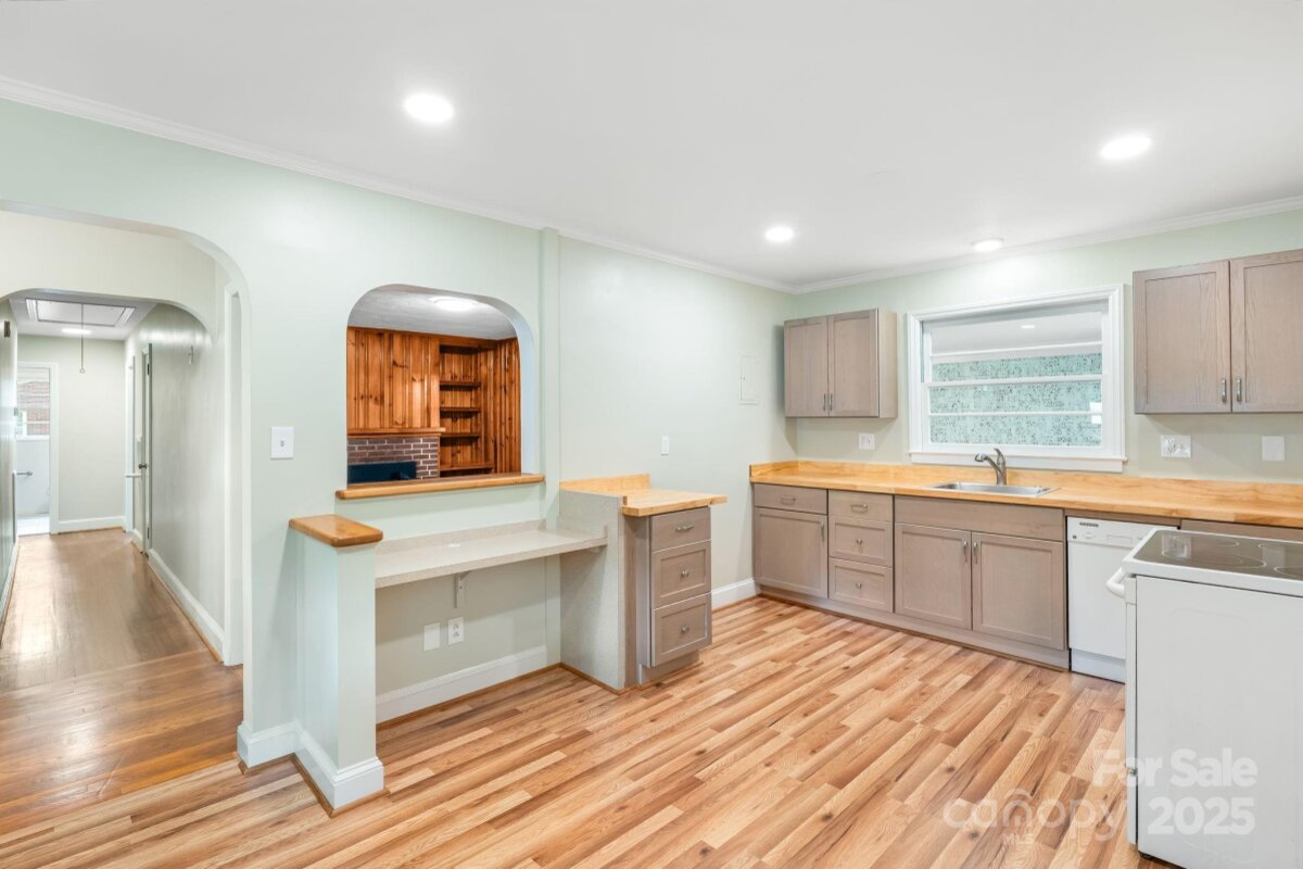 Located in the desirable Allen Hills neighborhood, this charming one-story home sits on a rare .49-acre lot with No HOA! This home features 2 bedrooms and 1 bath, with a freshly painted interior and beautiful hardwood floors throughout the living areas and bedrooms. The brand new kitchen includes new cabinets, butcher block countertops, and stunning laminate wood flooring. The updated bathroom features ceramic tile and a new vanity. A versatile flex space is perfect for a home office, playroom, or bonus room to suit your needs. A large workshop provides extra space for storage or projects. Situated in a serene neighborhood, this home provides a peaceful retreat while being conveniently close to Charlotte's amenities. With plenty of space inside and out, this home is a must-see. Schedule your showing today!