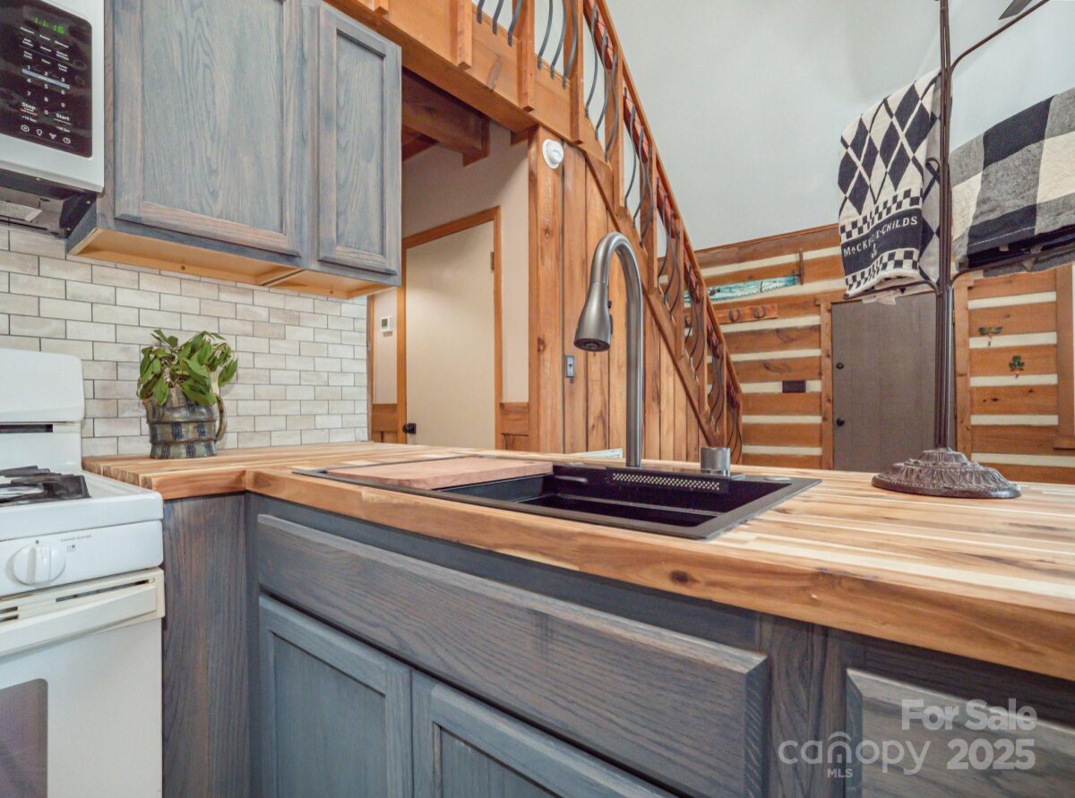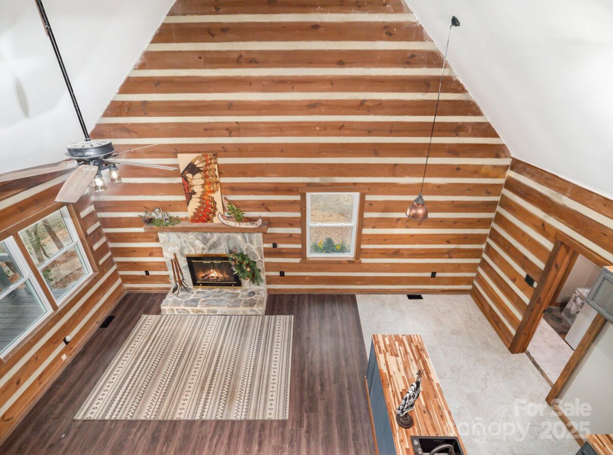PERFECT AIRBNB or your dream cabin! 5 miles to Lake Lure & Chimney Rock beyond and 12 miles to downtown Rutherfordton. Well-maintained log home with MOUNTAIN VIEWS & secluded off-the-road location. Freshly painted outside with updated vinyl windows. Open living room with wood-burning fireplace and vaulted ceilings. Remodeled kitchen with new cabinets, butcher block counters, and an amazing FARM SINK! New roof in 2024; the HVAC is 5 years old. 2 bedrooms & a full bath on the main level and a 3rd bedroom & a 1/2 bath upstairs overlooking the living room below. Enjoy evenings on the covered front porch taking in the mountain views. MUST SEE BEFORE ITS GONE.